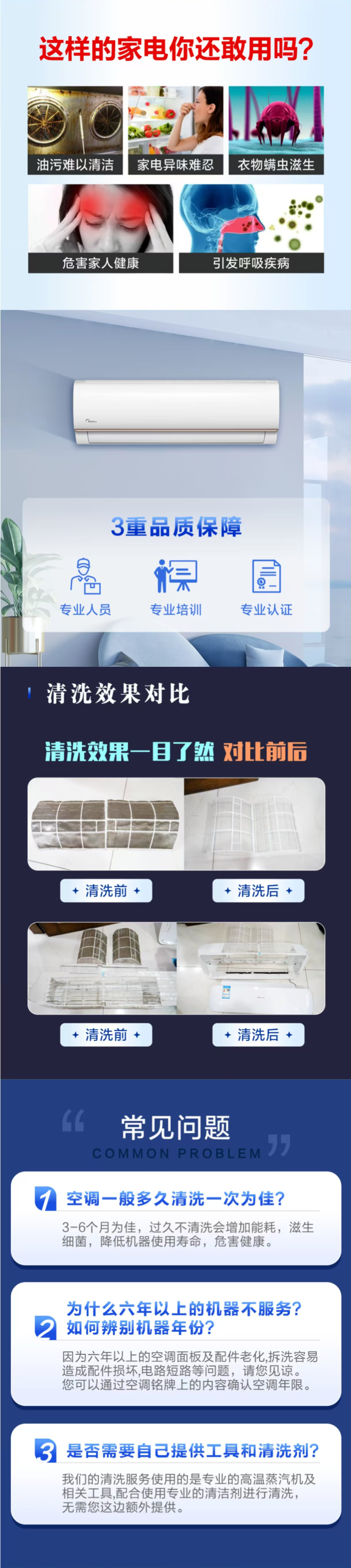 【家庭专用】挂式空调内机单台深度清洗 风华电子清洗(限鄂城区)上门服务