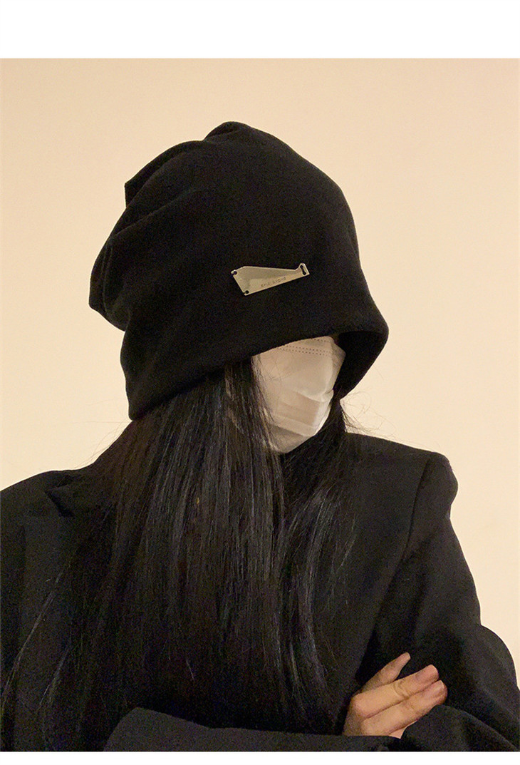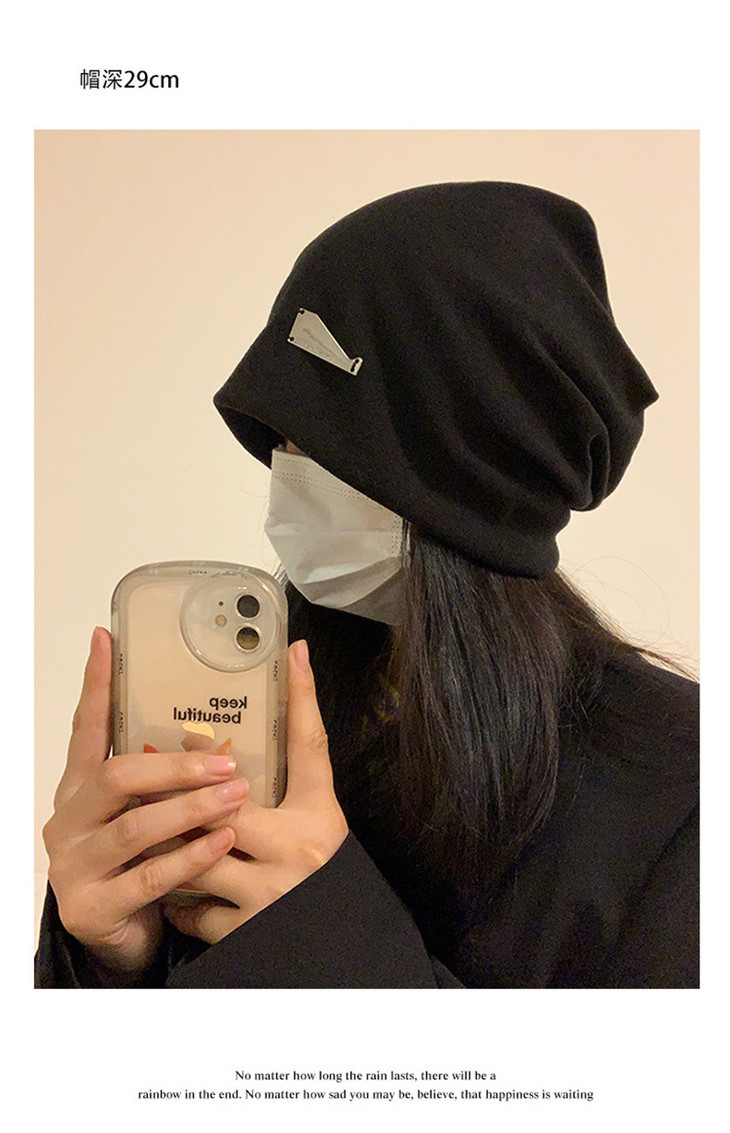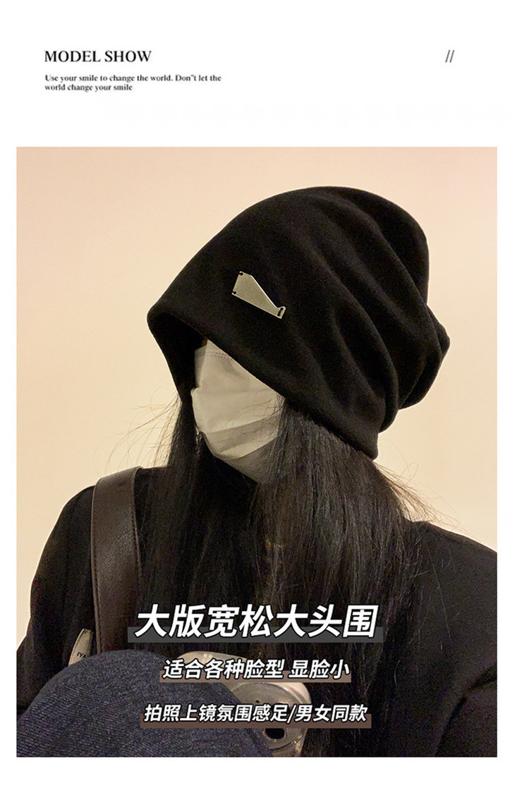 【新款韩版慵懒风保暖护耳冷帽】网红同款秋潮流金属标大头围男女堆堆帽子