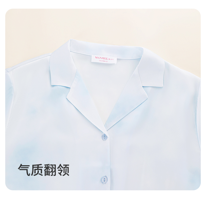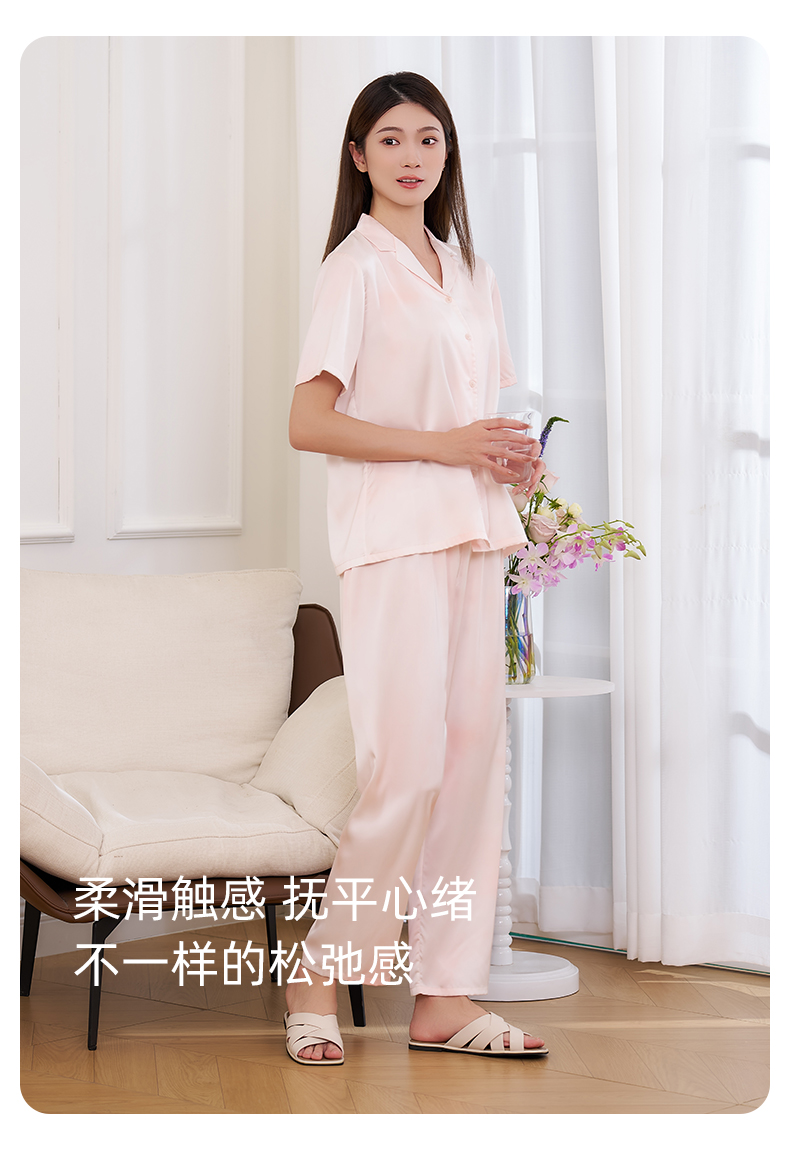 【商场同款】熳洁儿 缎面绸家居服春夏新款短袖女士开衫短袖长裤25203109
