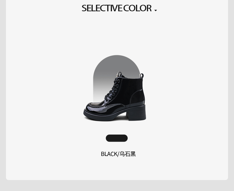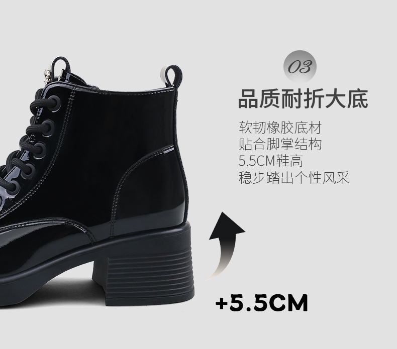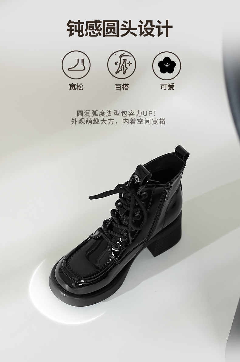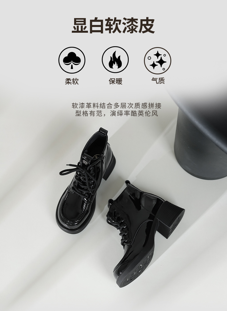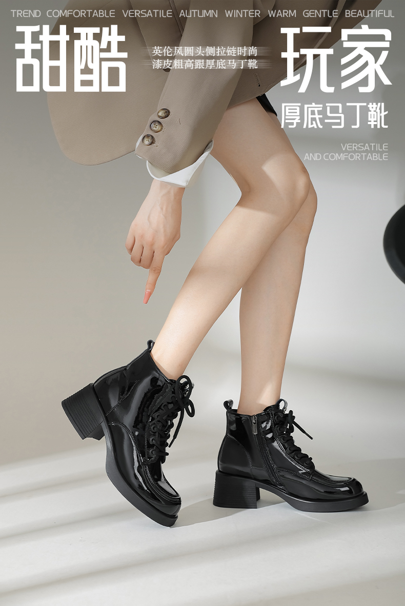 Safiya/索菲娅2024冬英伦风圆头侧拉链时尚漆皮粗高跟厚底马丁靴 SF44116253