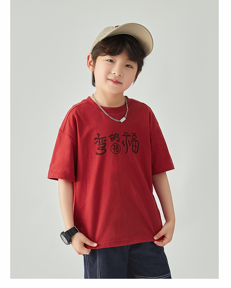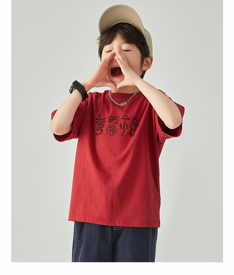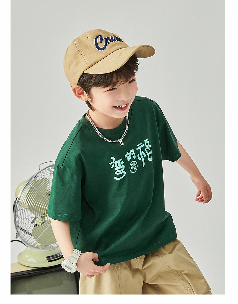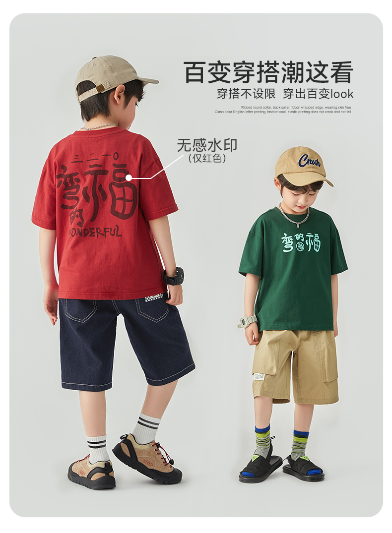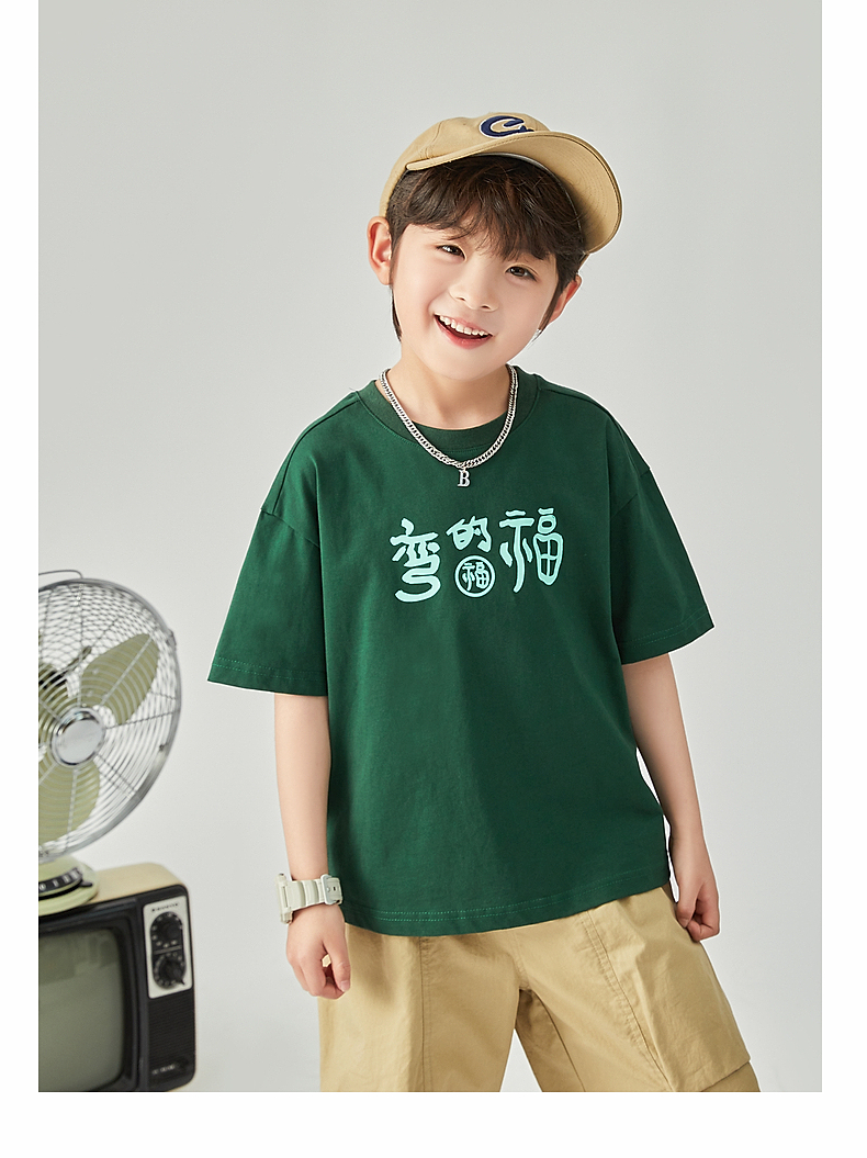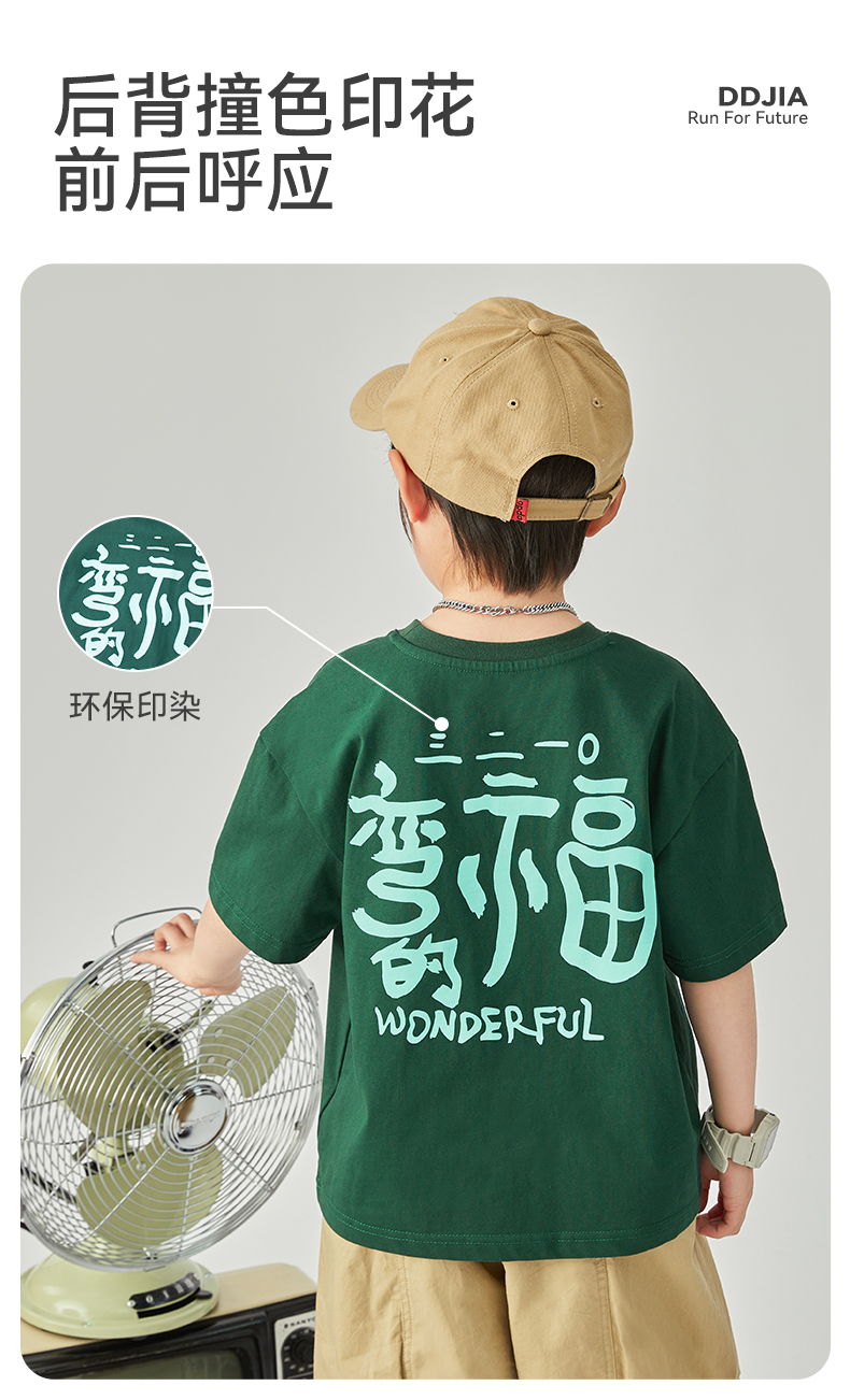 【团购价29.9】多多家 男童T恤2024夏季新款撞色印花纯棉圆领短袖儿童中大童9385