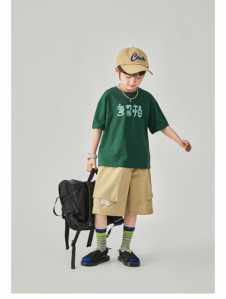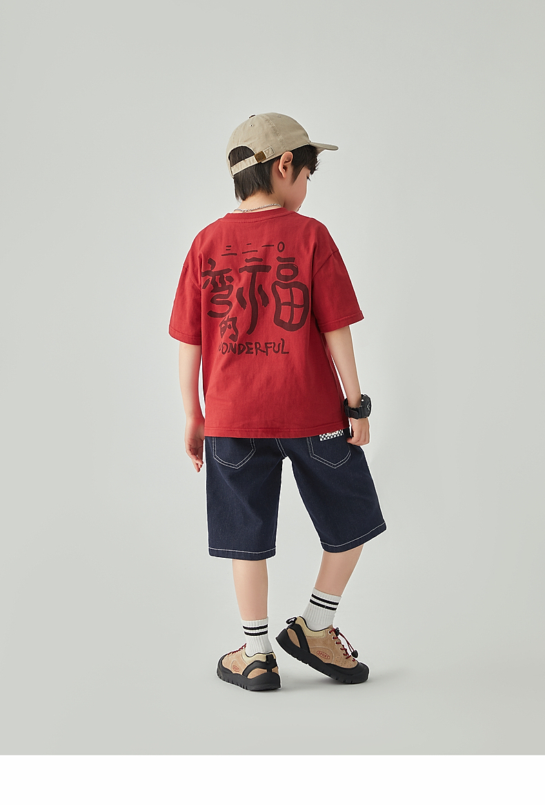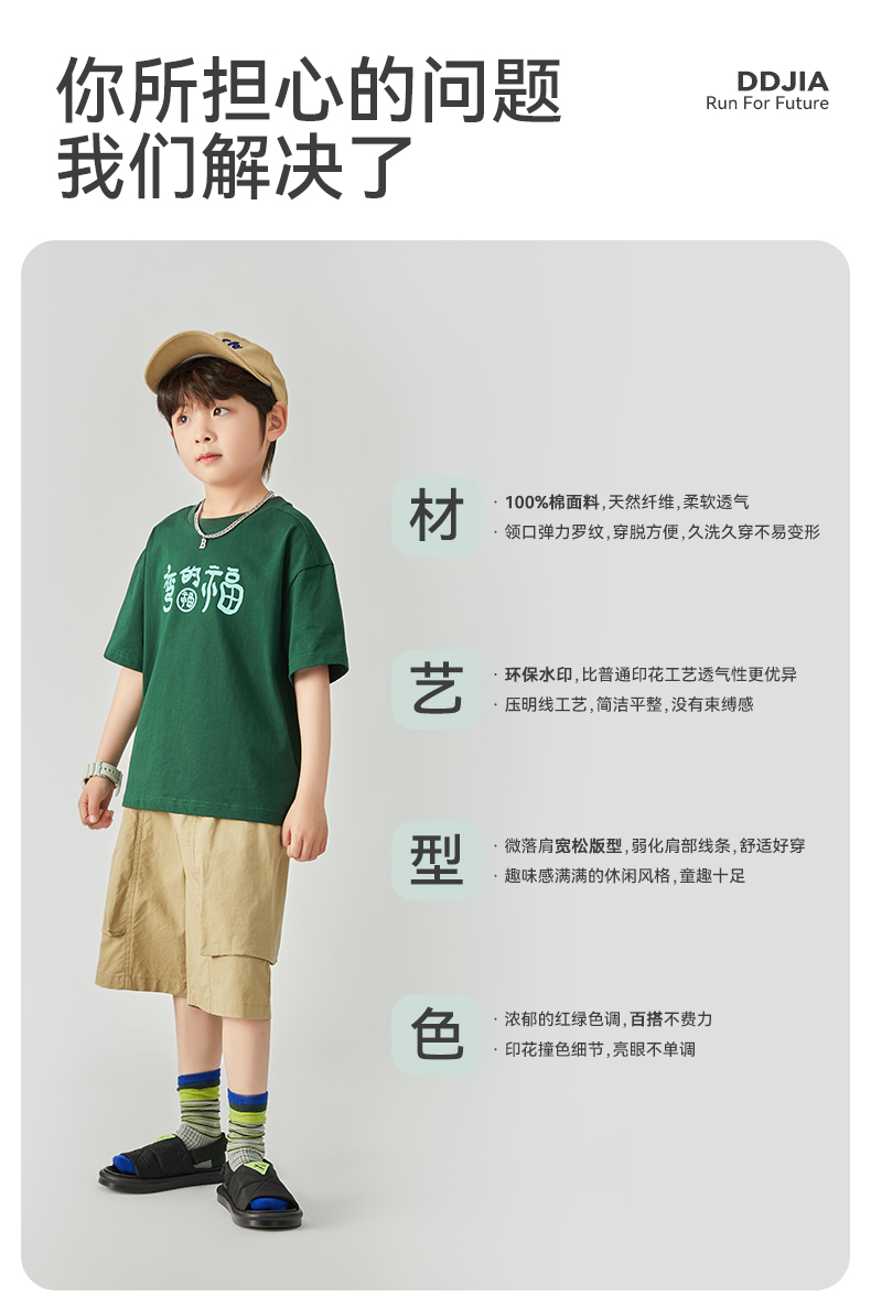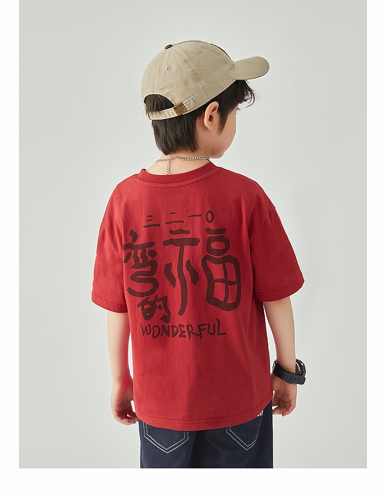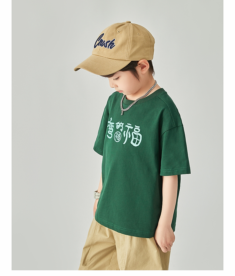 【团购价29.9】多多家 男童T恤2024夏季新款撞色印花纯棉圆领短袖儿童中大童9385