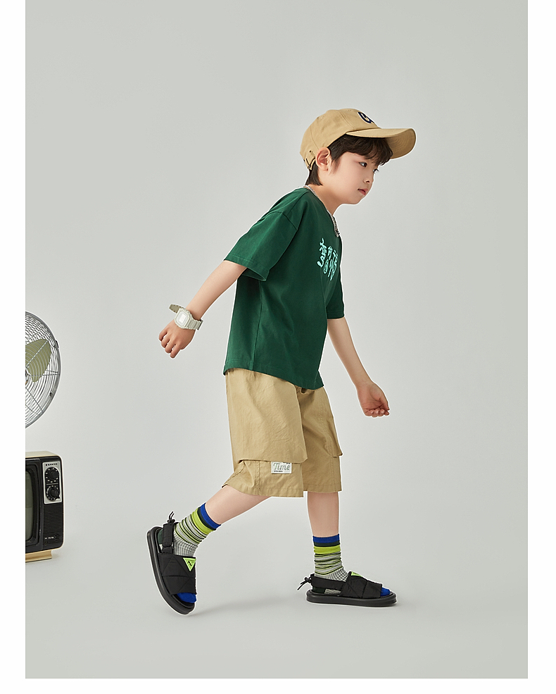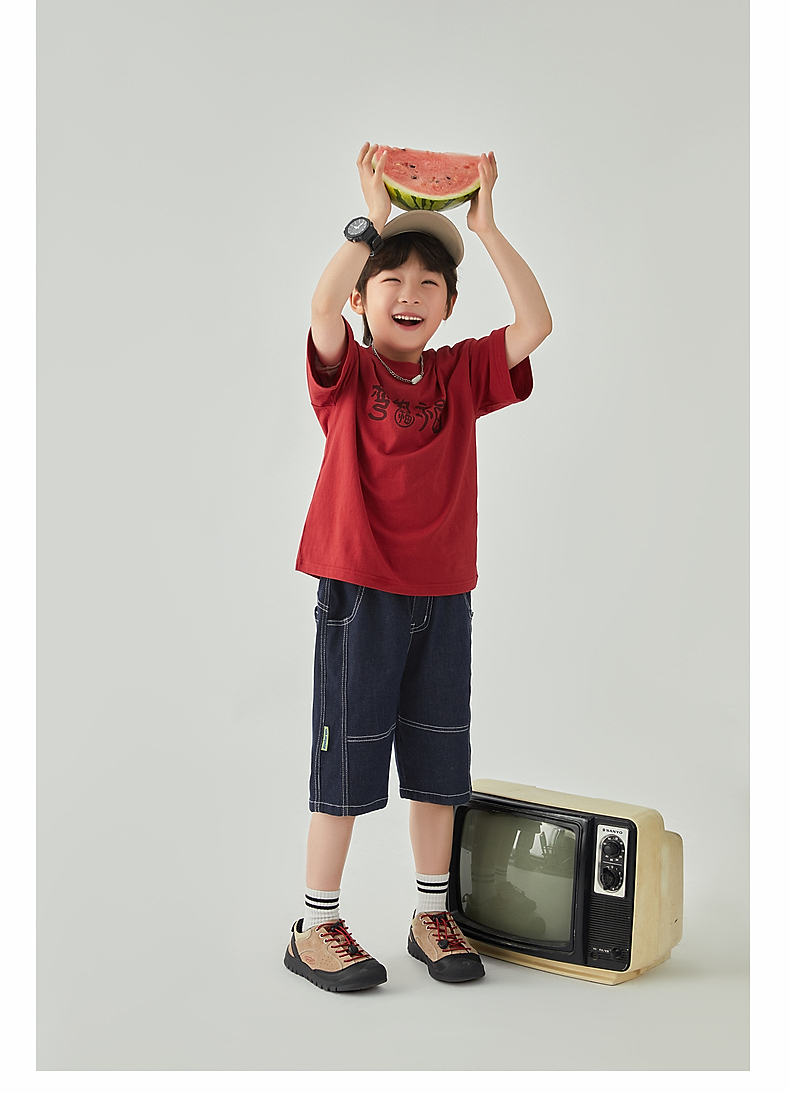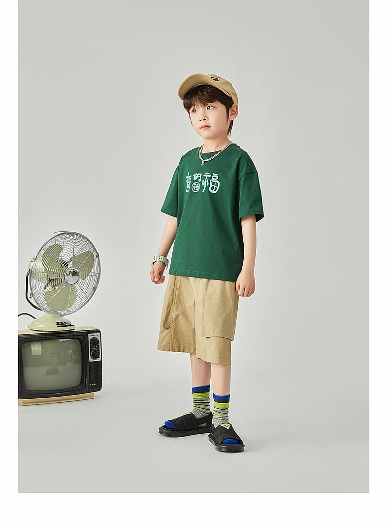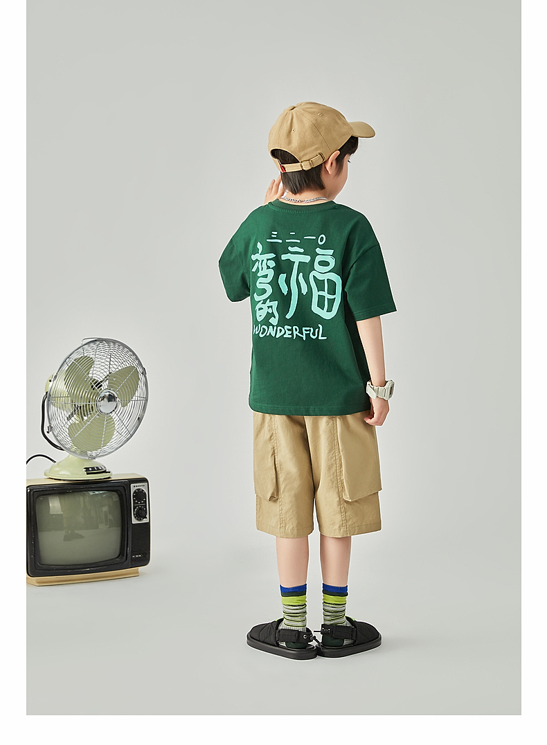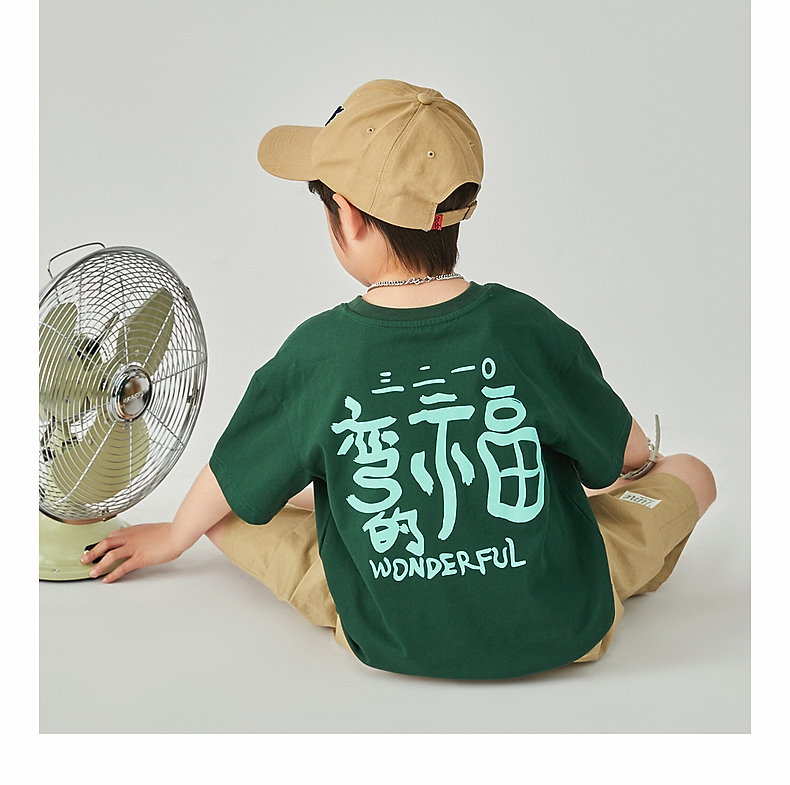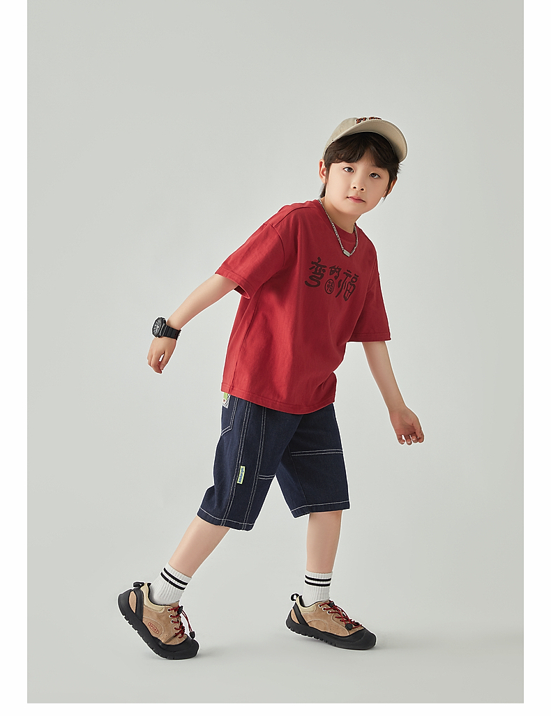 【团购价29.9】多多家 男童T恤2024夏季新款撞色印花纯棉圆领短袖儿童中大童9385