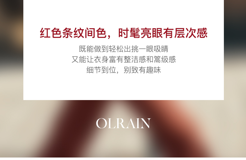 - “精致”是欧芮儿olrain品牌文化的核心,欧芮儿认为,精致的女人,不但要外在动人,更要内在迷人,内外兼修,有魅力、有气质、有内涵,自信而不自傲,优雅而不矫揉,自有万种风情而不轻浮,更不故作矜持。