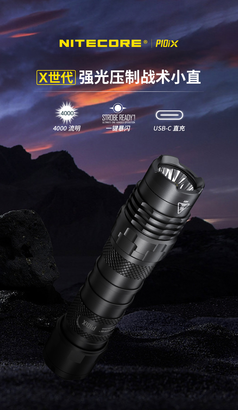 NITECORE奈特科尔P10iX高性能i世代一键暴闪4000流明type-c充电执勤战术手电筒