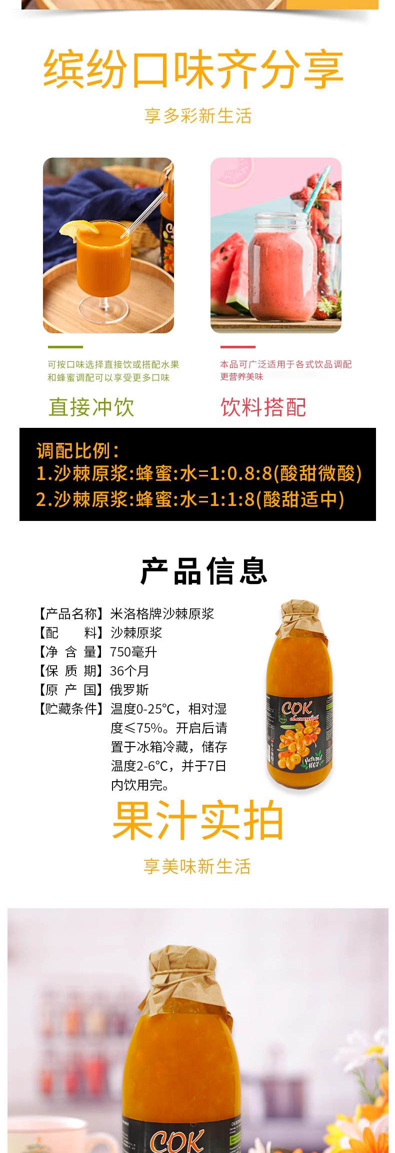 米洛格牌沙棘原浆750ml/瓶(俄罗斯)