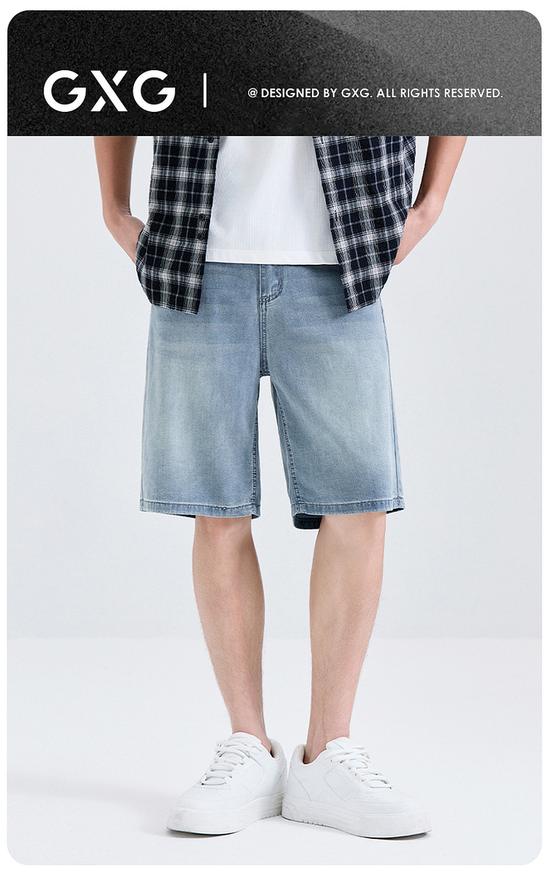 GXG男装【莱赛尔】25夏季舒适松紧腰牛仔休闲男式五分短裤K&C
