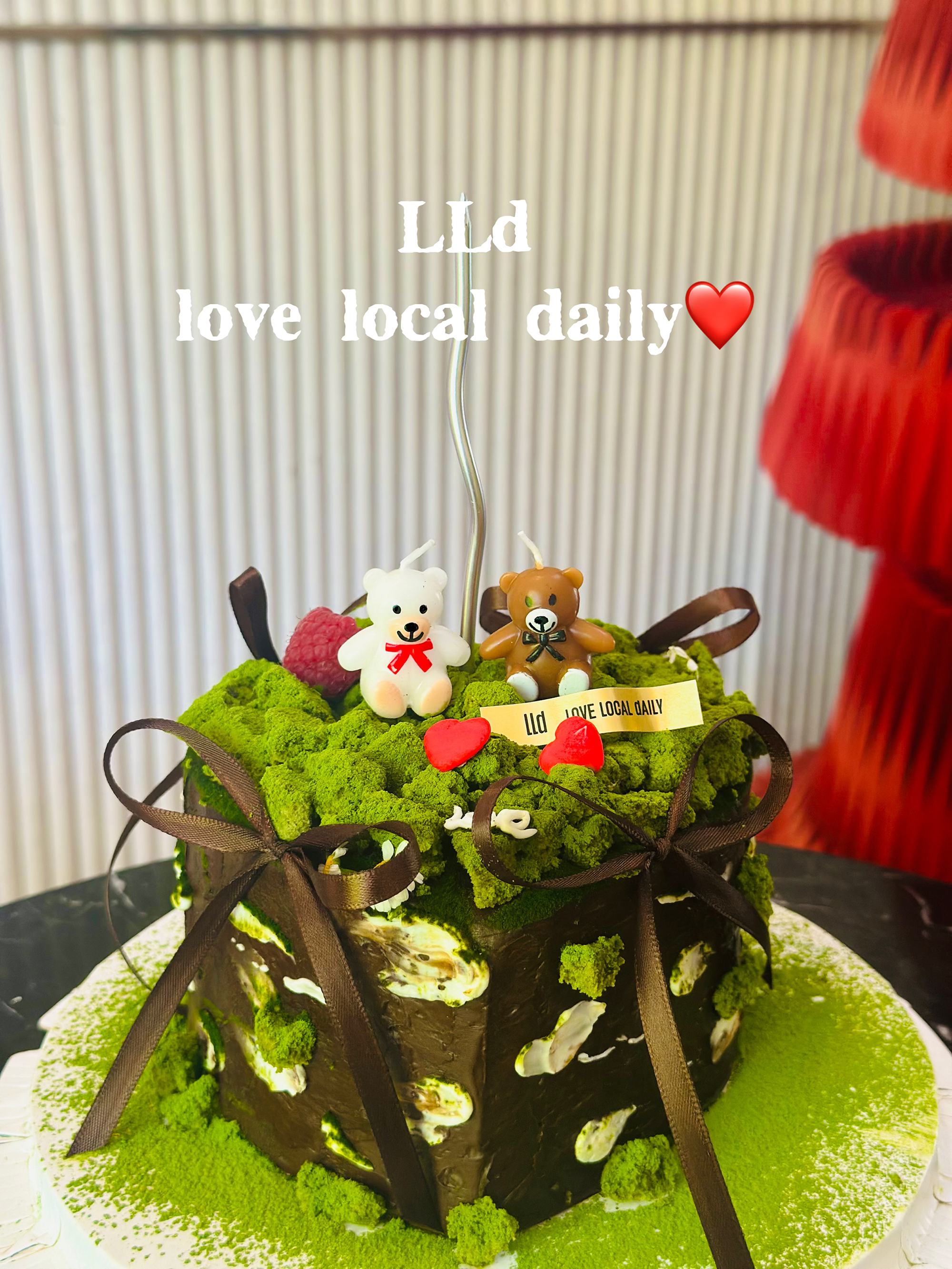 装饰小熊蜡烛和丝带不可食用,食用蛋糕时请取出