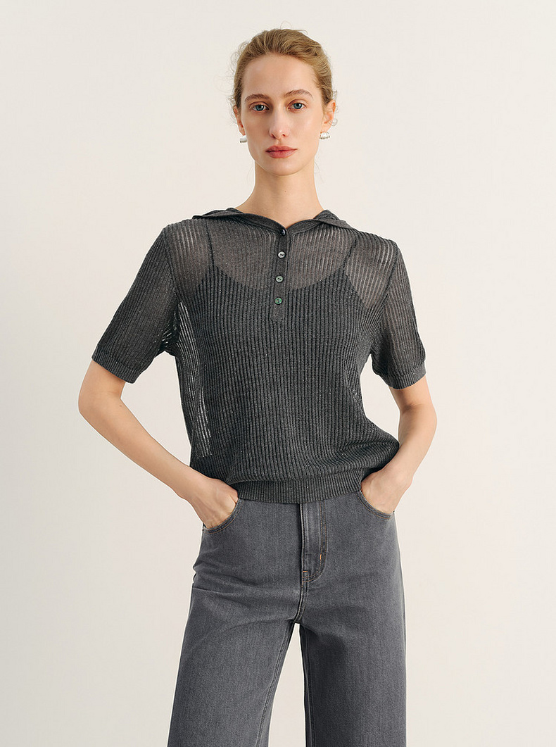 【商场同款】诗凡黎Polo领条纹针织衫25秋新款短袖上衣3G7131531