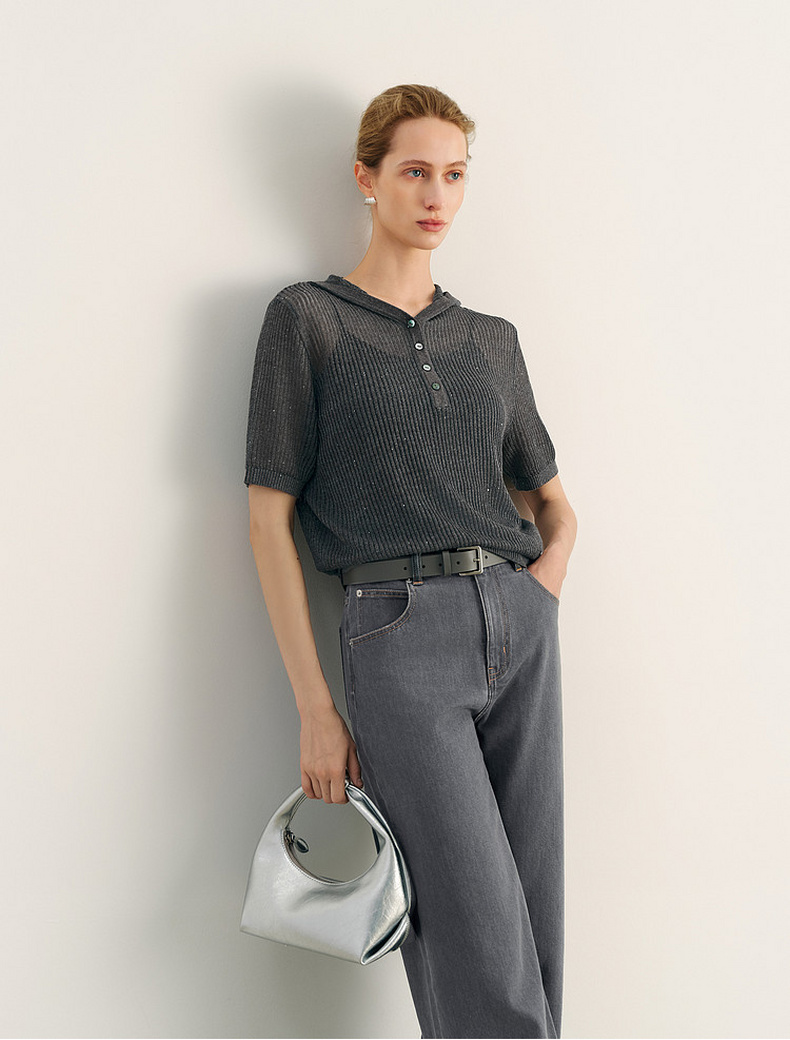 【积分换购不退货】【商场同款】诗凡黎灰色高腰直筒休闲裤2024夏新款长裤3F4350731