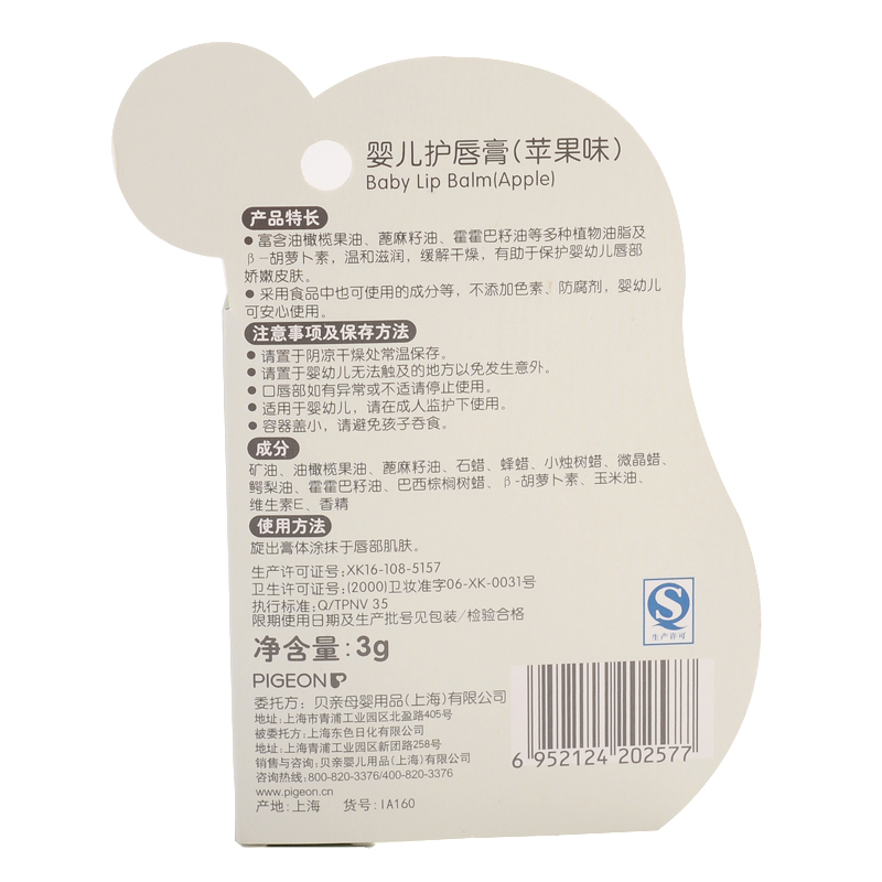 贝亲婴儿护唇膏甜橙味3g 唇膏/IA161