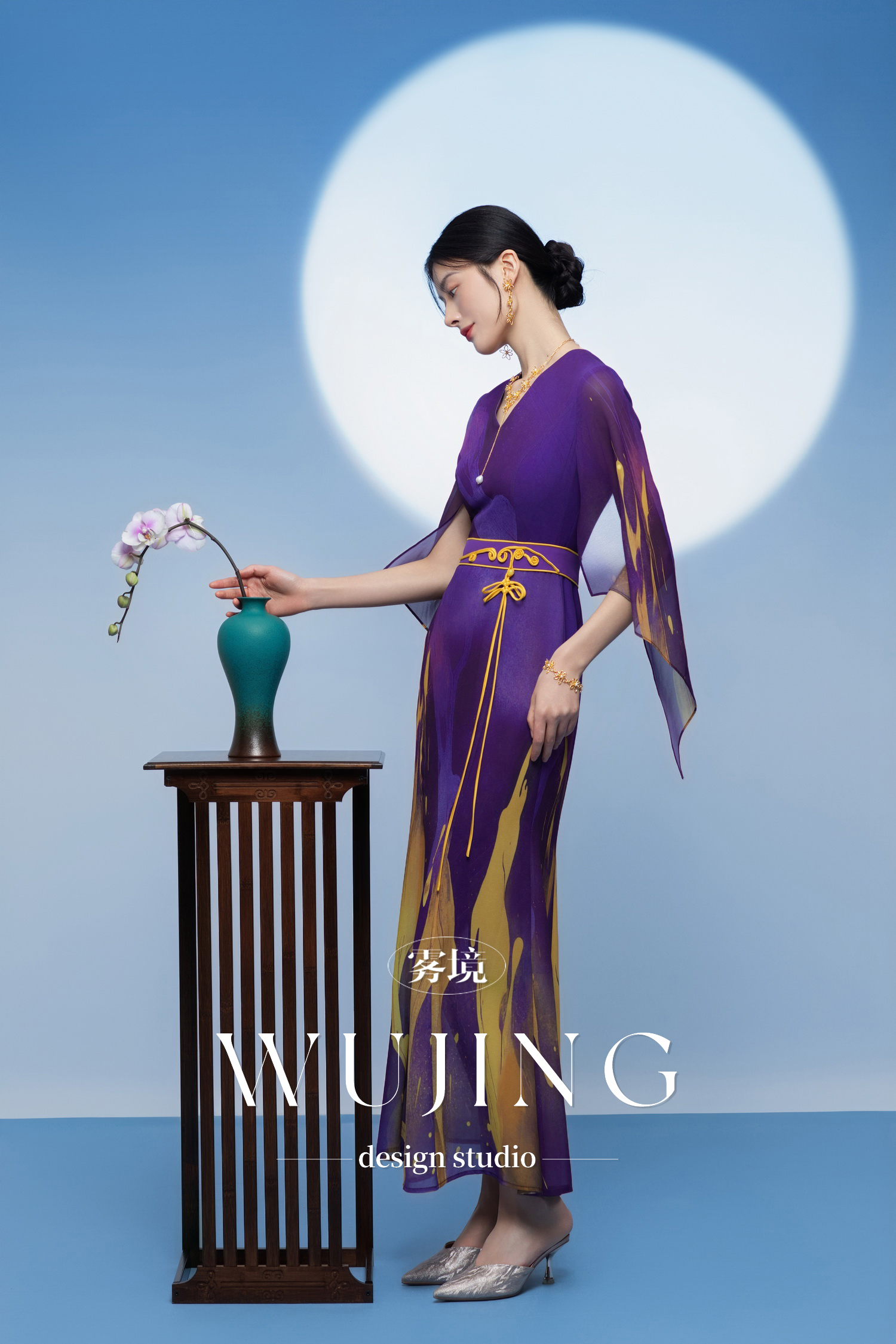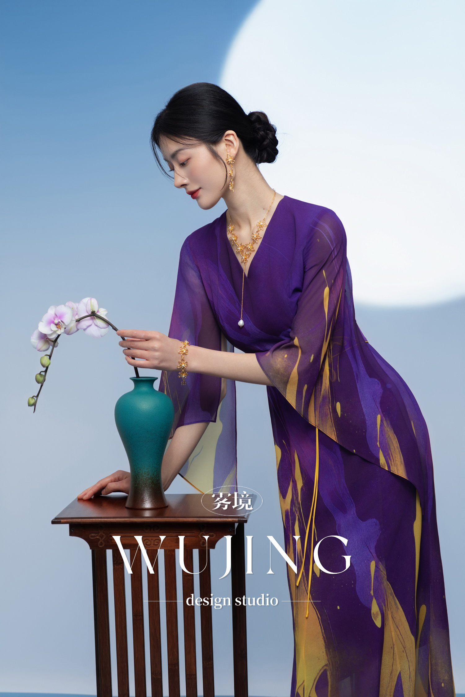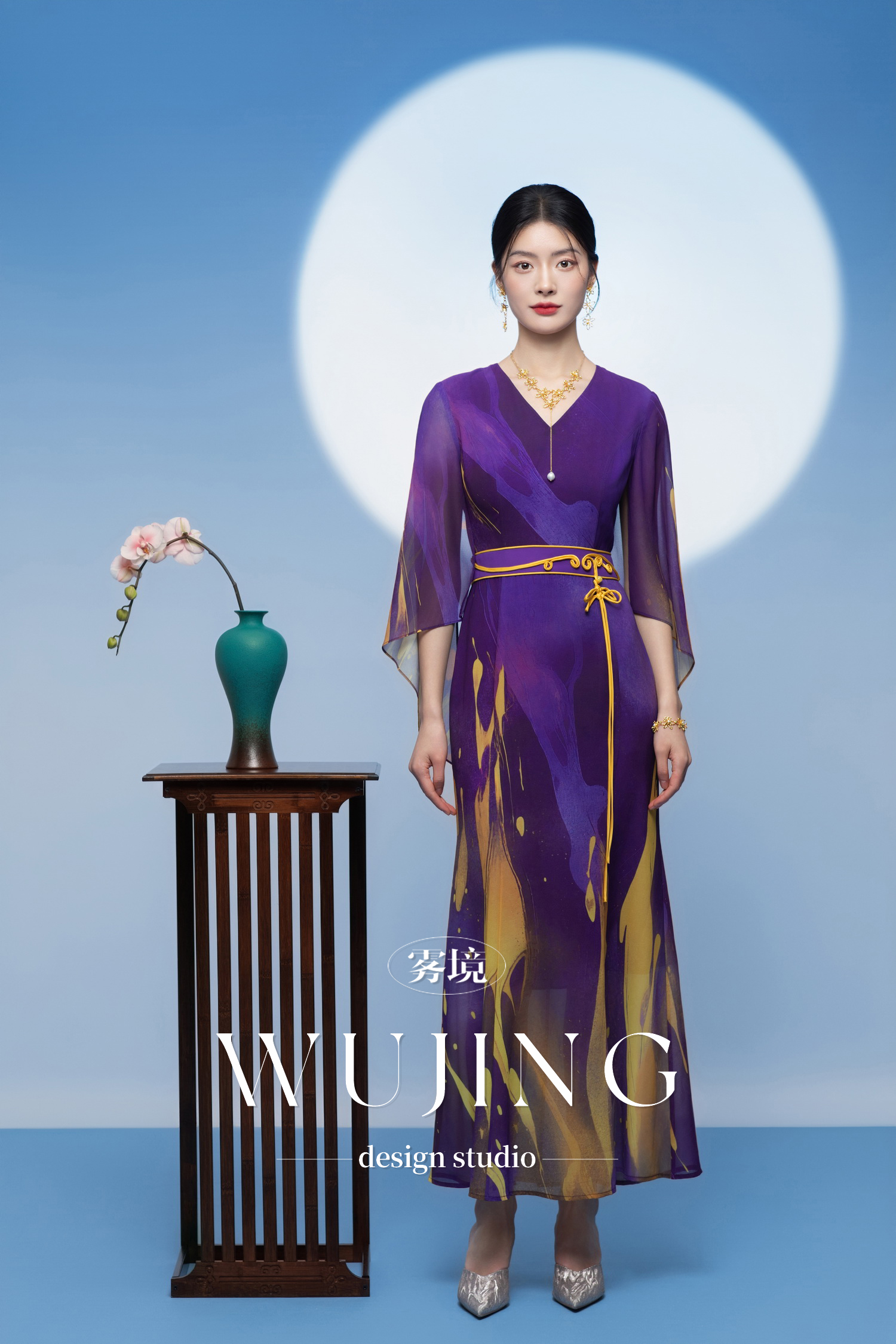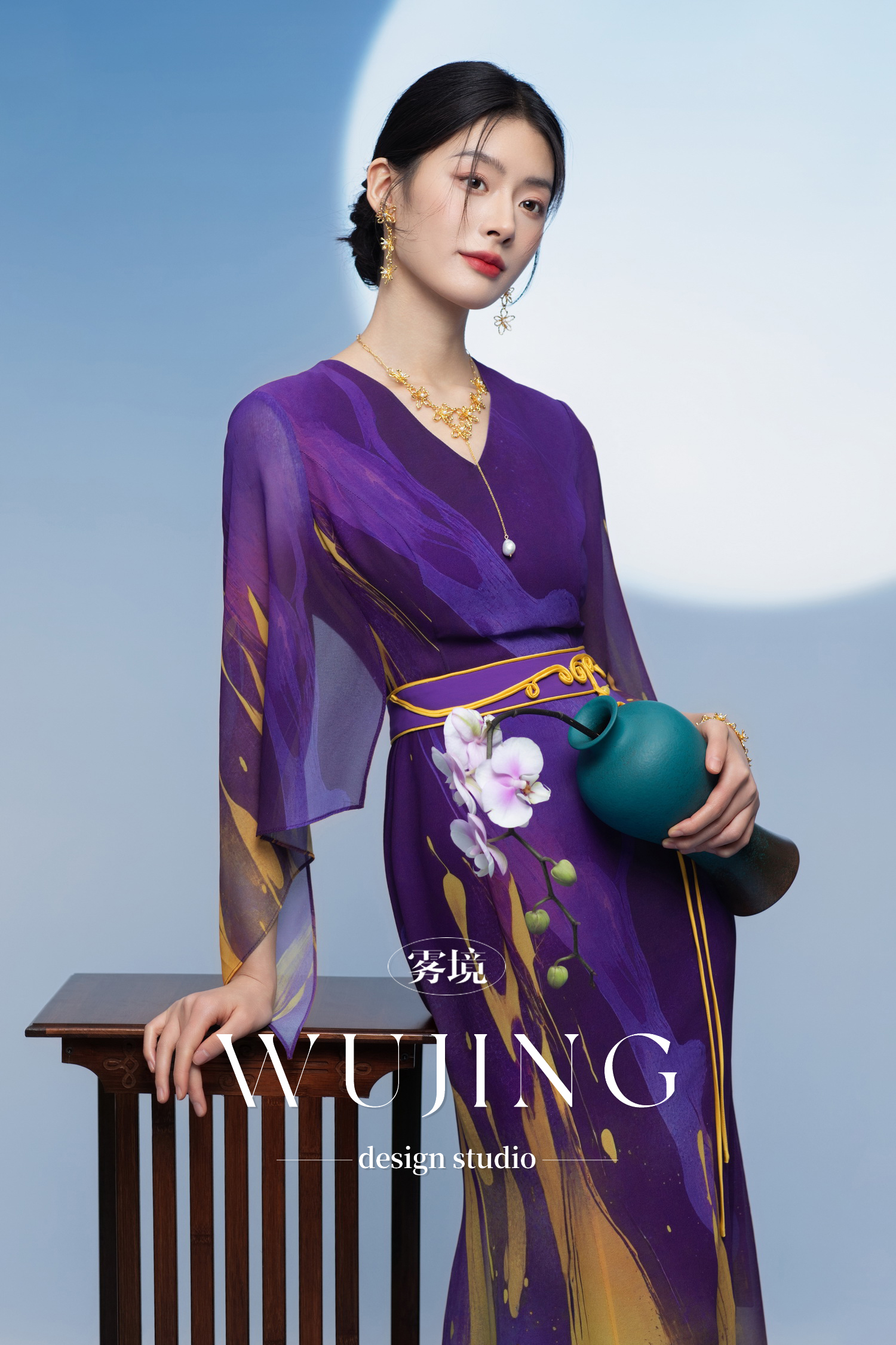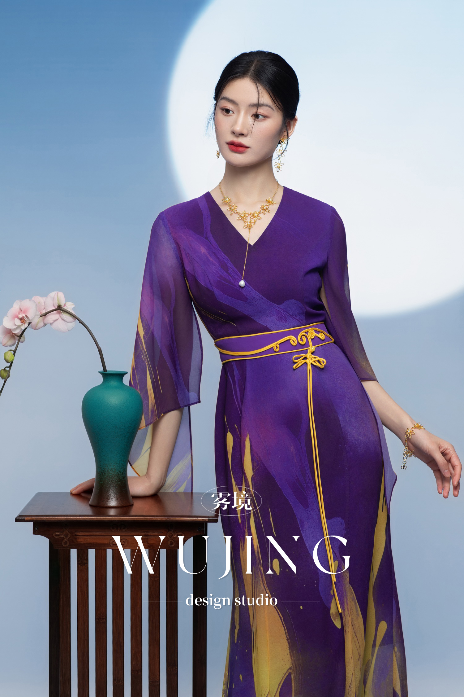 3205278 紫金梦雨 韩国进口水晶乔其纱连衣裙 雾境