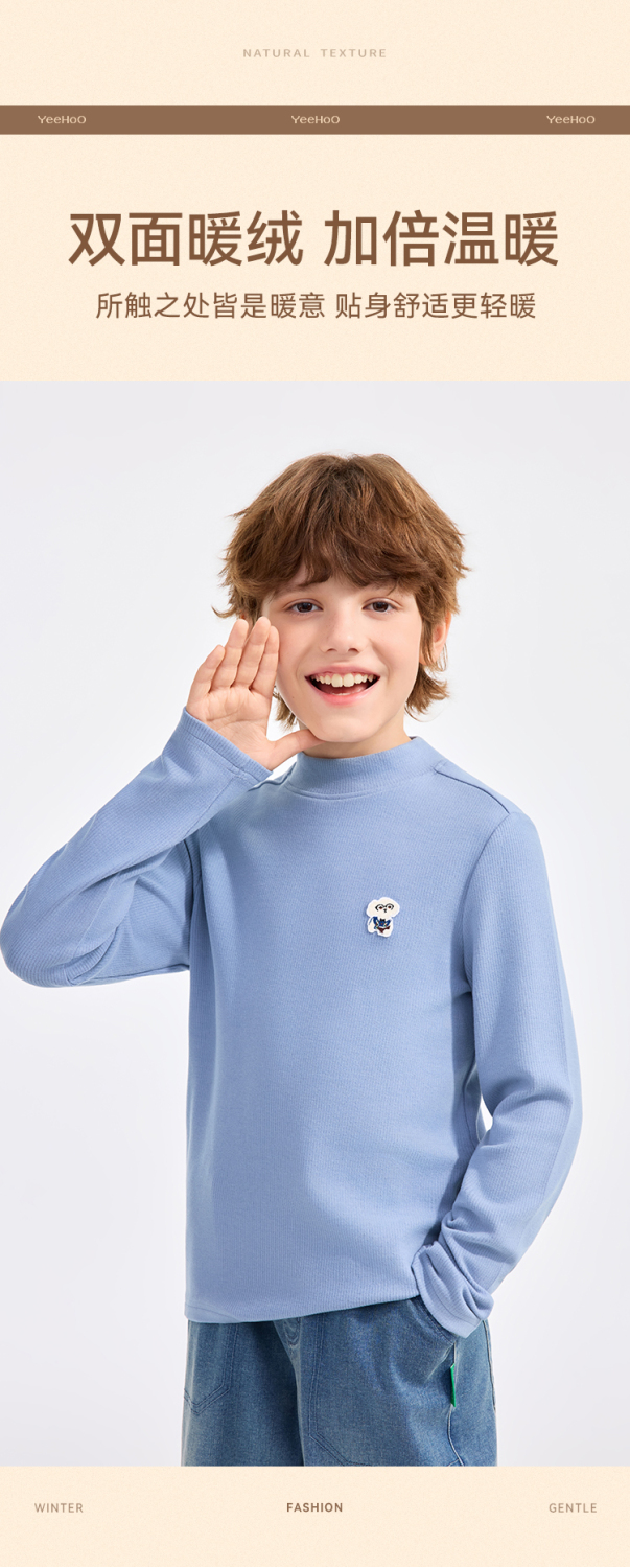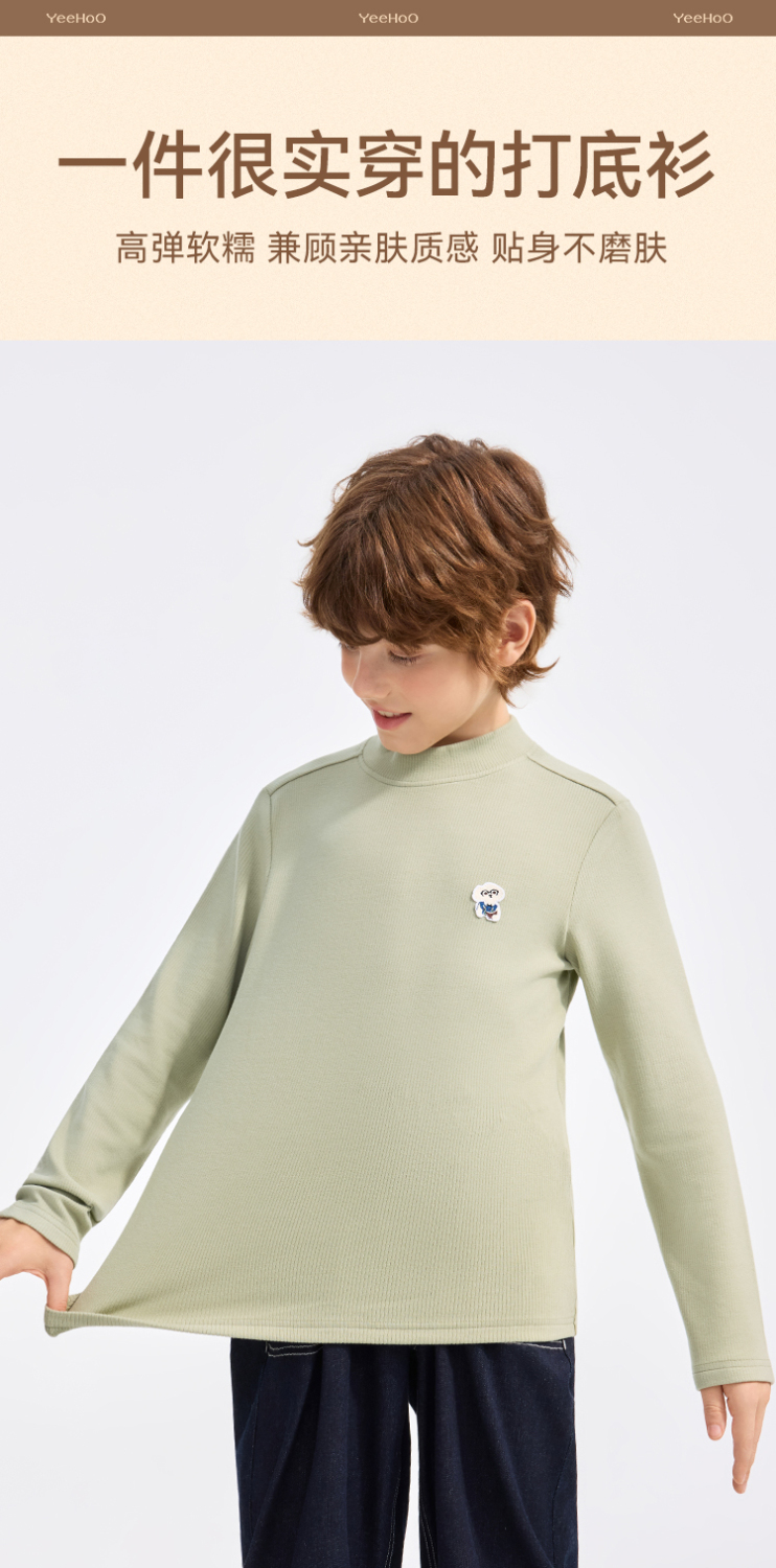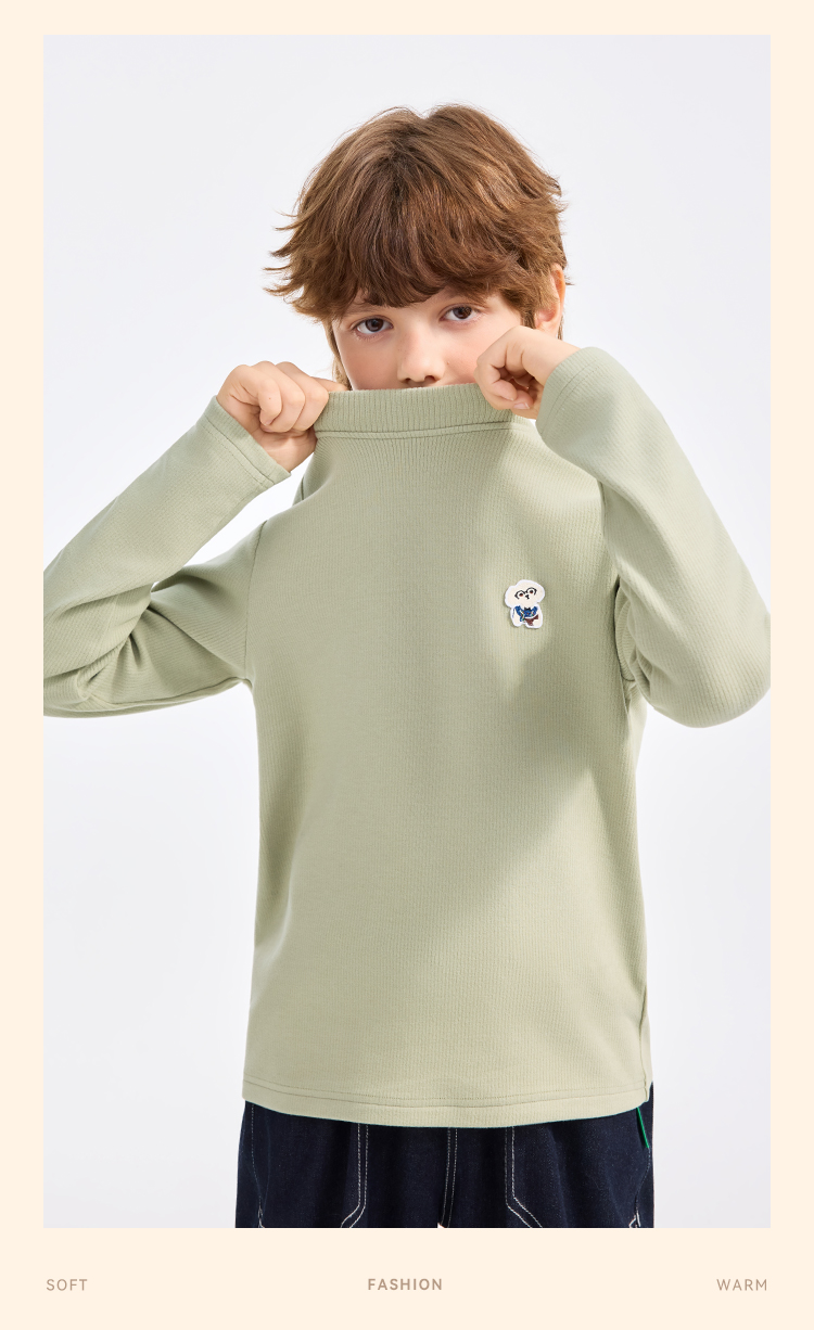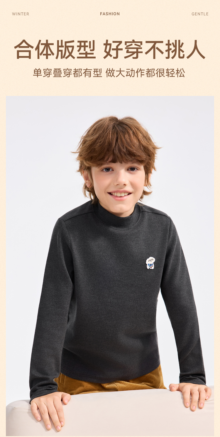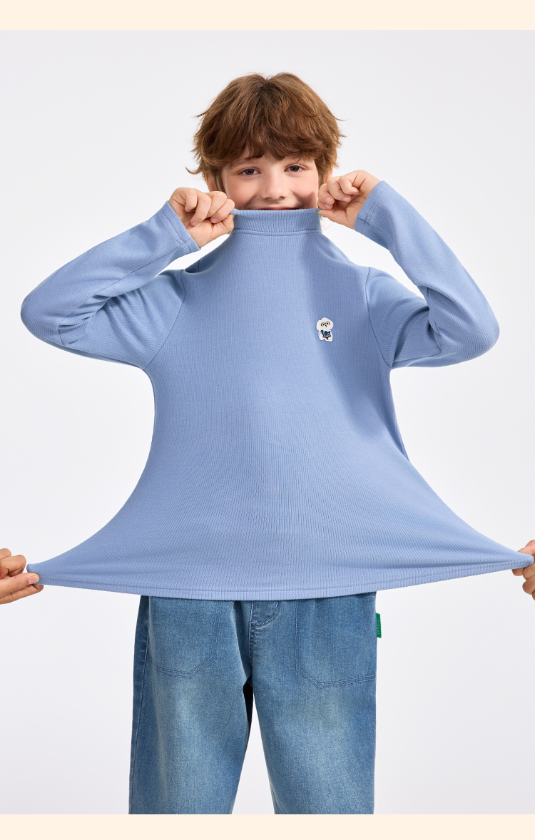 【英氏】【德绒暖感】【90-140】男童冬款半高领打底衫