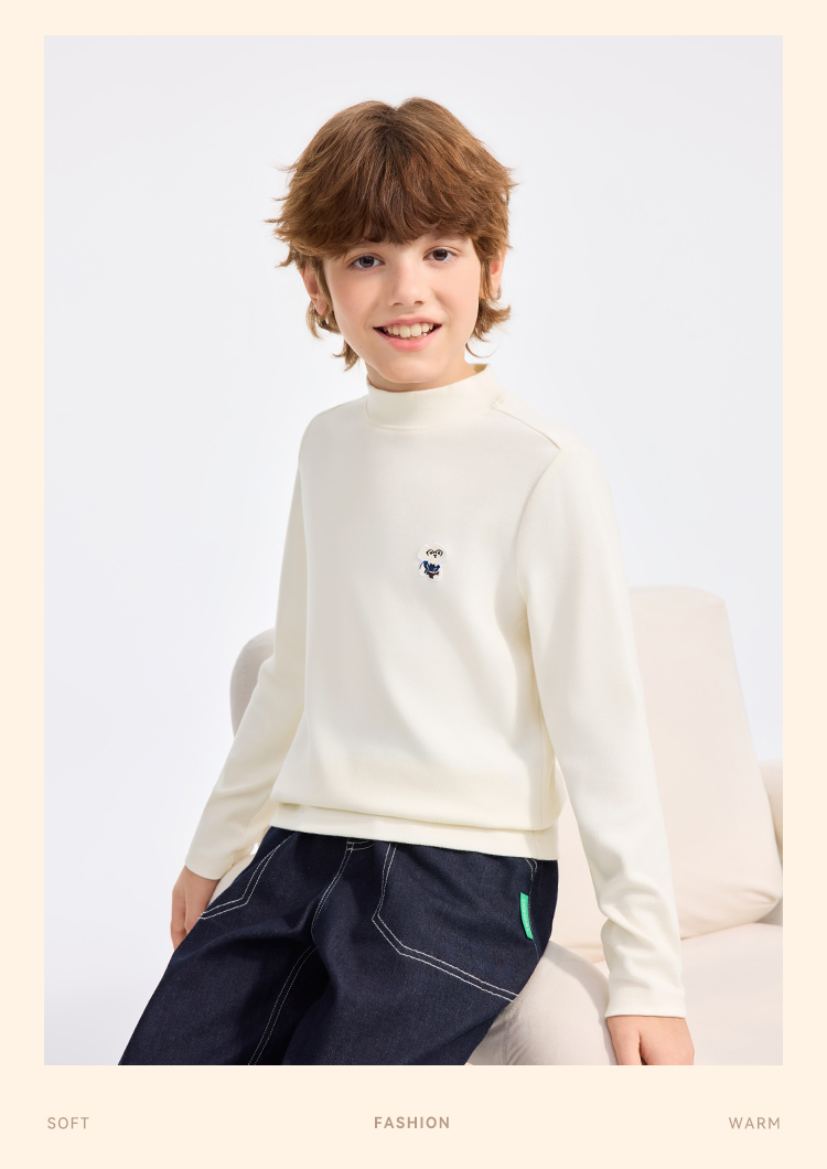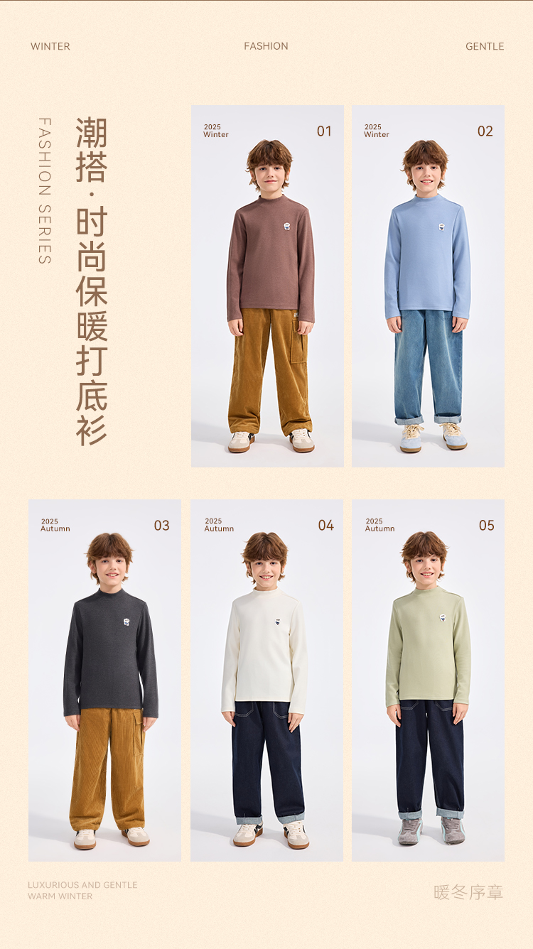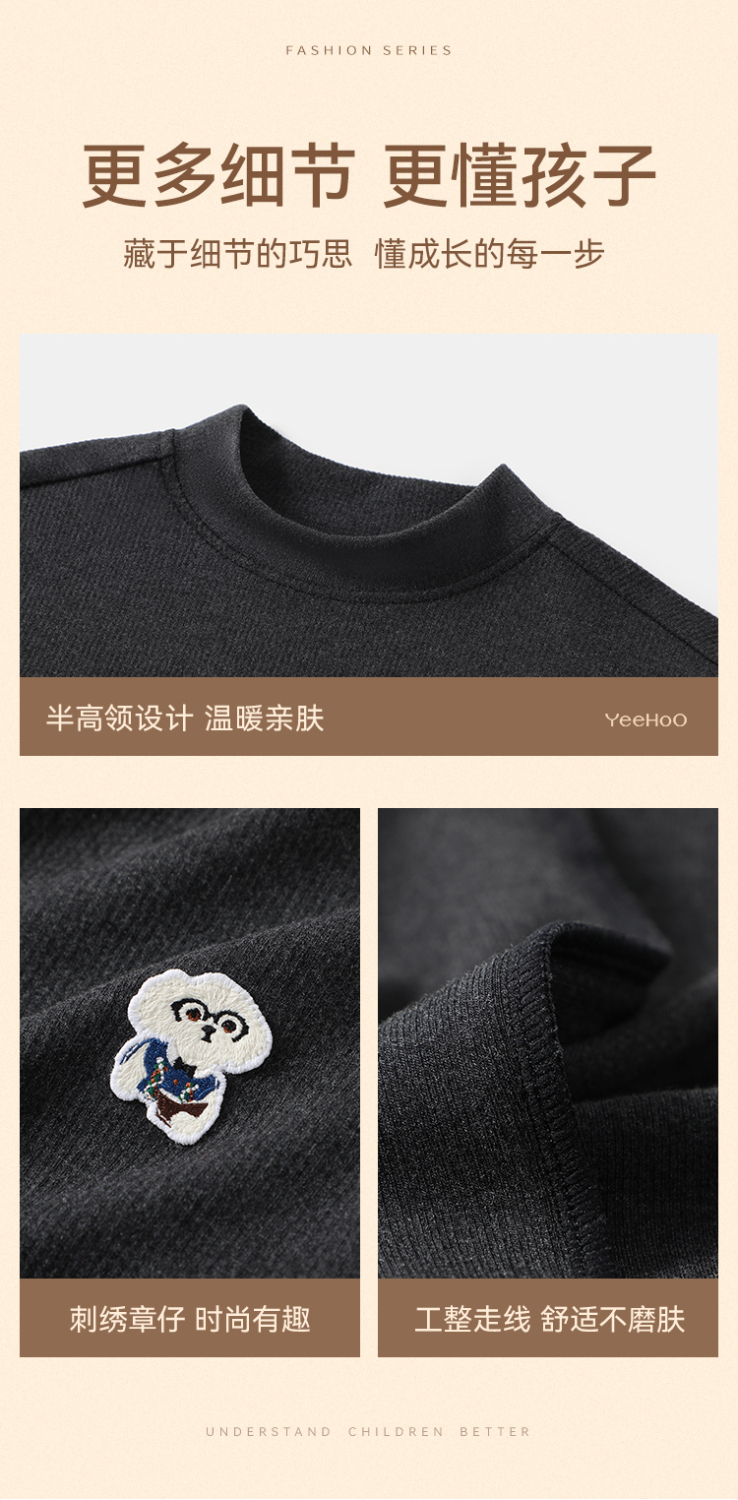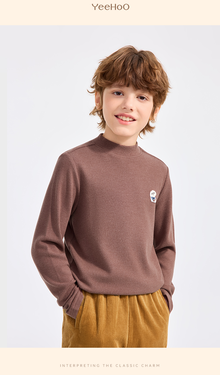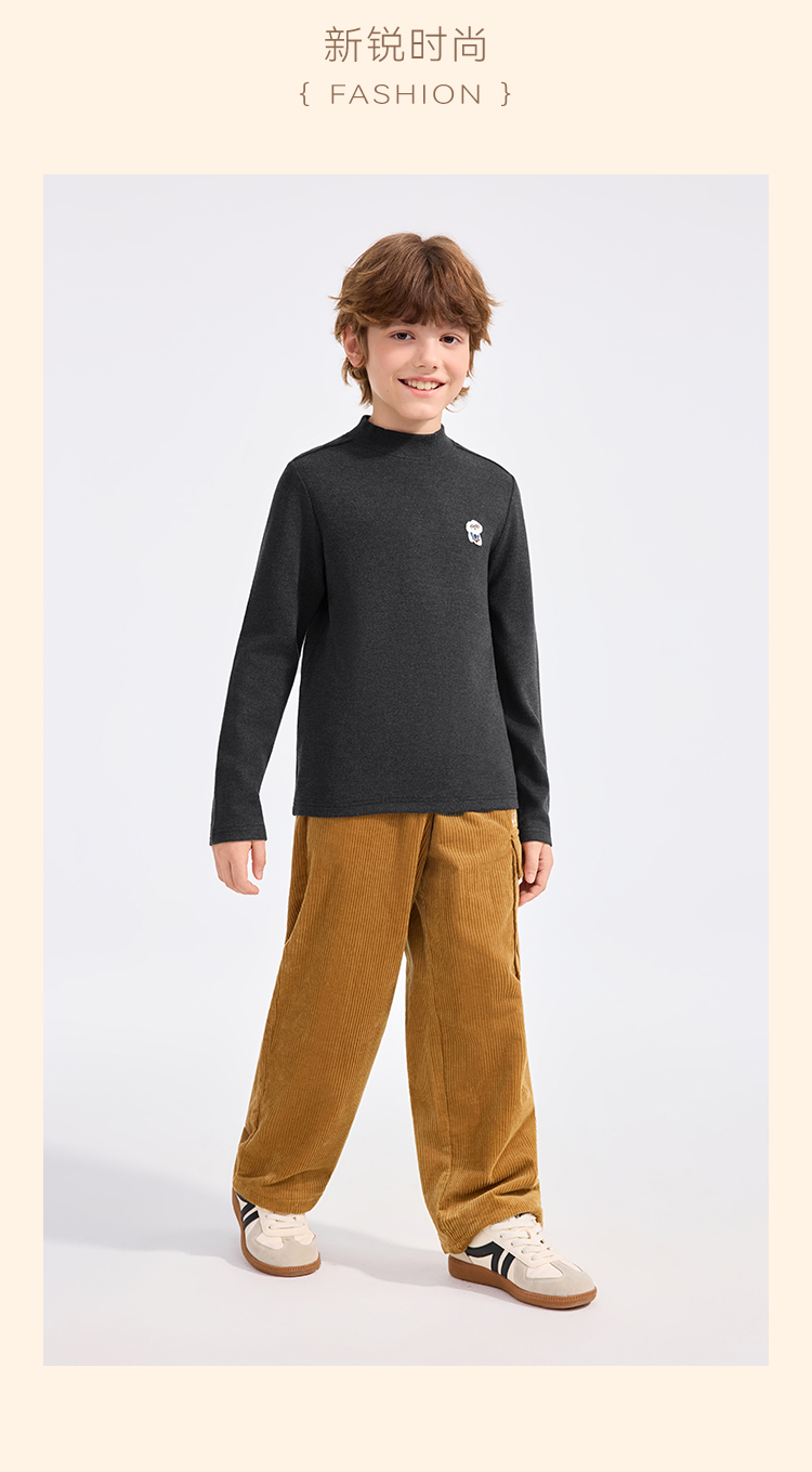 【英氏】【德绒暖感】【90-140】男童冬款半高领打底衫