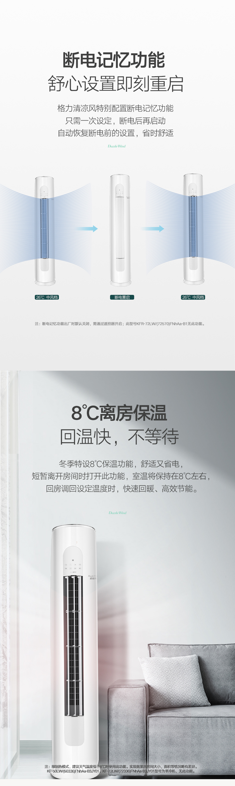 清凉风变频冷暖3匹1级能效柜机空调 KFR-72LW/(72542)FNhAa-B1JY01 皓雪白