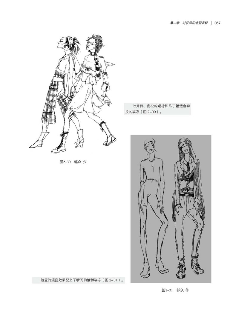 二、根据服装特点绘制时装画人体动态… ……………………………………………… 056