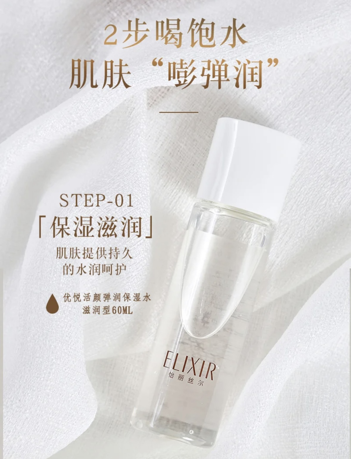怡丽丝尔 · elixir中样优悦活颜胶原蛋白弹润水乳保湿滋润抗皱套装 水60ml+乳50ml
