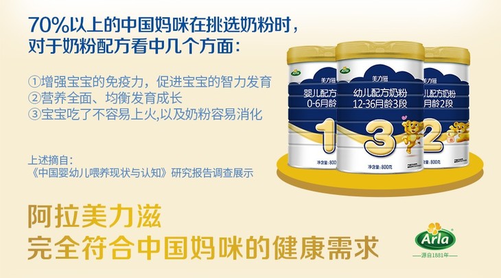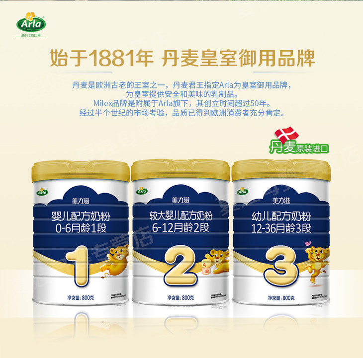 丹麦Arla美力滋婴儿配方奶粉2段6-12个月800g(2022年5月)