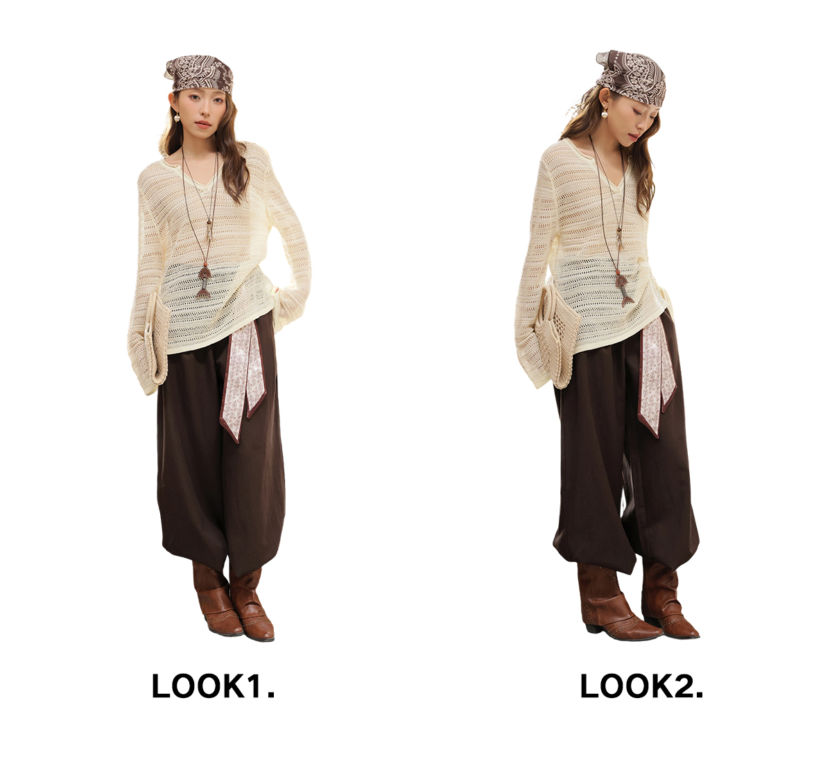 【门店同款】ENJOY春季丝巾腰带松弛阔腿裤 169147016