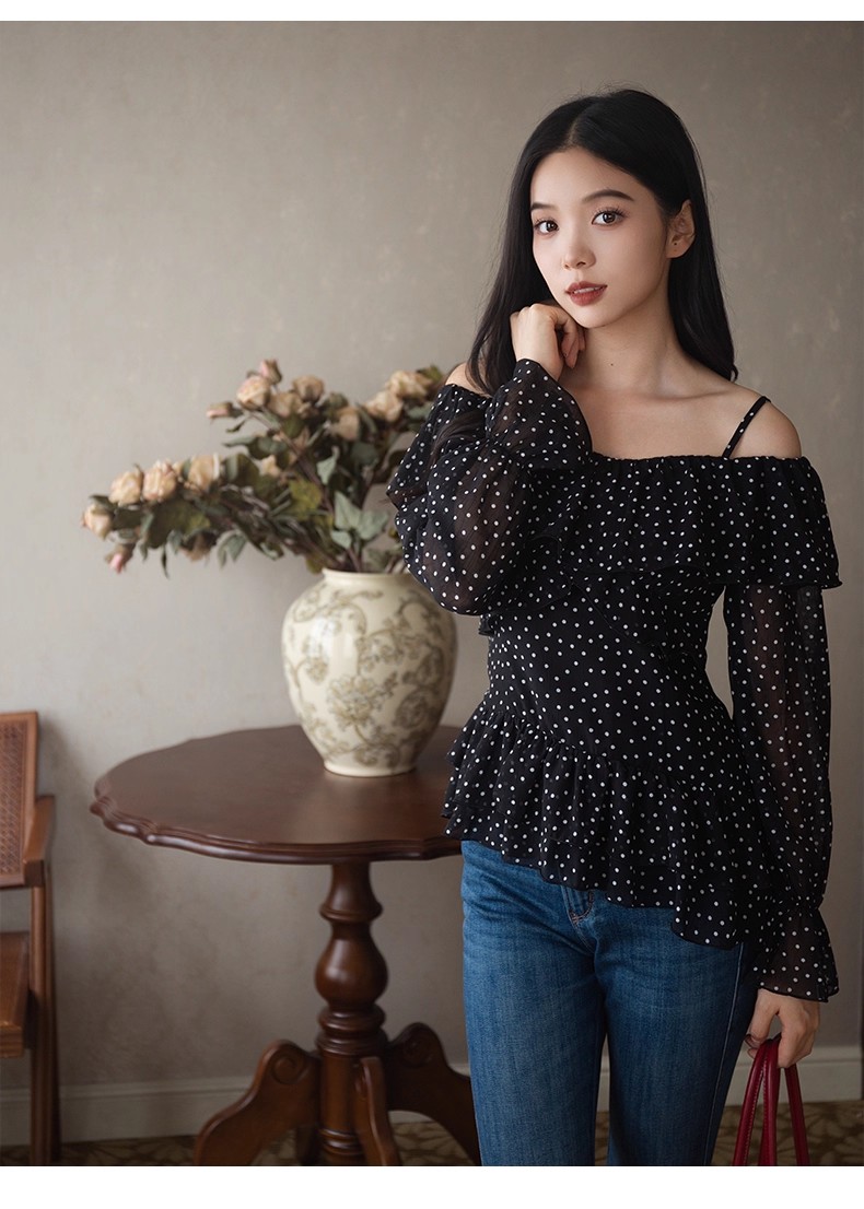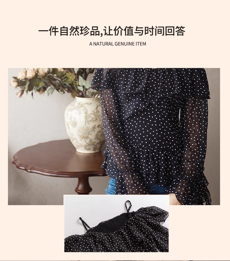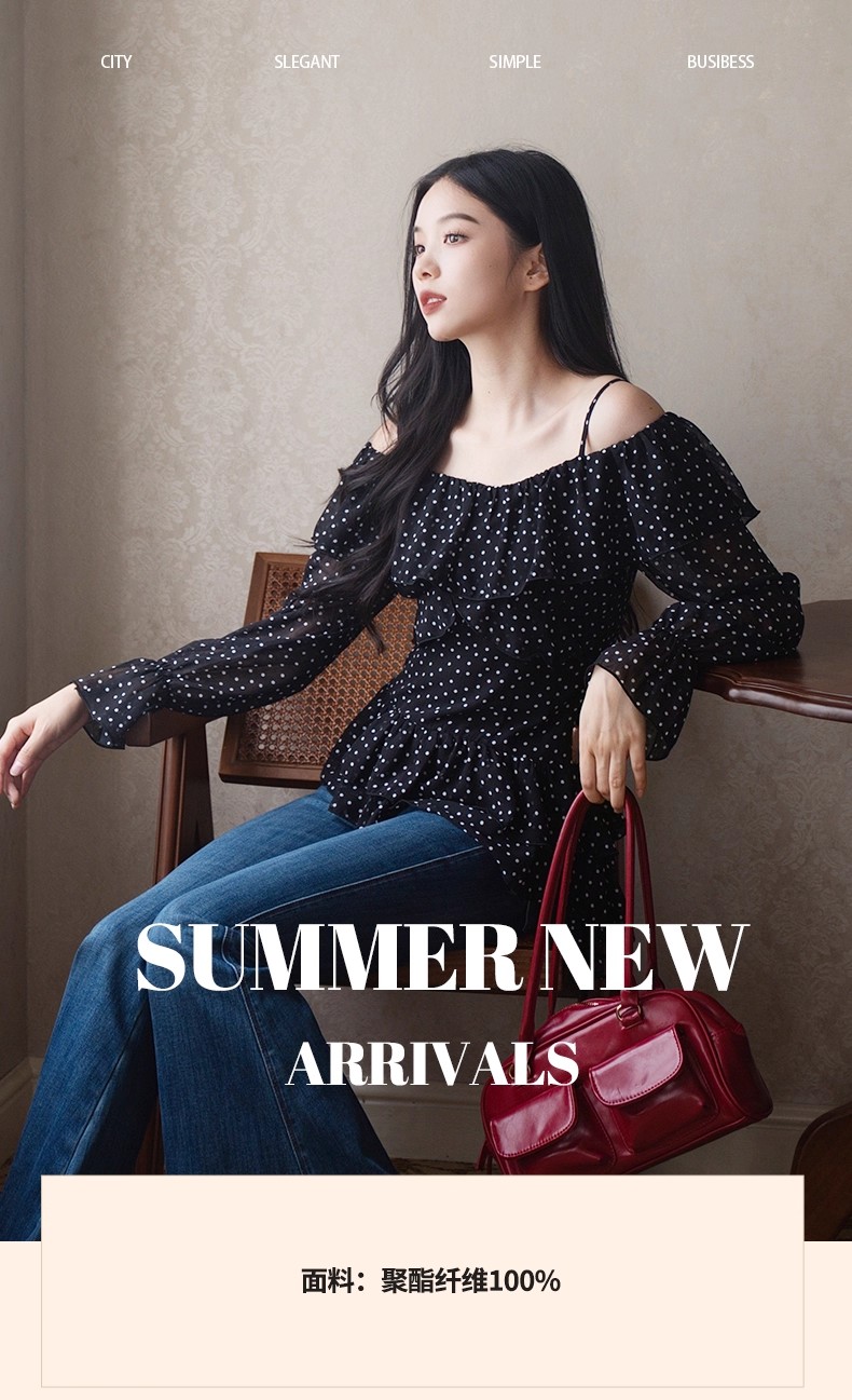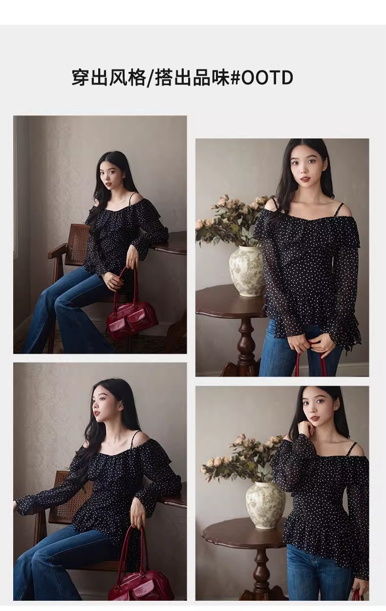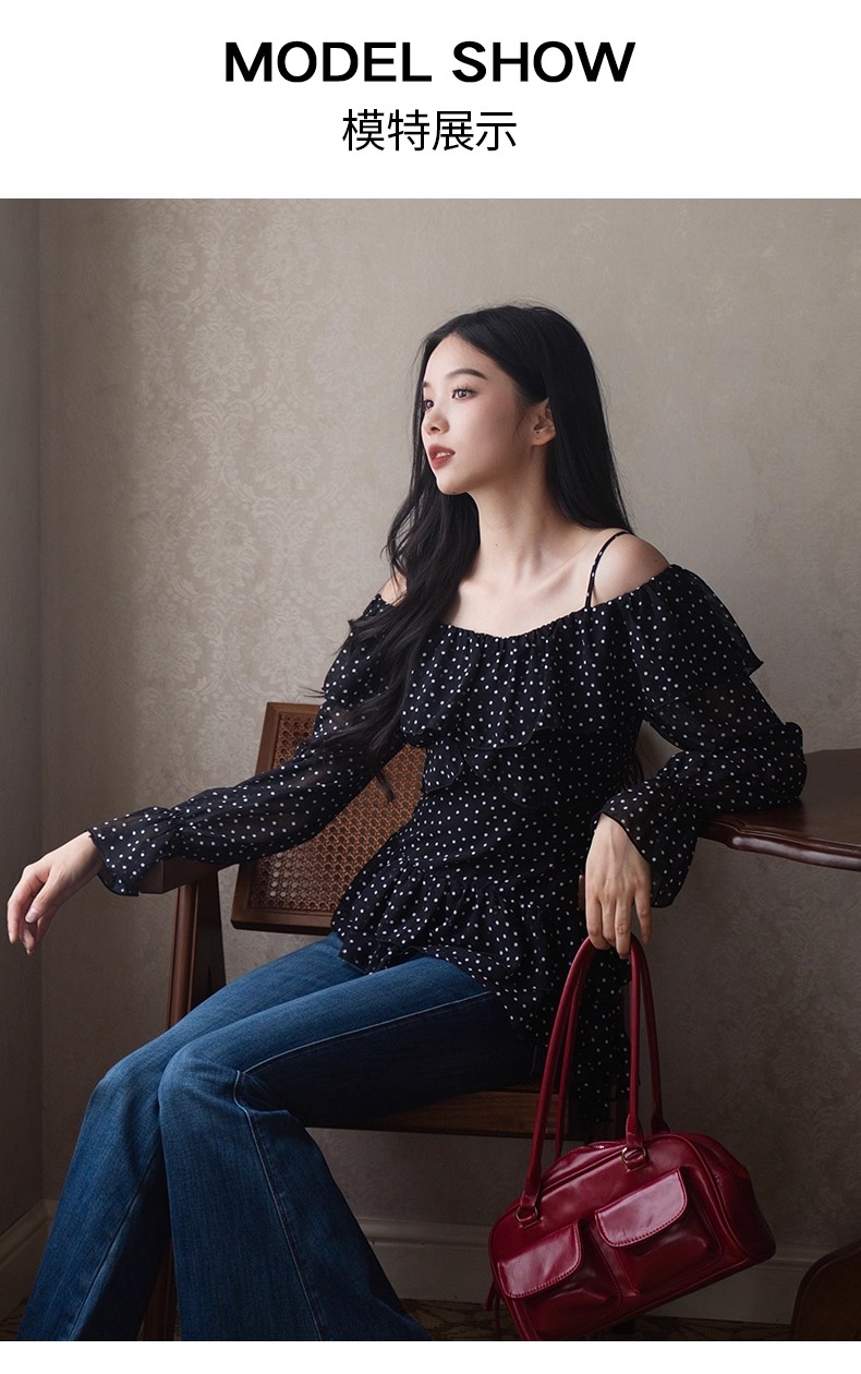 【门店同款】ENJOY秋季“谧色花颂”一字肩波点上衣 164344125