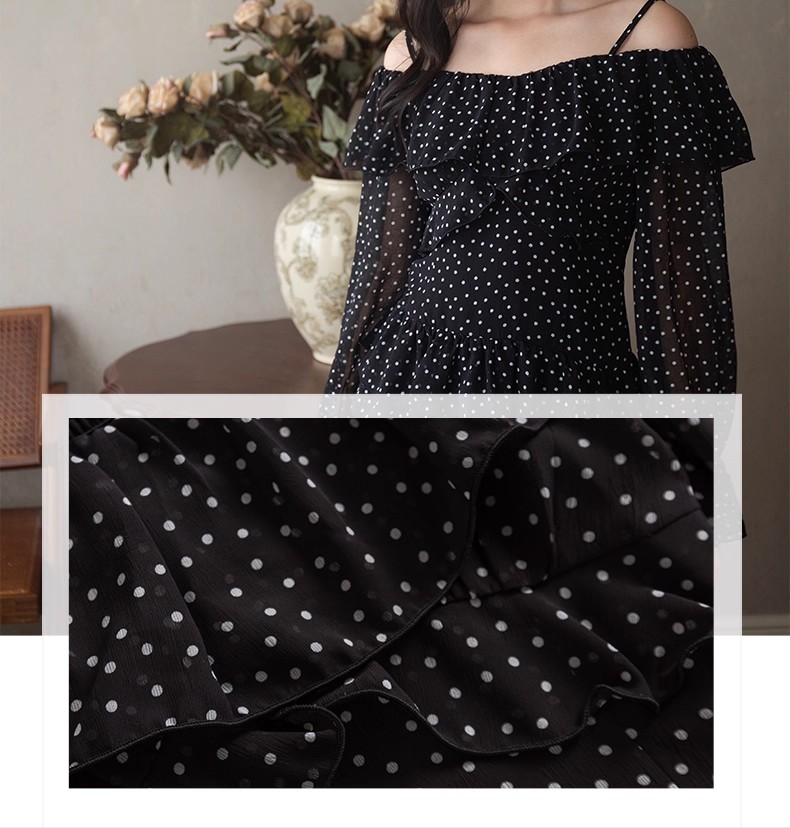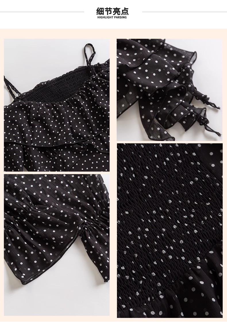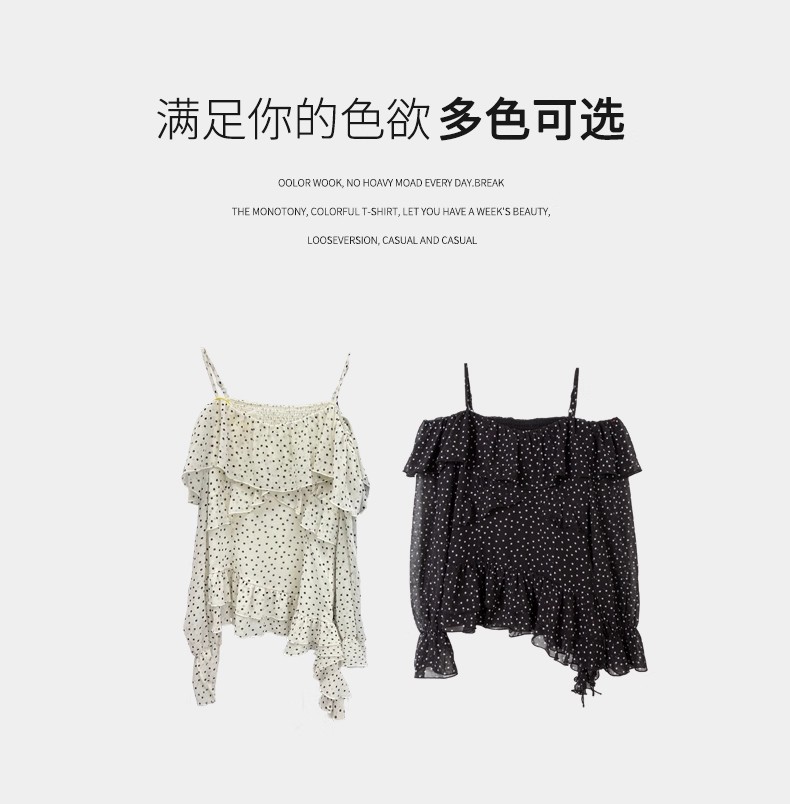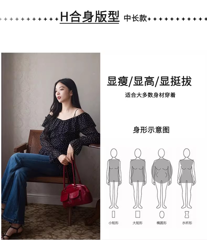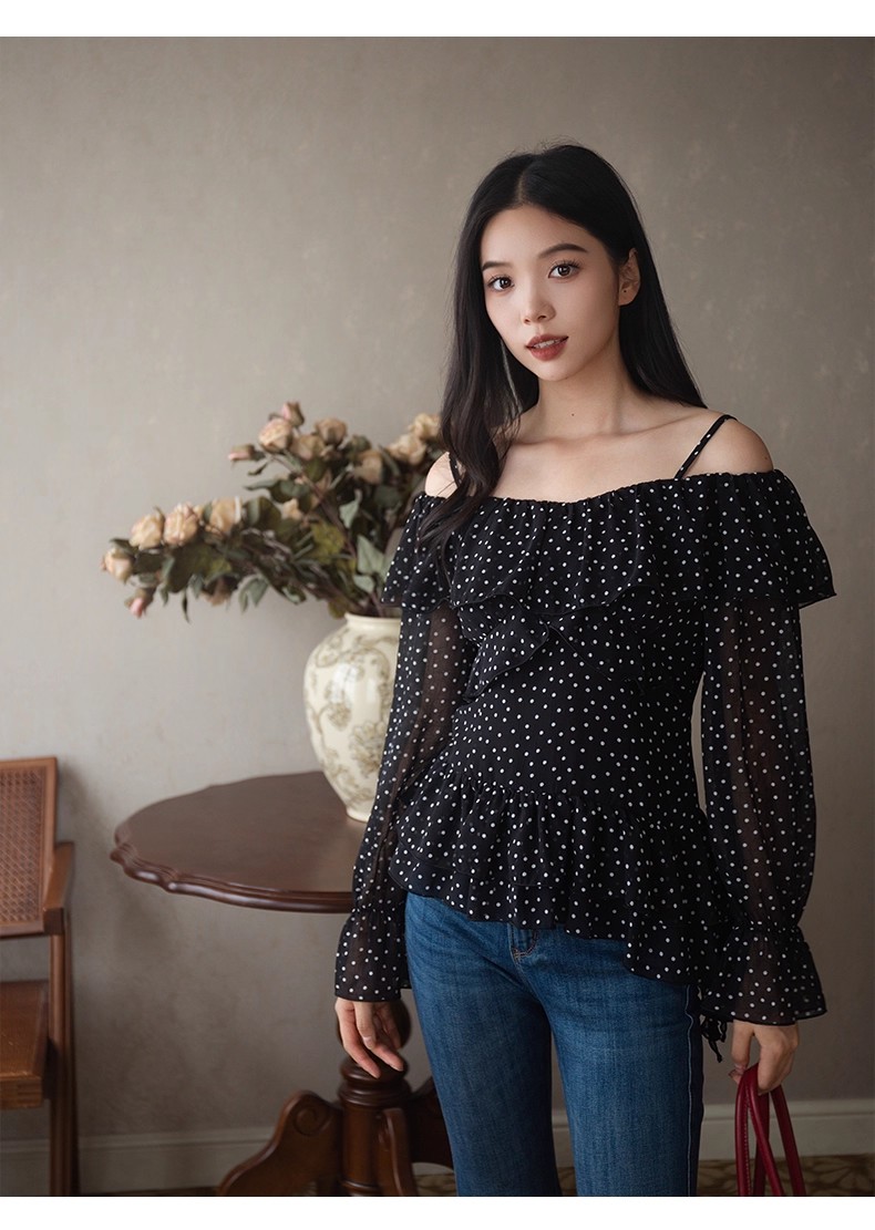 【门店同款】ENJOY秋季“谧色花颂”一字肩波点上衣 164344125