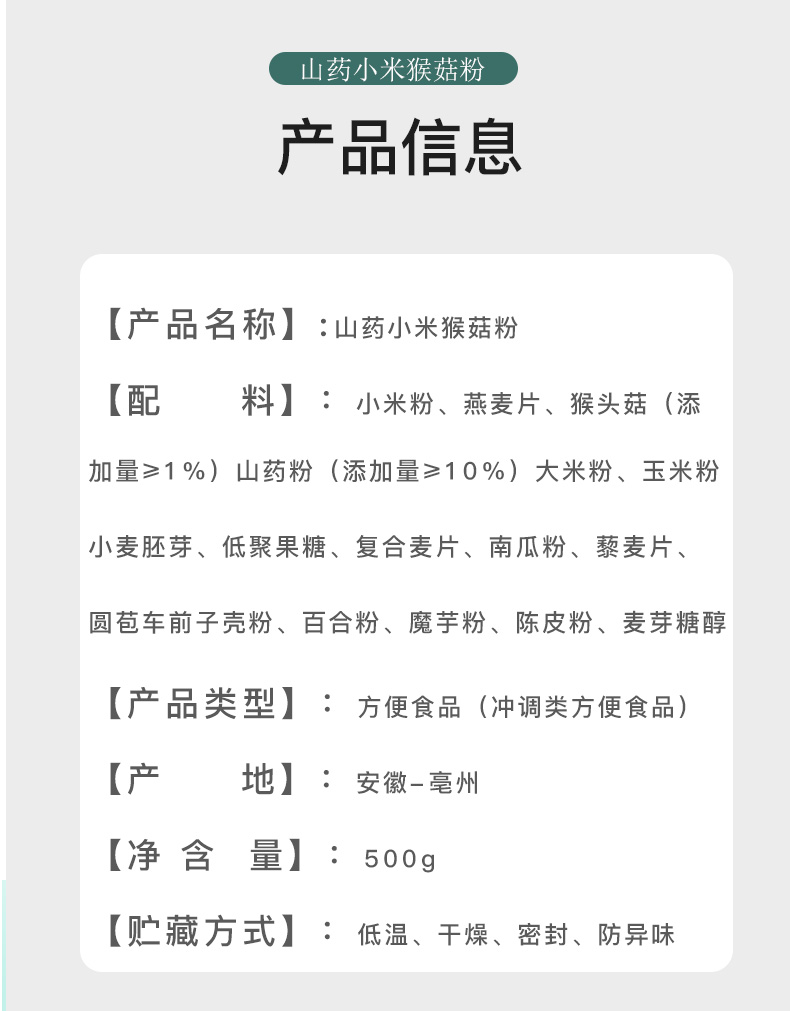 山药小米猴菇粉 冲泡即食早餐 代餐粉 罐装500g