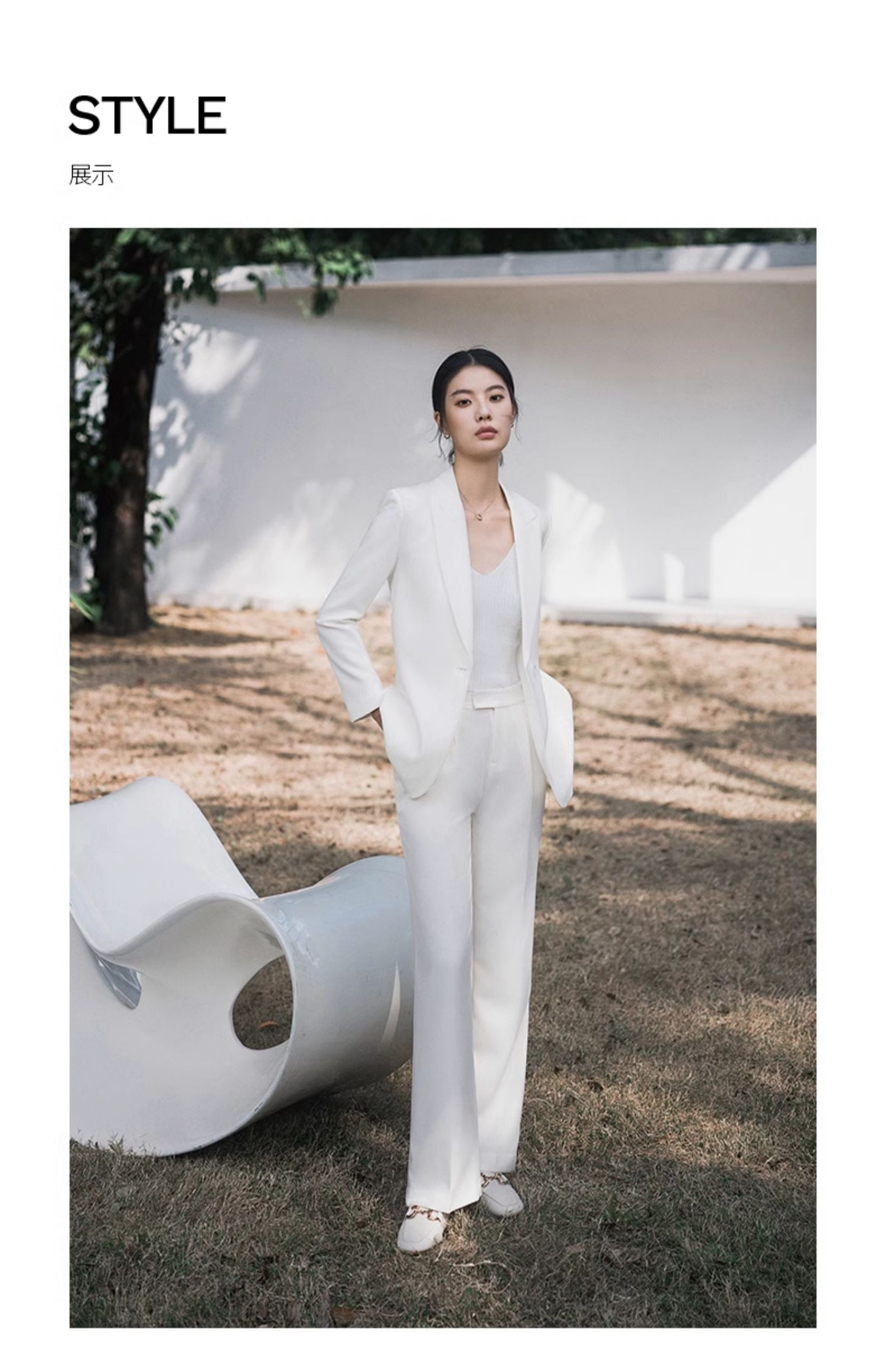 IWY/早春白色西装套装女宽敞西服宽松韩版主持人高级医美正式场合服装C13515+P33515