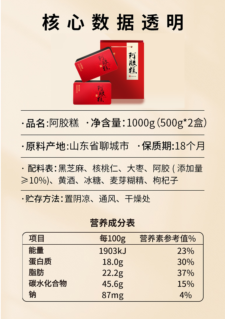 心选丨正兴同济堂阿胶糕礼盒500克*2盒/袋(阿胶≥10%)到手2斤送礼袋