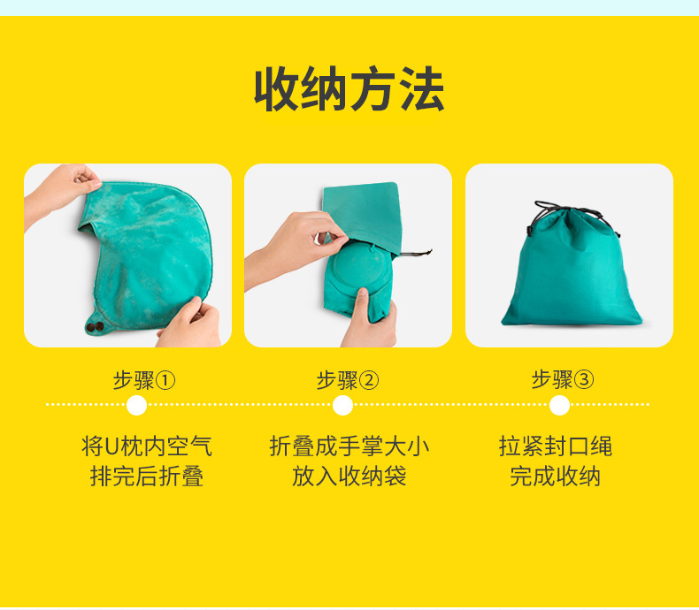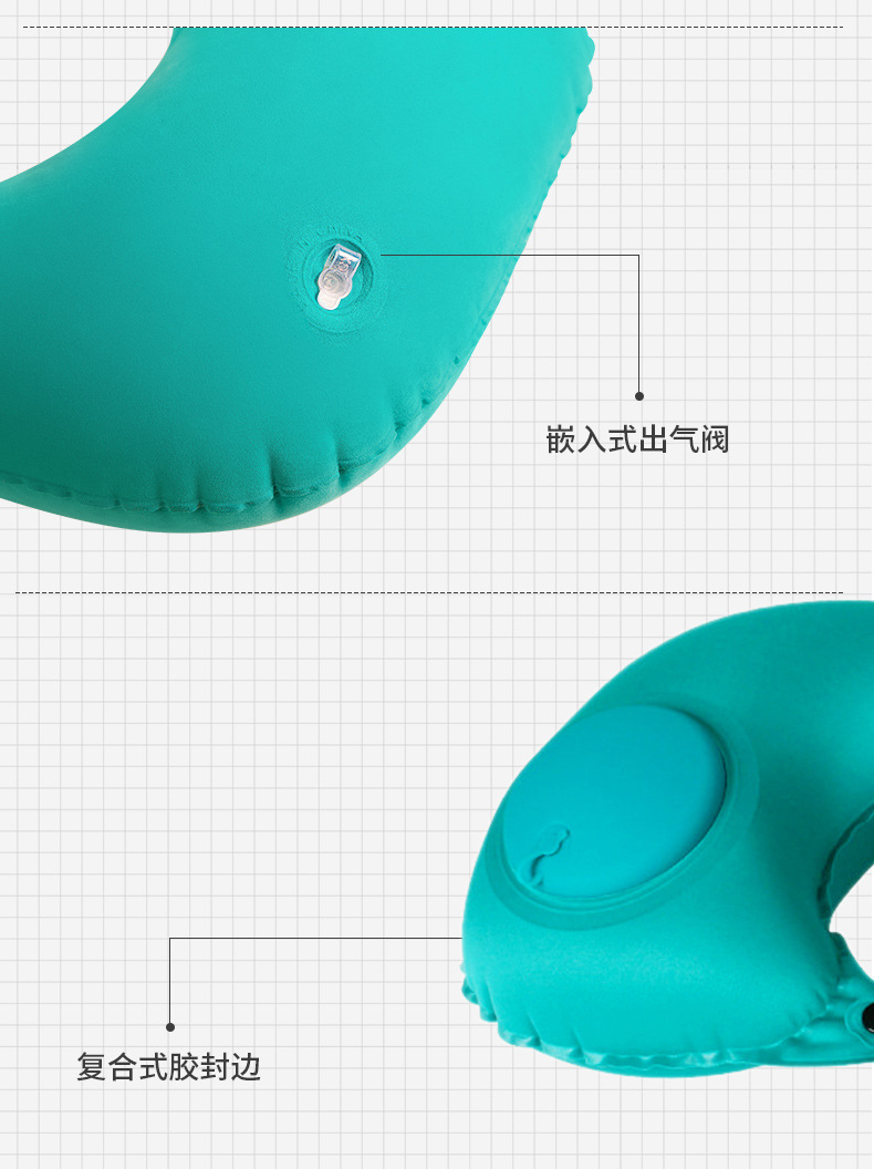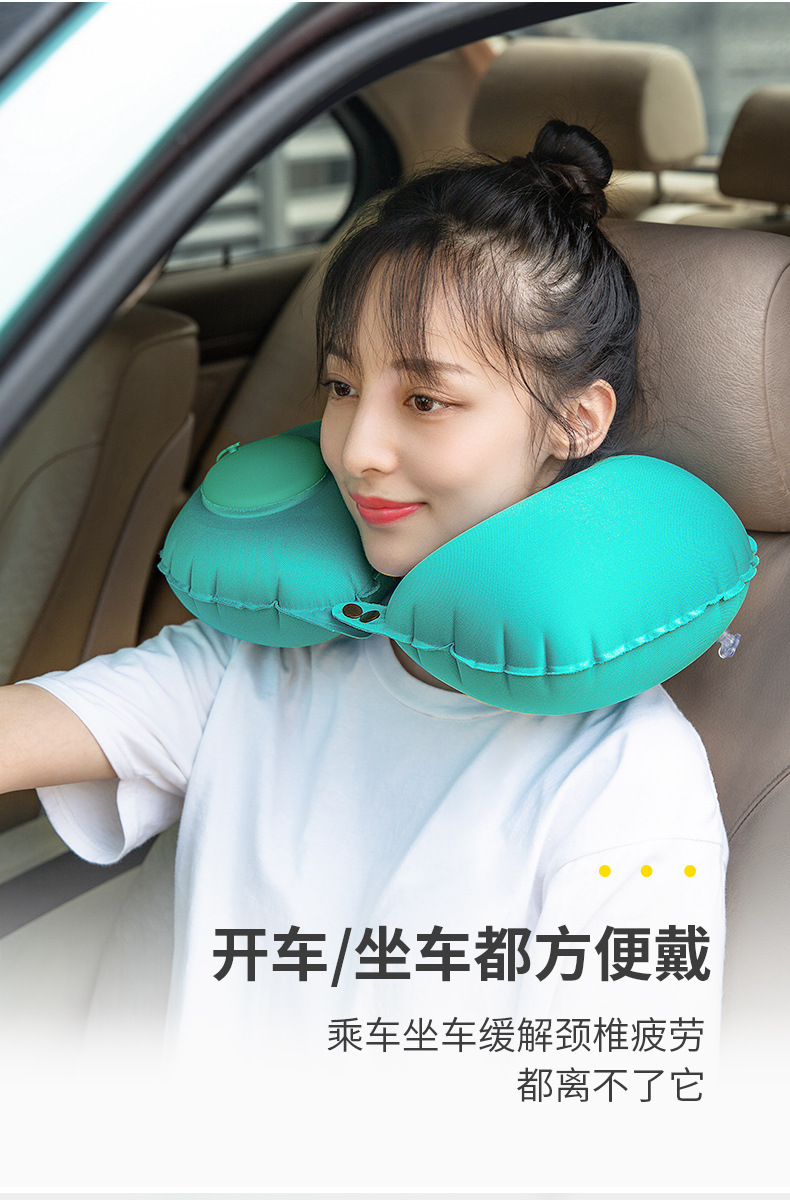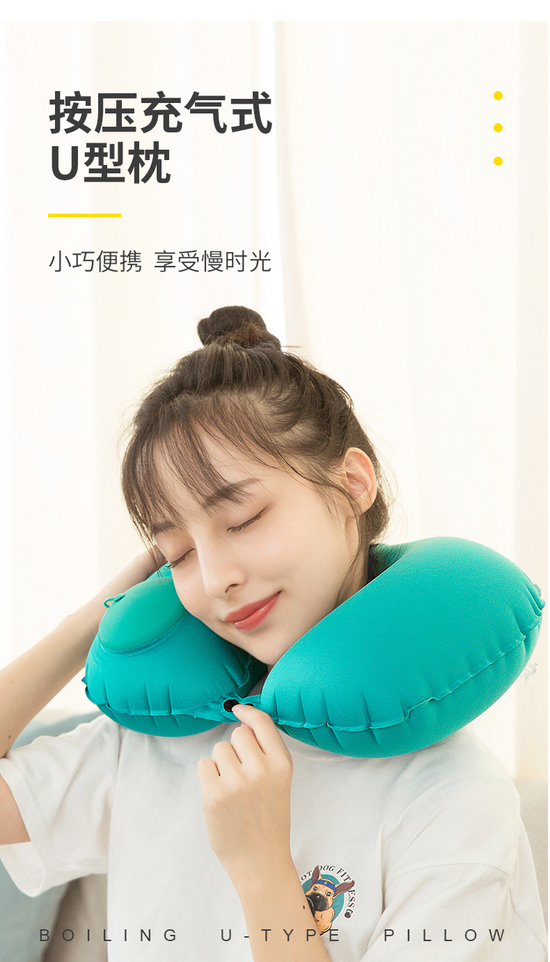 【夏季出行必备,凉感舒适】按压式牛奶丝充气U型枕 便携飞机旅行护颈枕 旅游u形枕头 送收纳袋+彩盒