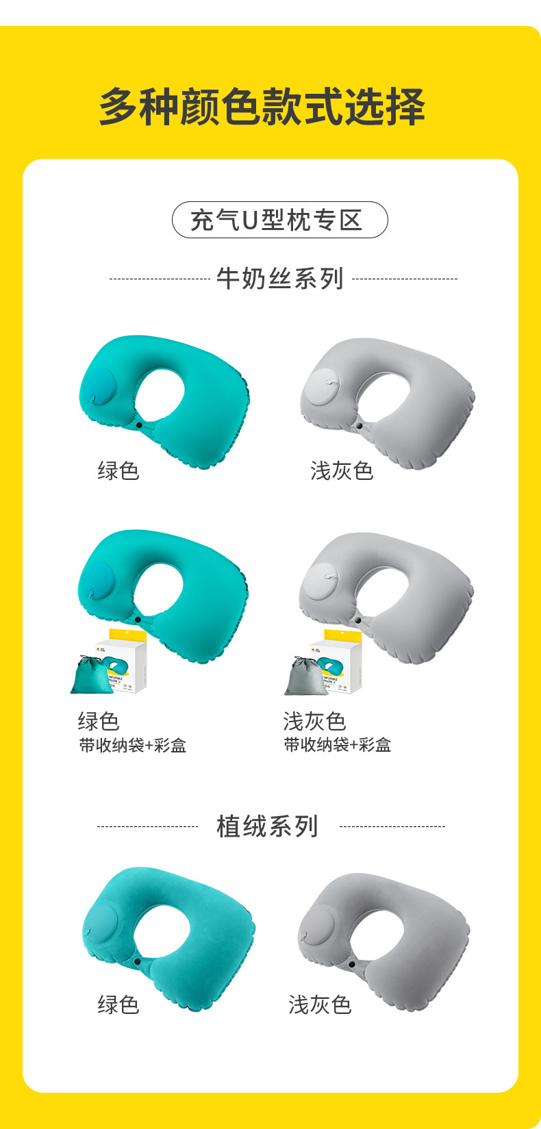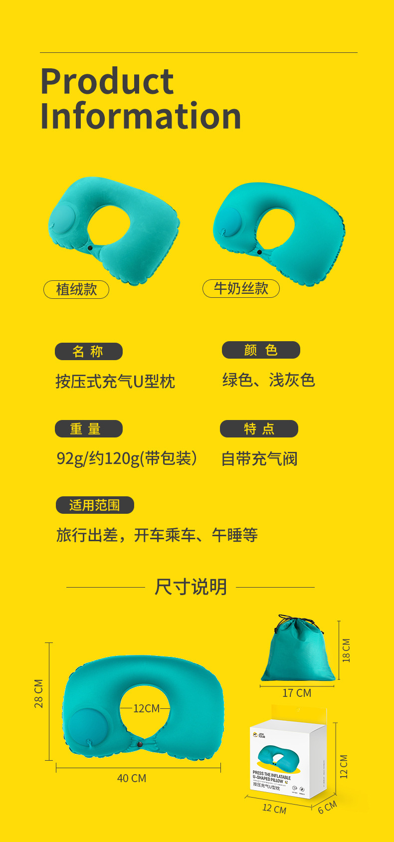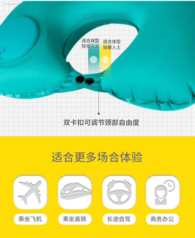 【夏季出行必备,凉感舒适】按压式牛奶丝充气U型枕 便携飞机旅行护颈枕 旅游u形枕头 送收纳袋+彩盒