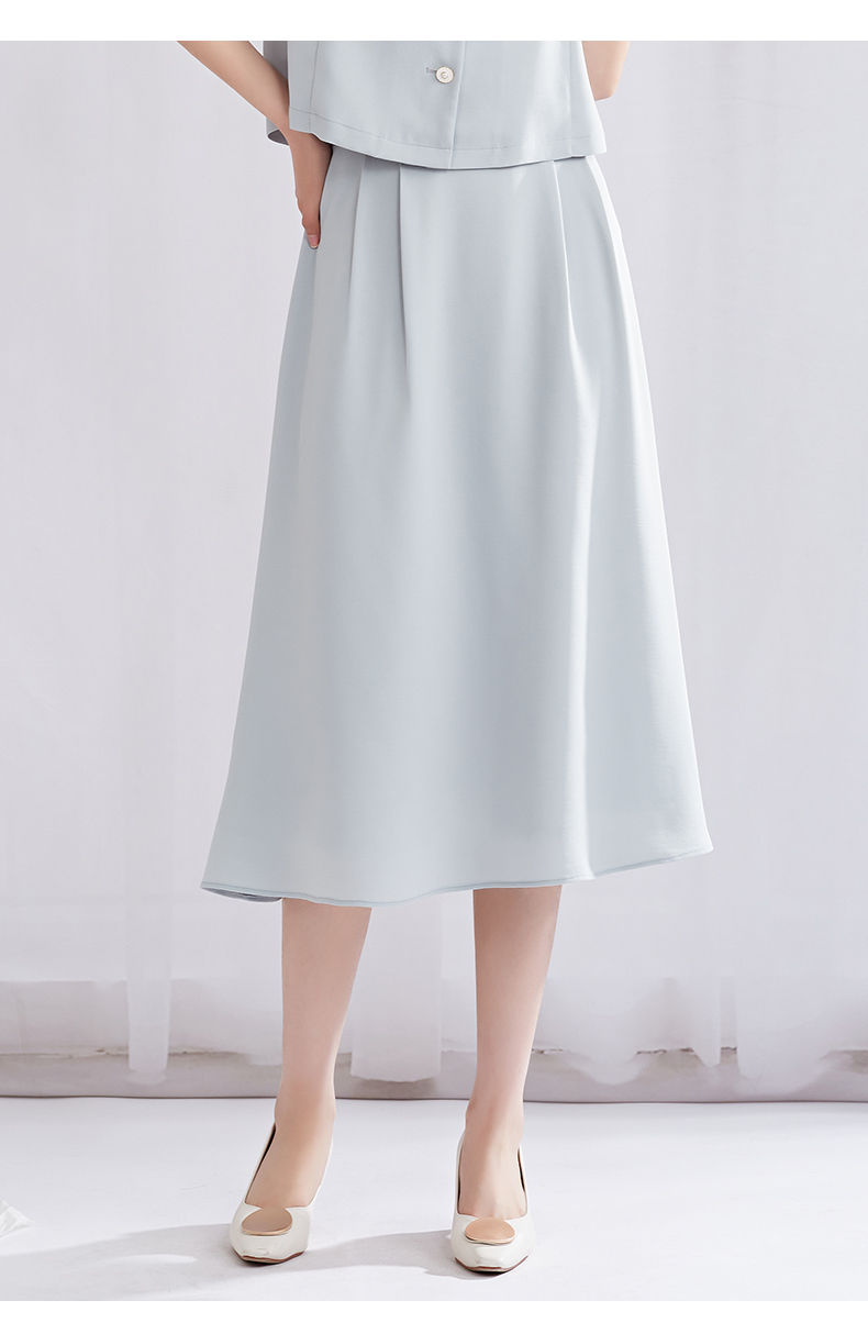【特价款不退不换】阿菁娜复古维多利亚蓝A字廓形半裙A27X113031