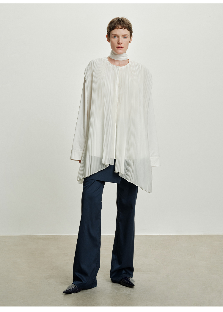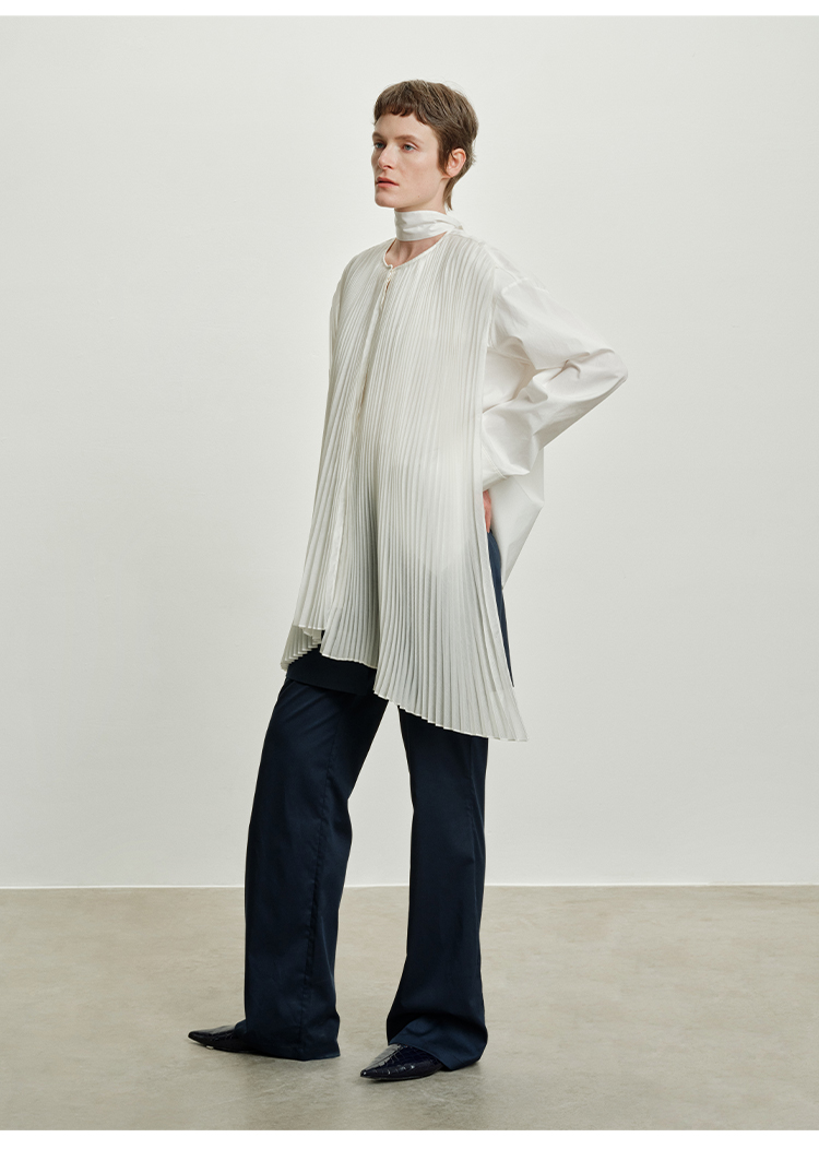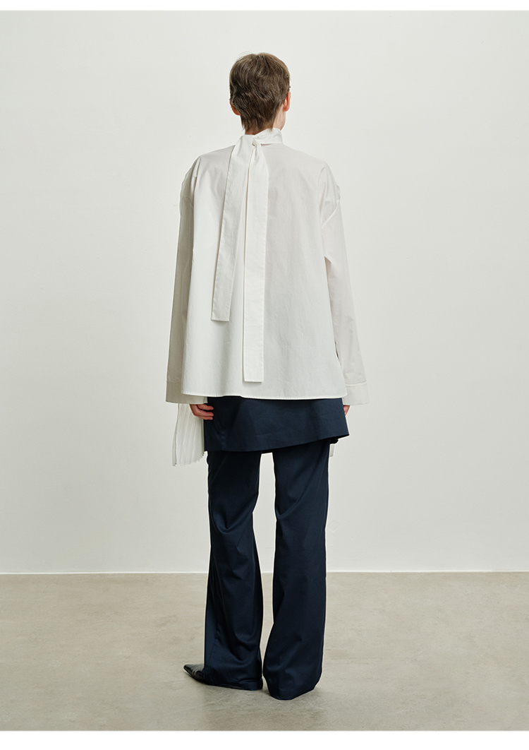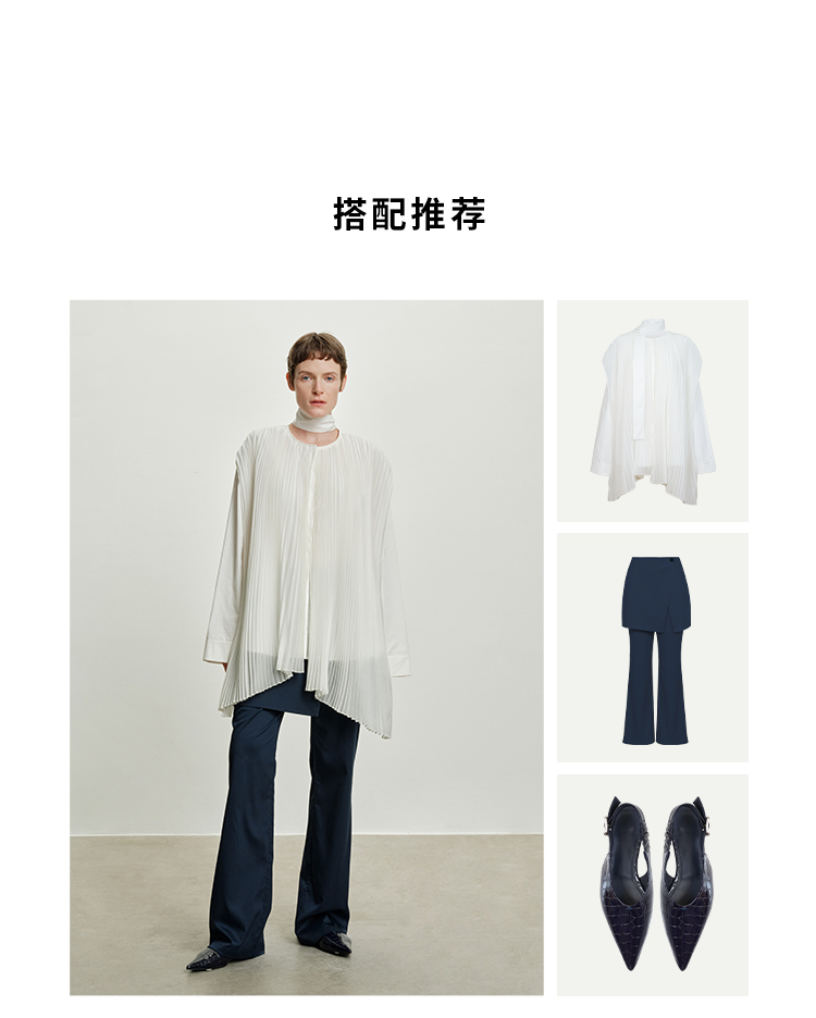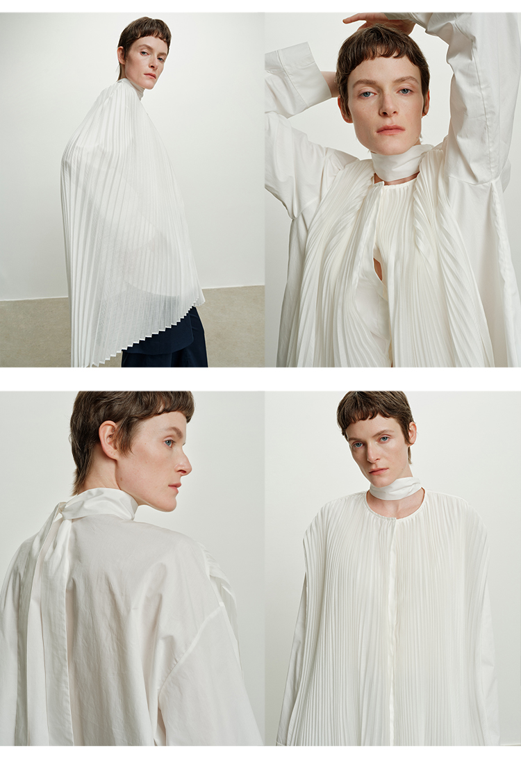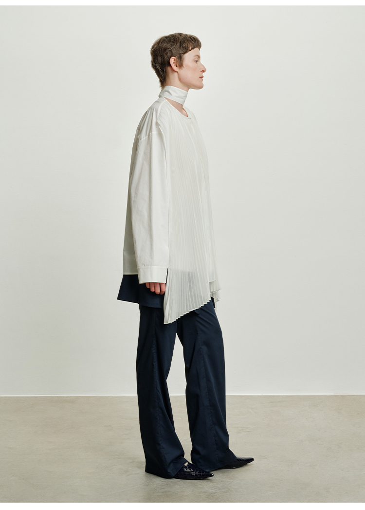 HIDEMI 极简多层设计感风琴压褶可拆卸分体丝巾式拼接廓形衬衫