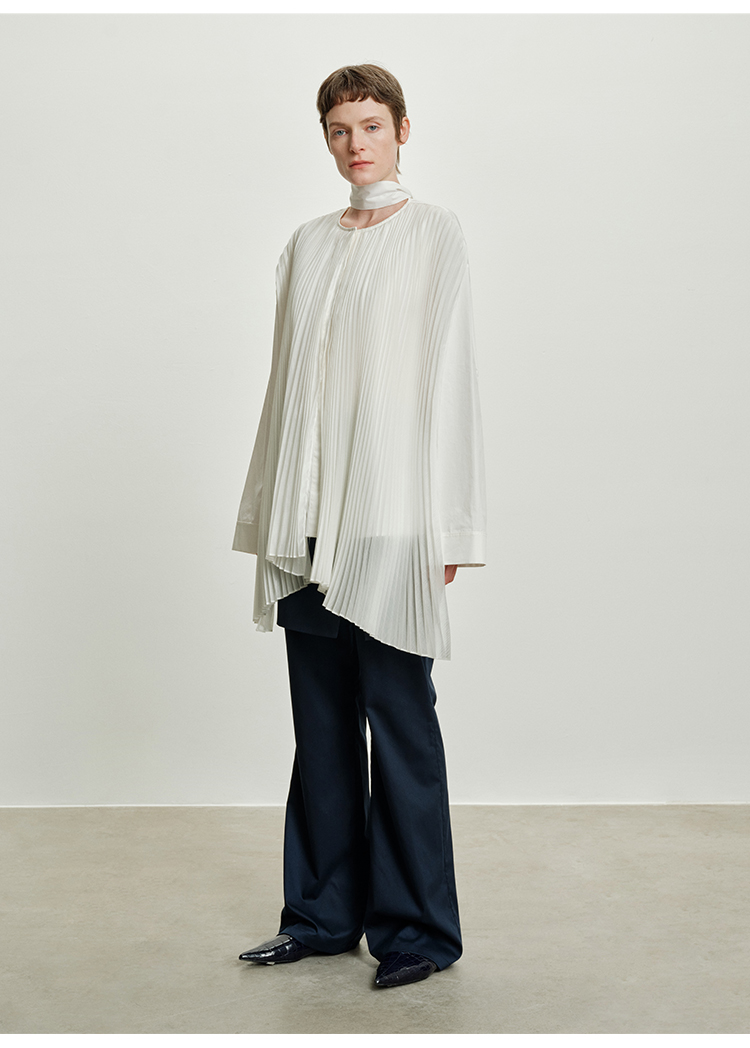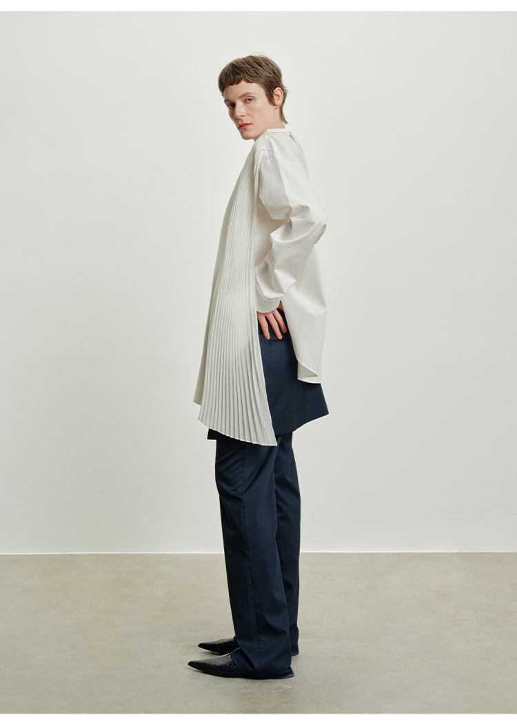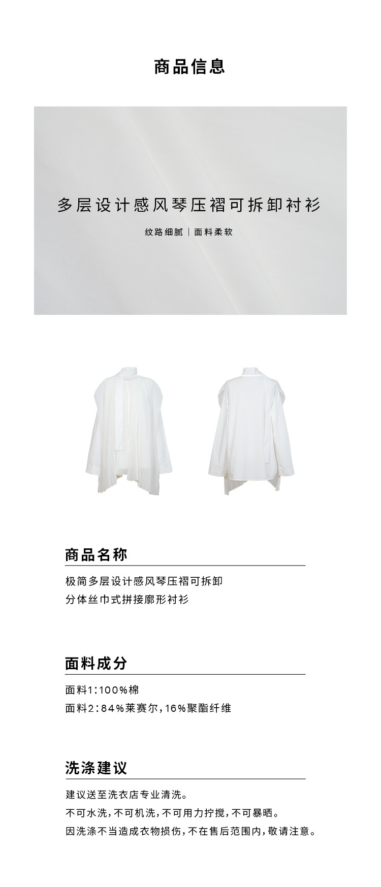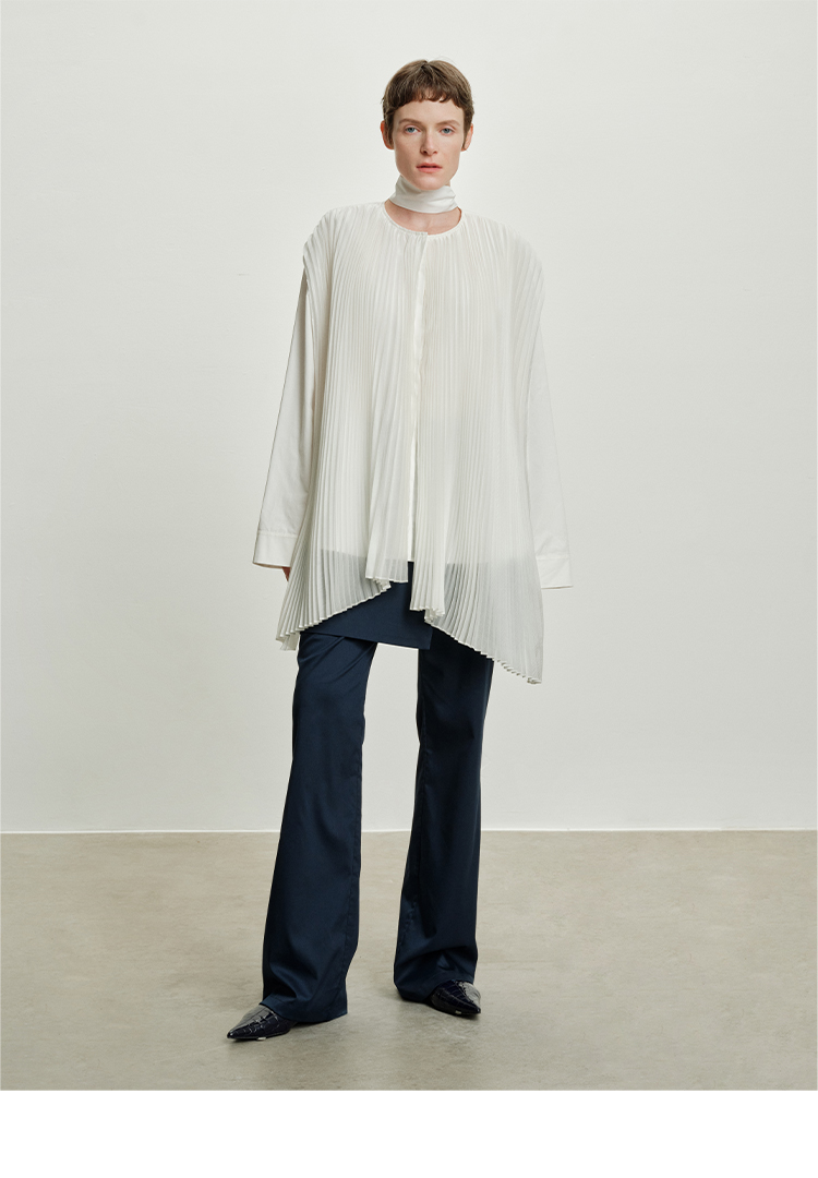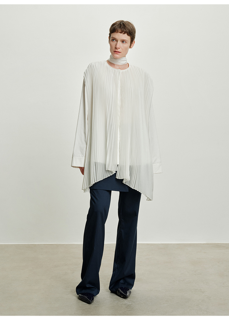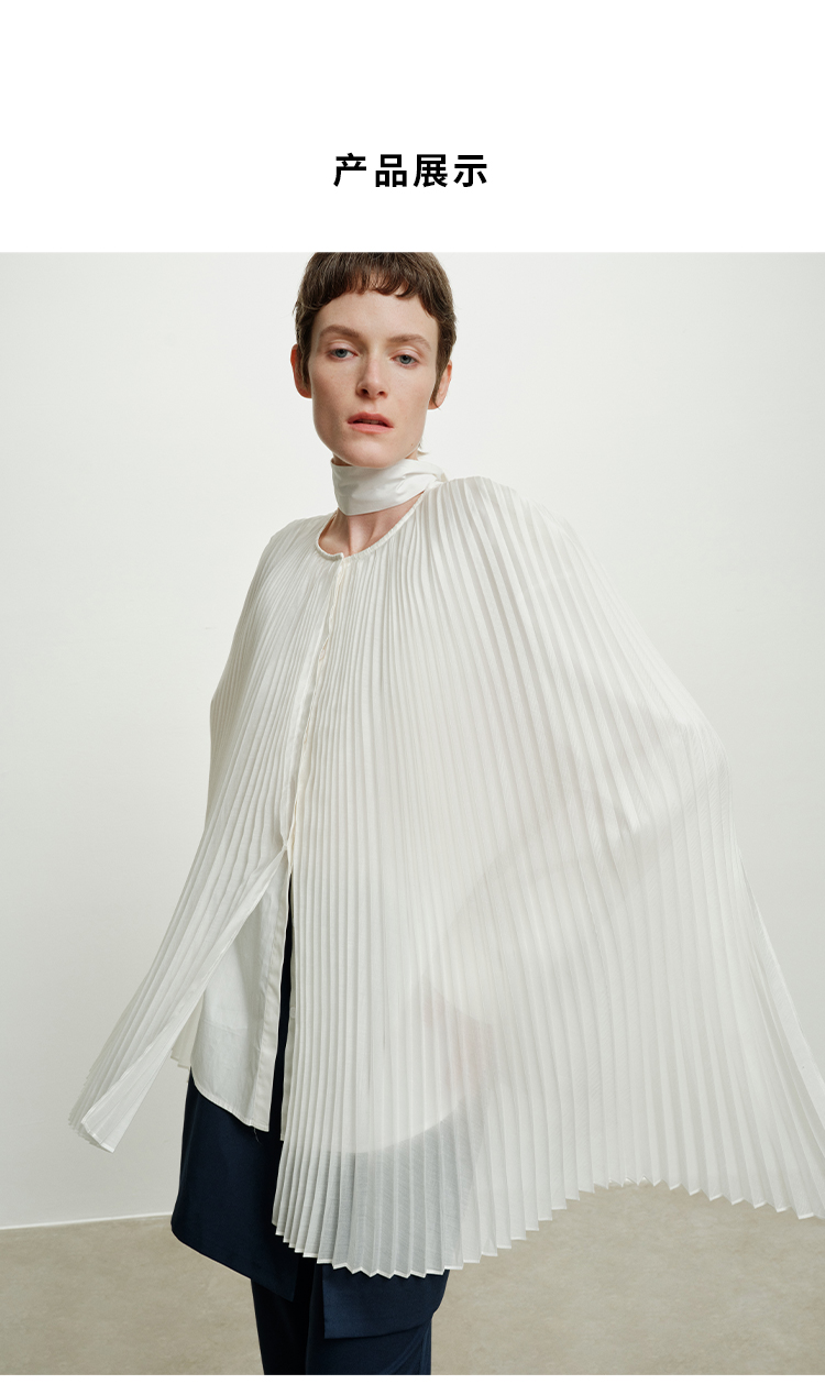 HIDEMI 极简多层设计感风琴压褶可拆卸分体丝巾式拼接廓形衬衫