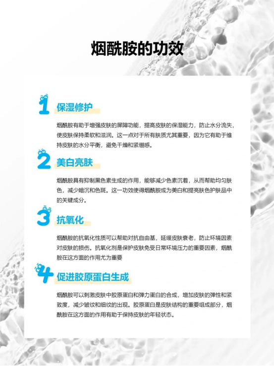 🔶成分中含有的烟酰胺 真真是美白的好东西😏 减少黑色素细胞生成 达到美白的作用, 也有一定的加快角质层代谢和抗衰老的作用 还可以修复受损的角质层脂质屏障,提高皮肤抵抗力❗