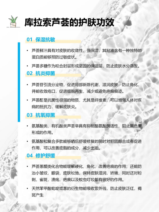 🔶成分中的库拉索芦荟(ALOE BARBADENSIS)叶水 能够抑制和清除自由基 还能对弹性蛋白酶有抑制能力 并对纤维蛋白增长和合成胶原蛋白有很好的促进作用✨ 它还能促进胆甾醇的合成能力,可以减少油光满面 让肌肤更加柔润的作用 同时还具有抗菌消炎和保湿的作用👍🏻