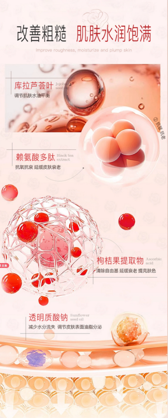 🔶突厥蔷薇成分对于皮肤的保湿效果是非常有效的 它可以增加皮肤中的水分,使皮肤含水量很大提升 还对皮肤有杀菌和美白的作用🥰 还可用于修复断裂的毛细管,缓解炎症和皮肤发红