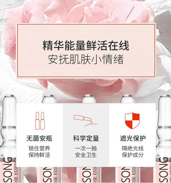 有了这款【DRMZSONG保加利亚玫瑰精华液】 院线护肤项目瞬间不香了 效果体验到了🥰 钱也省下来了 拿着省下来的钱买衣服、买包包😎 女孩子就是要全方位都美美哒🌈 送妈妈送长辈也超合适哒 【温馨提示】产品成分安全,有舒缓功效,正常是不会过敏的,如出现过敏情况需要看一下是否使用了其他产品,或者本身对玫瑰等主要成分有过敏情况,也可以在耳后或小臂内侧涂抹本品,测试是否对本品有过敏反应。