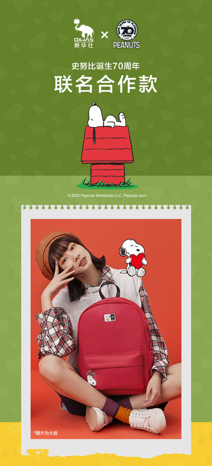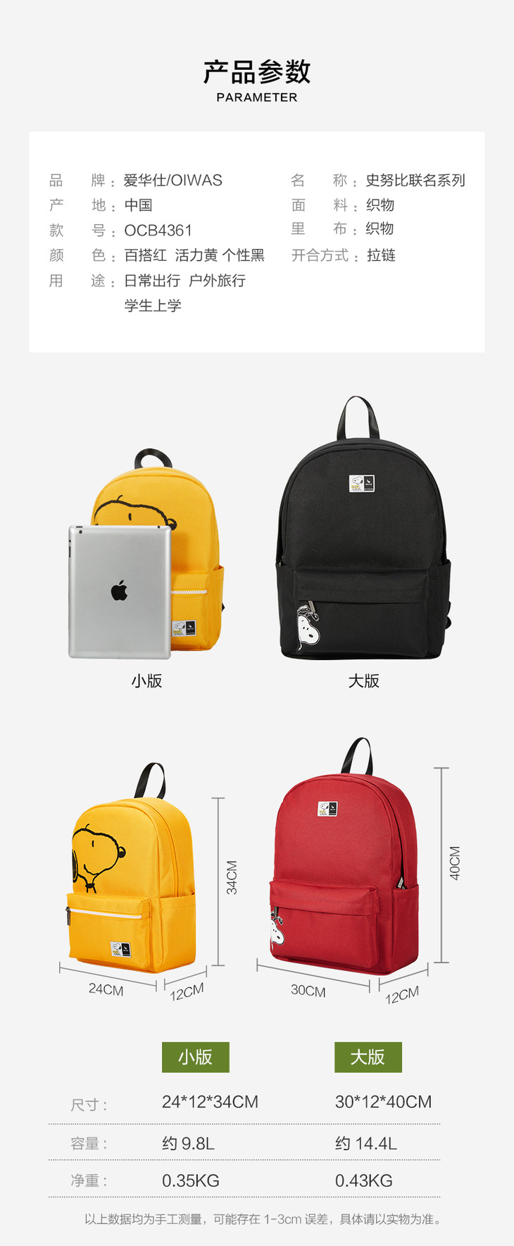 爱华仕 史努比双肩包女休闲简约百搭背包彩色英寸电脑包IPAD包包 多款式可选