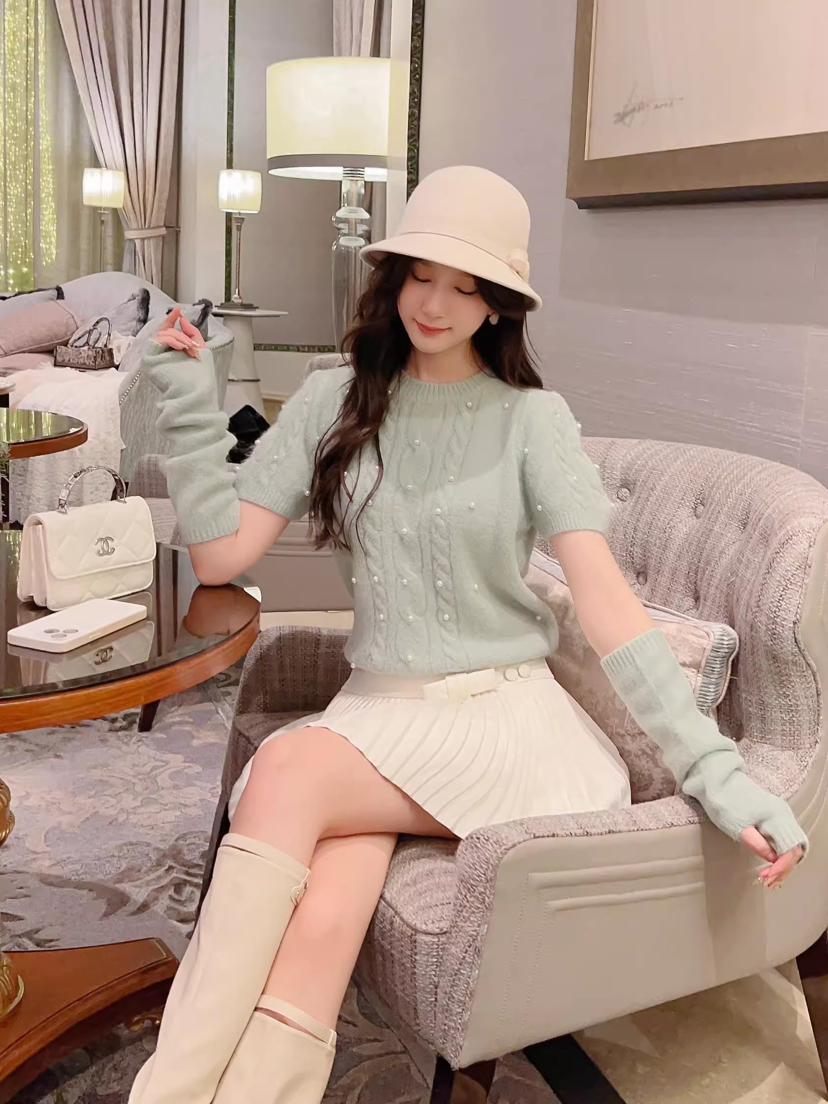 张心子【珍珠少女】少女感显白显瘦针织毛衣 U2401001