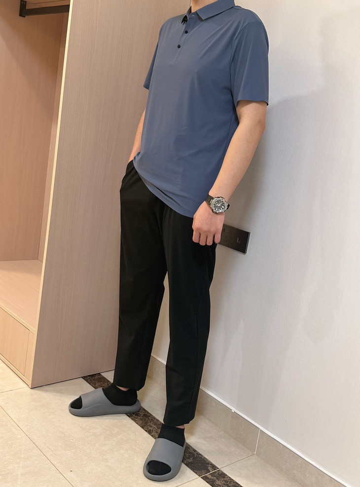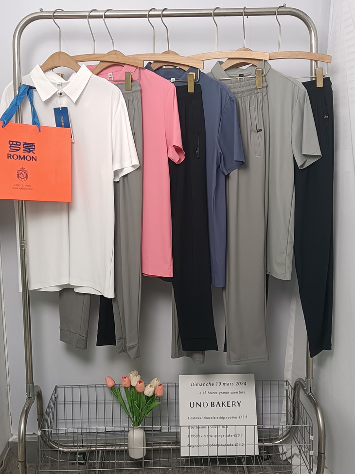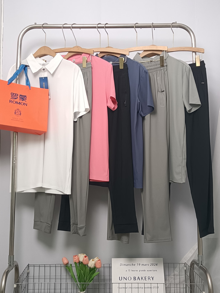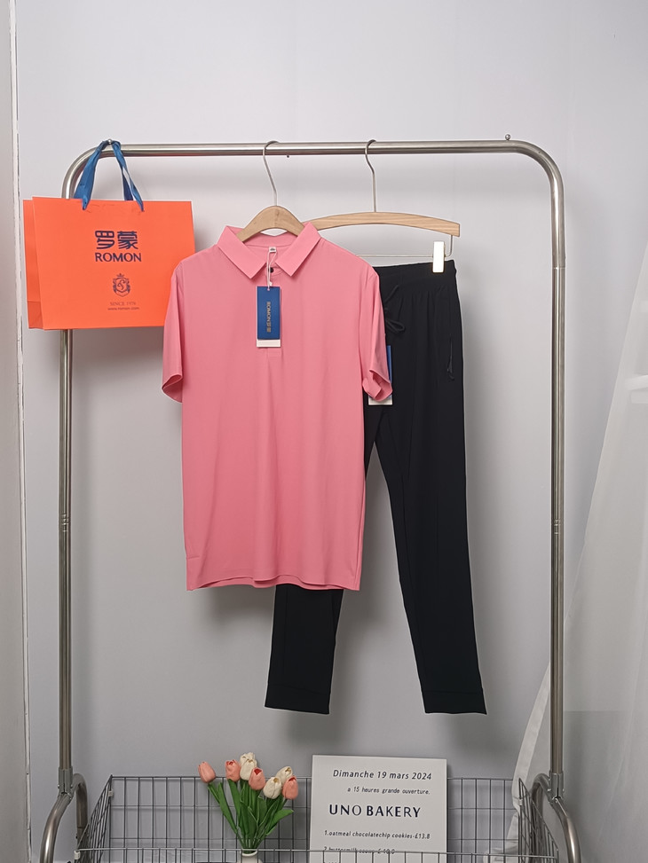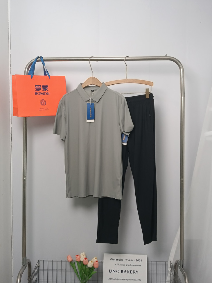 送老公、老爸的一定选穿着得体舒适的 这套档次很高,简约又舒服! 咱们卖的是正品罗蒙❗ 品质性价比都是极高的,轻奢感满满~ 若在线下门店购买,光一件polo都得这价格 📣上衣八色,裤子两色,分束脚和直筒两种脚口 最经典又百搭的颜色,主打沉稳高级风 ✅Polo:白色,海棠红,雾霾蓝,中灰,灰蓝,黑色,孔雀蓝,深灰 ✅裤子:黑色-束脚,灰色-束脚,黑色-直筒,灰色-直筒 ✅尺码M-5XL,最大可以穿到200斤 自己搭配,一套都送手提袋 把心放肚子里送 无敌了