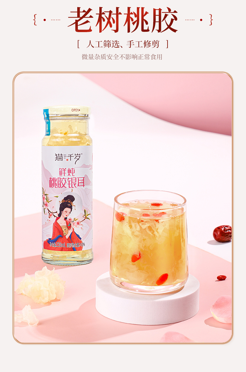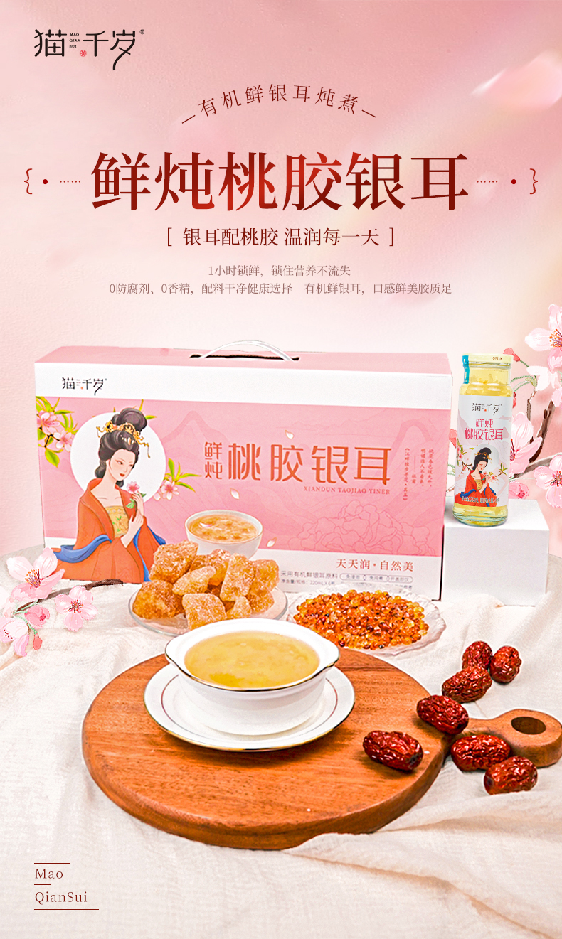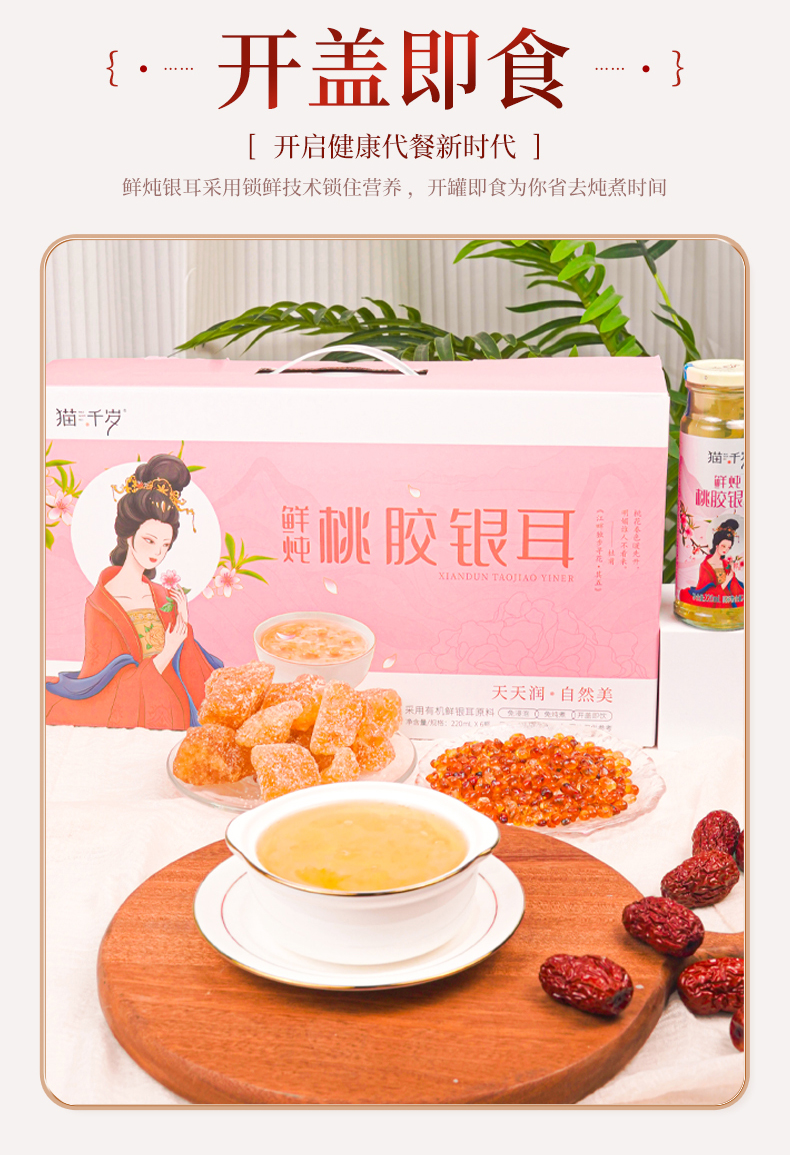 猫千岁桃胶鲜炖银耳营养早餐饮料养生健康礼盒装