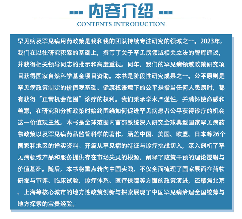 罕见病药物政策(监管科学系列)杨悦 涵盖中国、美国、欧盟、日本等26个国家和地区的详实资料 9787521456059 中国医药科技出版社