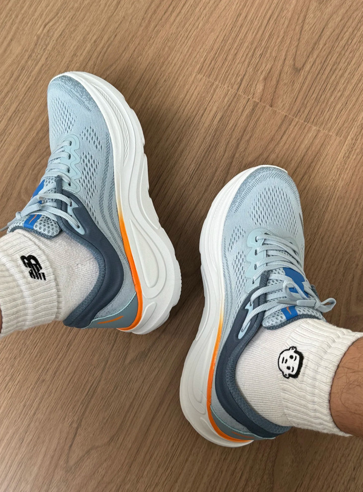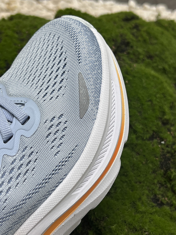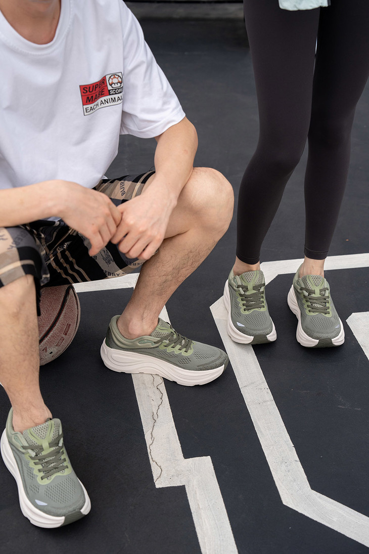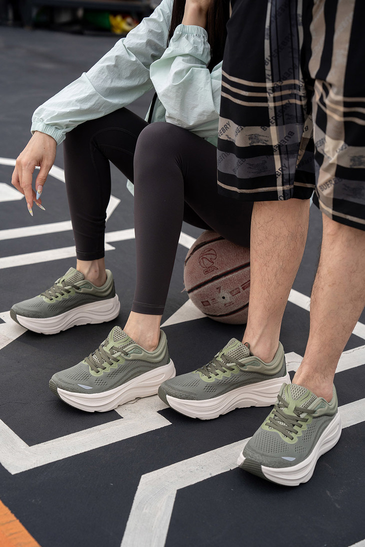 这款跑鞋进行了大升级!中底部分升级了几何结构 依托嵌入式鞋床™技术,提供了更加出色的稳定 性和支撑力,适合多种不同脚型与跑姿 全新的中底比前一代加了气垫,增强了脚底的舒适感 对于长跑爱好者来说,气垫的缓冲功能可以 减轻长时间跑步带来的脚部疲劳 ✅一共有5个颜色可选: 【香草色/ 海苔绿/蔚蓝色/星尘灰/黑色】 男女款36~45码,不分年龄,全家都能穿 ✅真正的轻量化跑鞋,37码仅200g