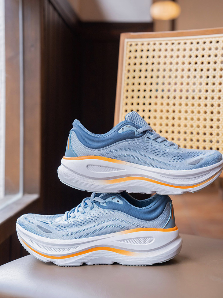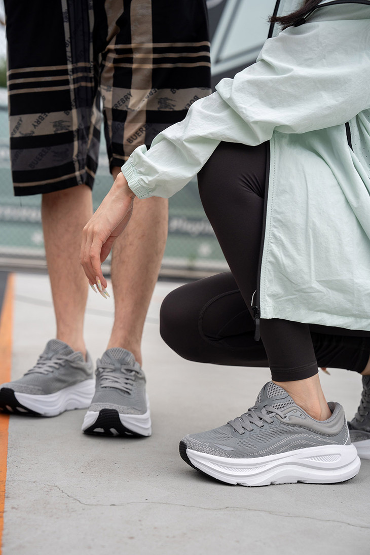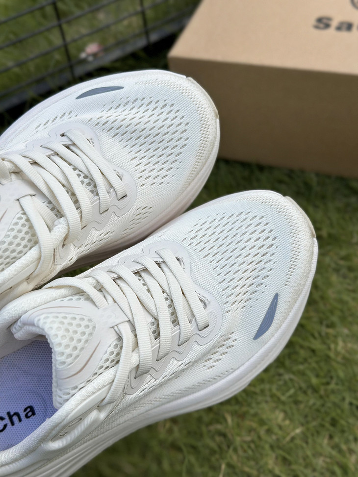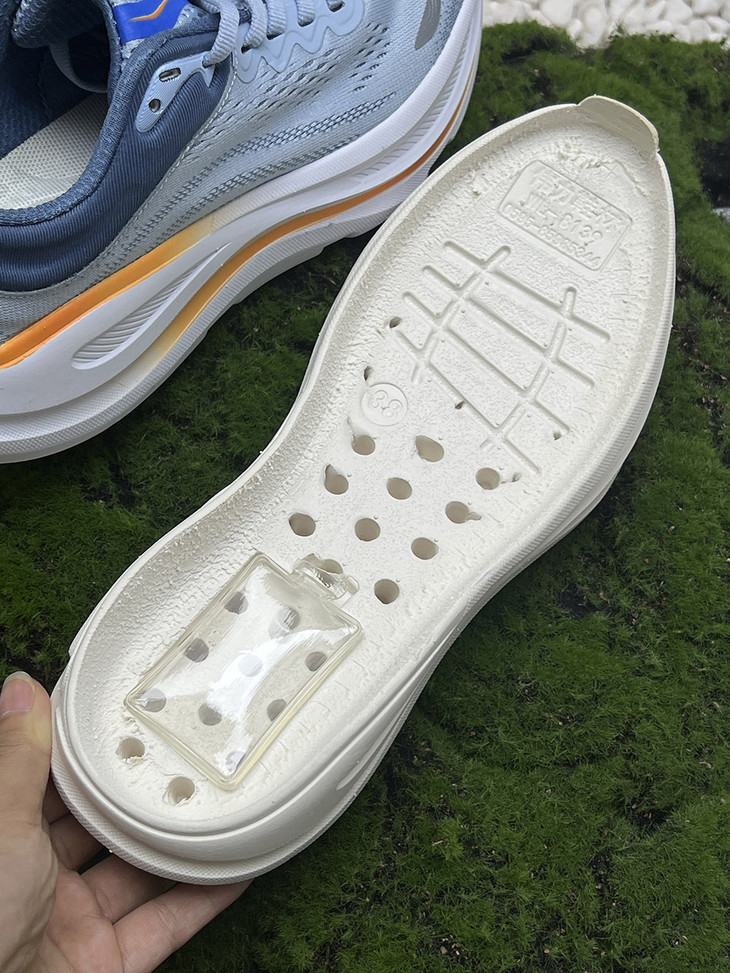 拿到手第一感觉就是轻 完全没有厚底跑鞋的笨重感,37码仅200g 真正的轻量化跑鞋,上脚才知道多么舒服 特定的贾卡面料,不仅保证透气性,更适合宽胖脚 面料有伸缩性!宽脚再也不用发愁买不到好鞋! 经久耐磨 更加持透气性!出汗不臭脚!