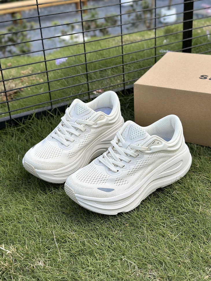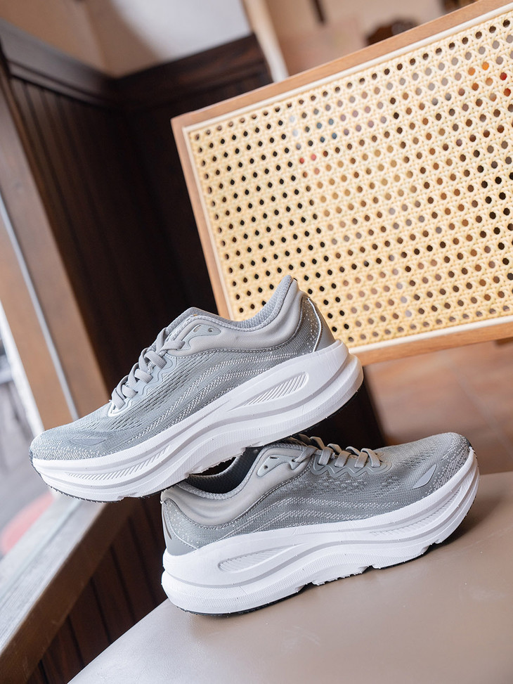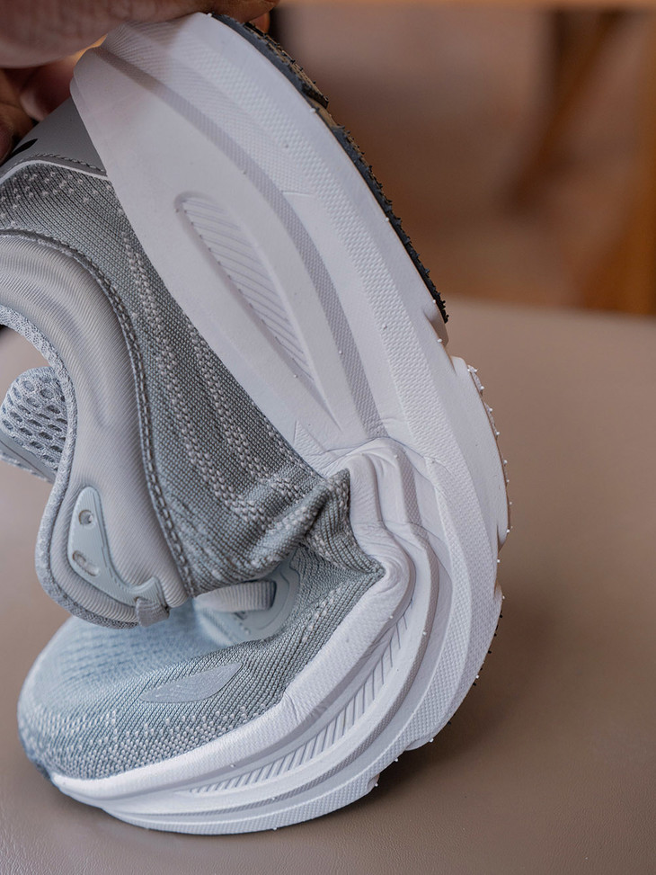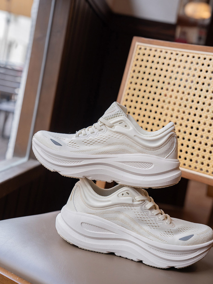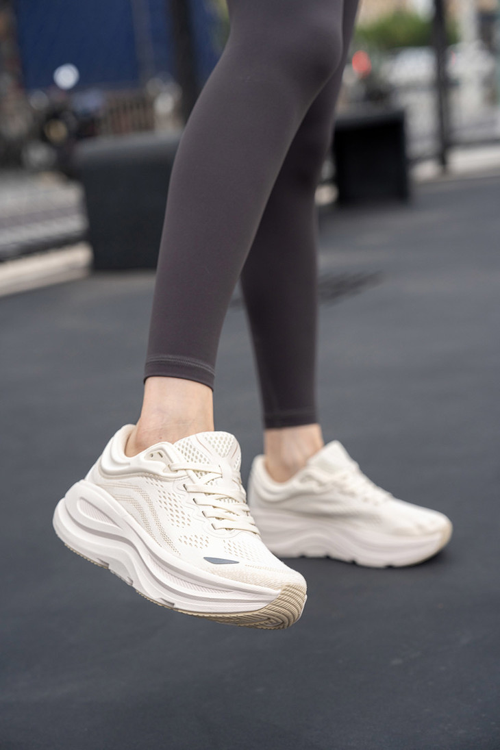 拿到手第一感觉就是轻 完全没有厚底跑鞋的笨重感,37码仅200g 真正的轻量化跑鞋,上脚才知道多么舒服 特定的贾卡面料,不仅保证透气性,更适合宽胖脚 面料有伸缩性!宽脚再也不用发愁买不到好鞋! 经久耐磨 更加持透气性!出汗不臭脚!