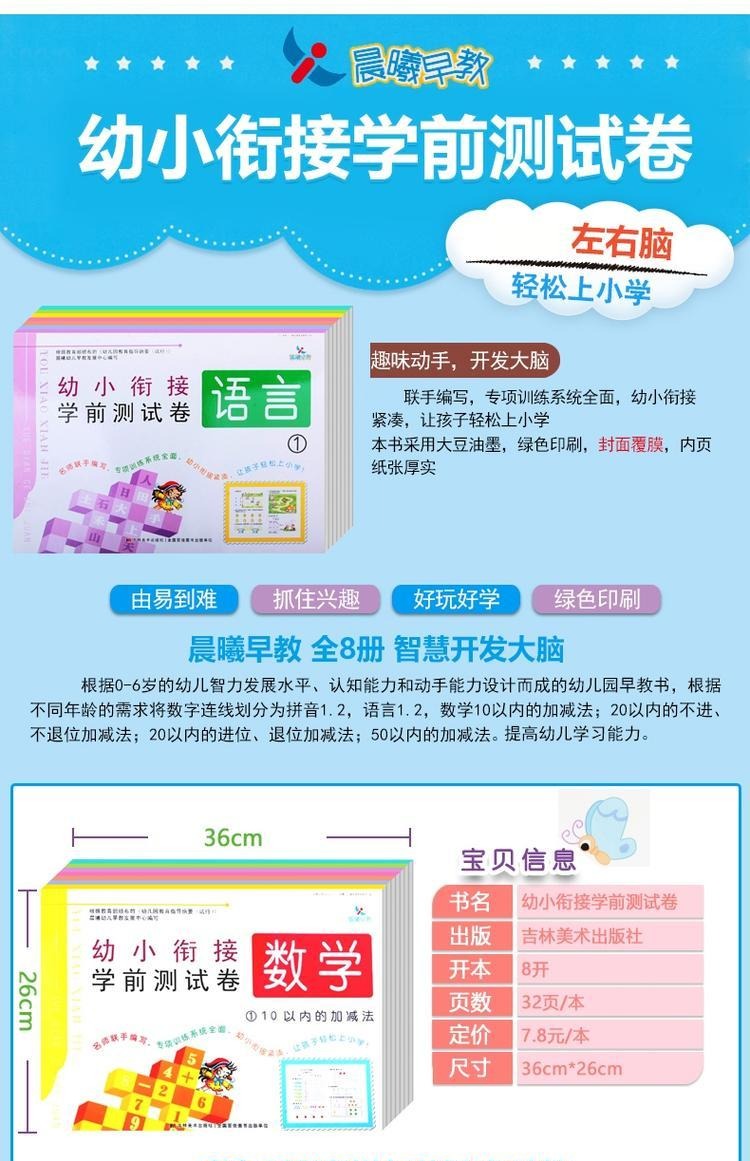 全套8册学前班试卷测试卷3-6岁幼小衔接大班升一年级一日一练幼儿园教材数学拼音 入学前准备幼升小综合暑假昨业作业升小学练习册