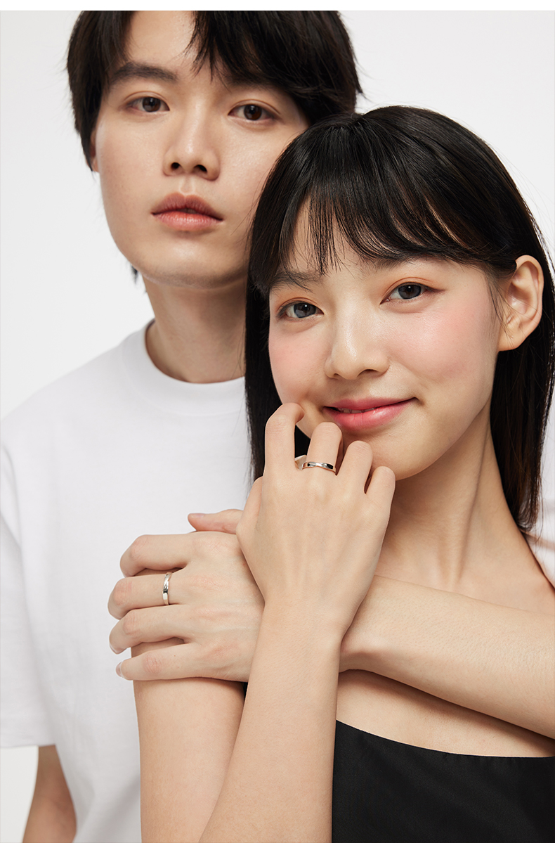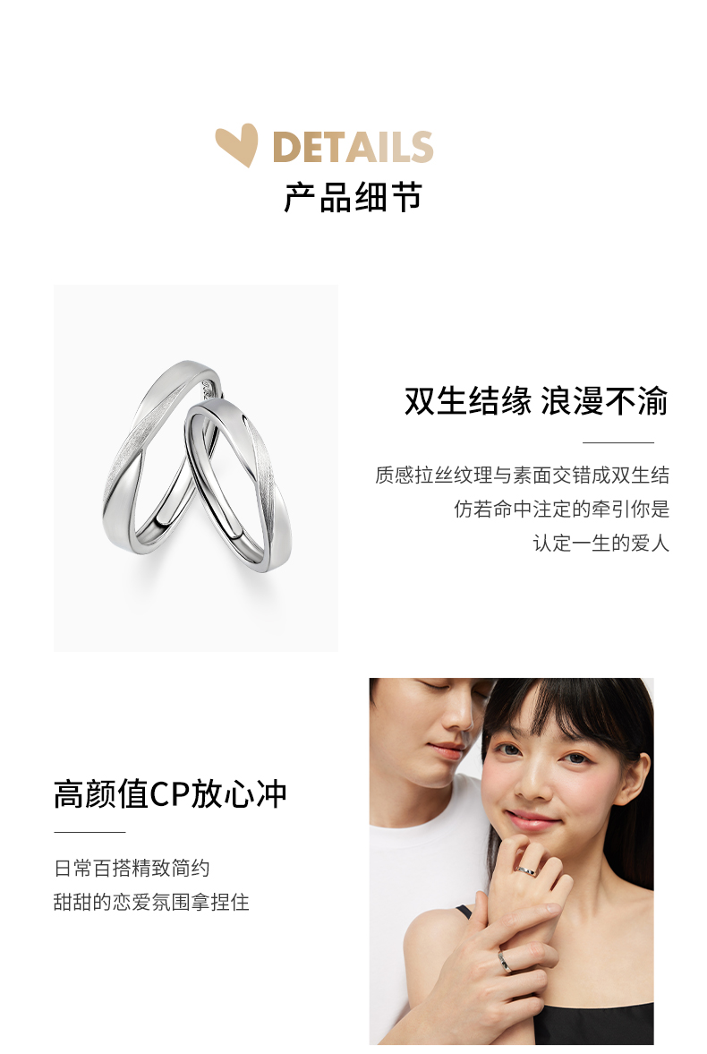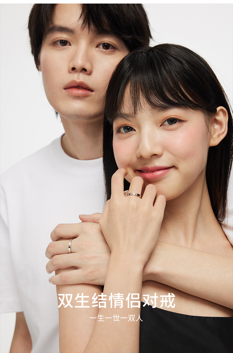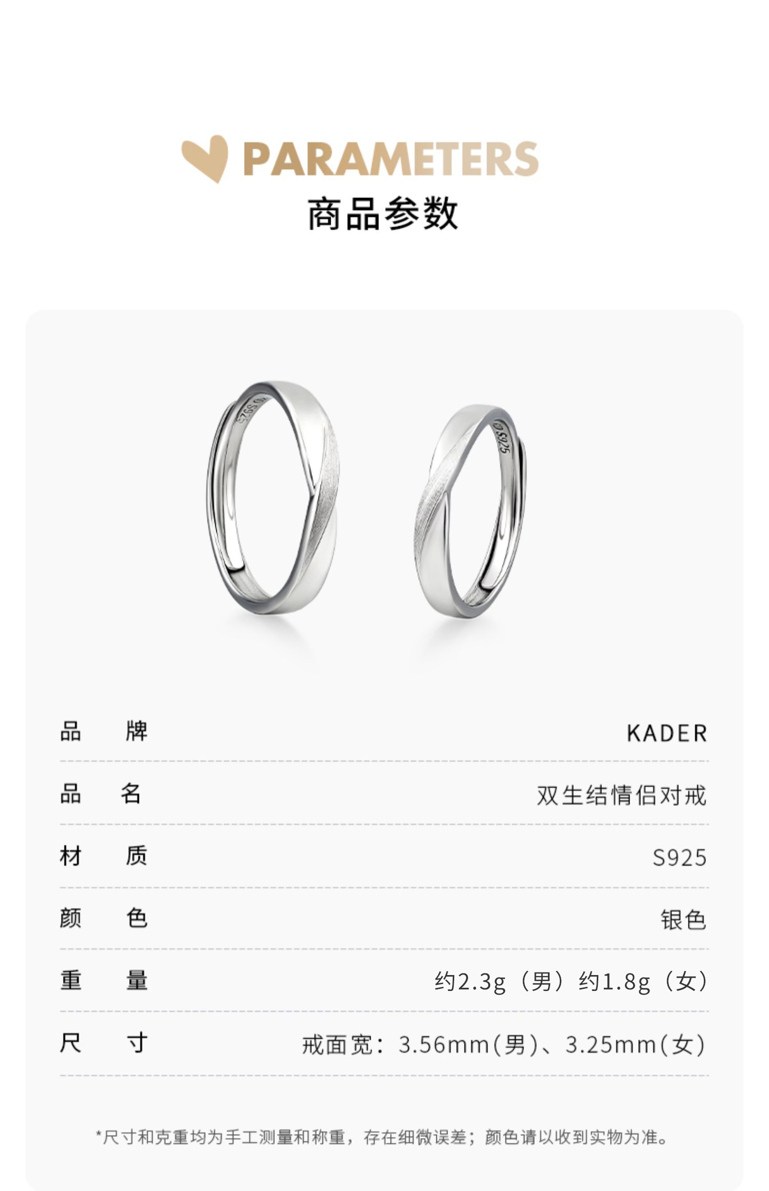KADER卡蒂罗 双生结情侣对戒 (支持刻字)S925银素圈 戒指一对开口可调节 男女同款情侣款 送礼 礼盒款