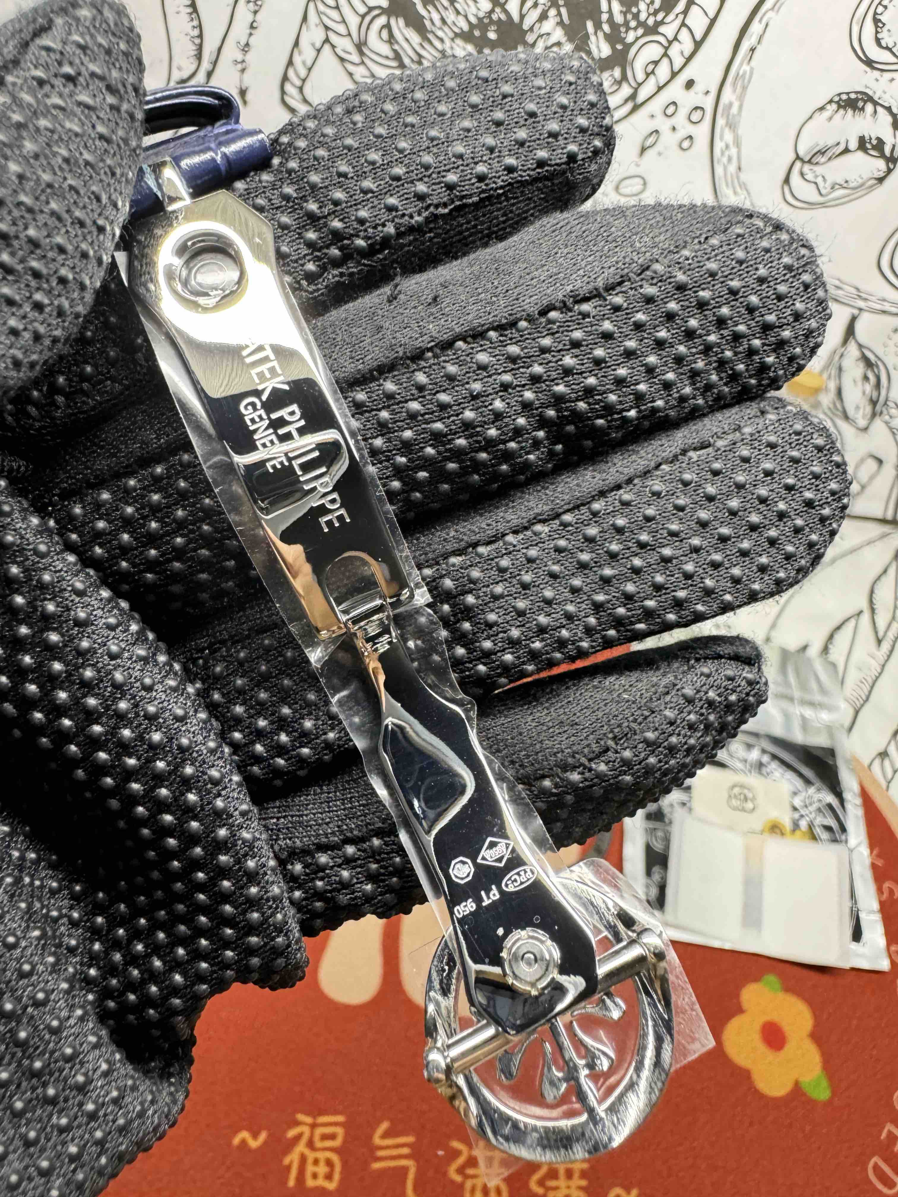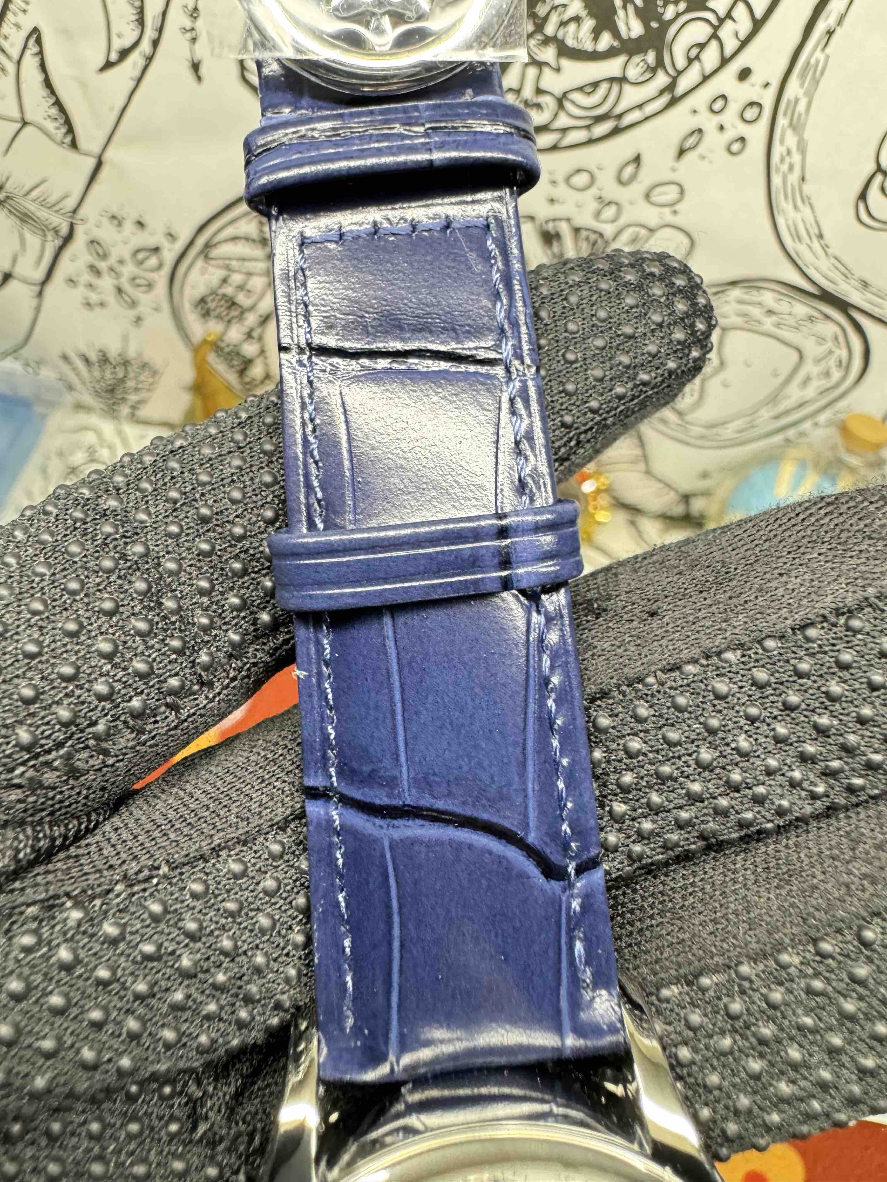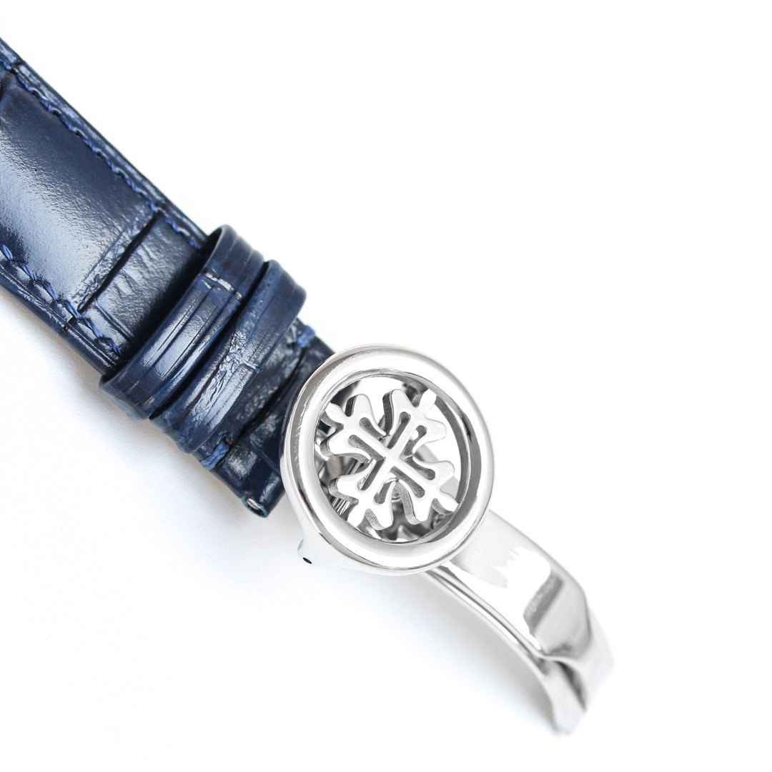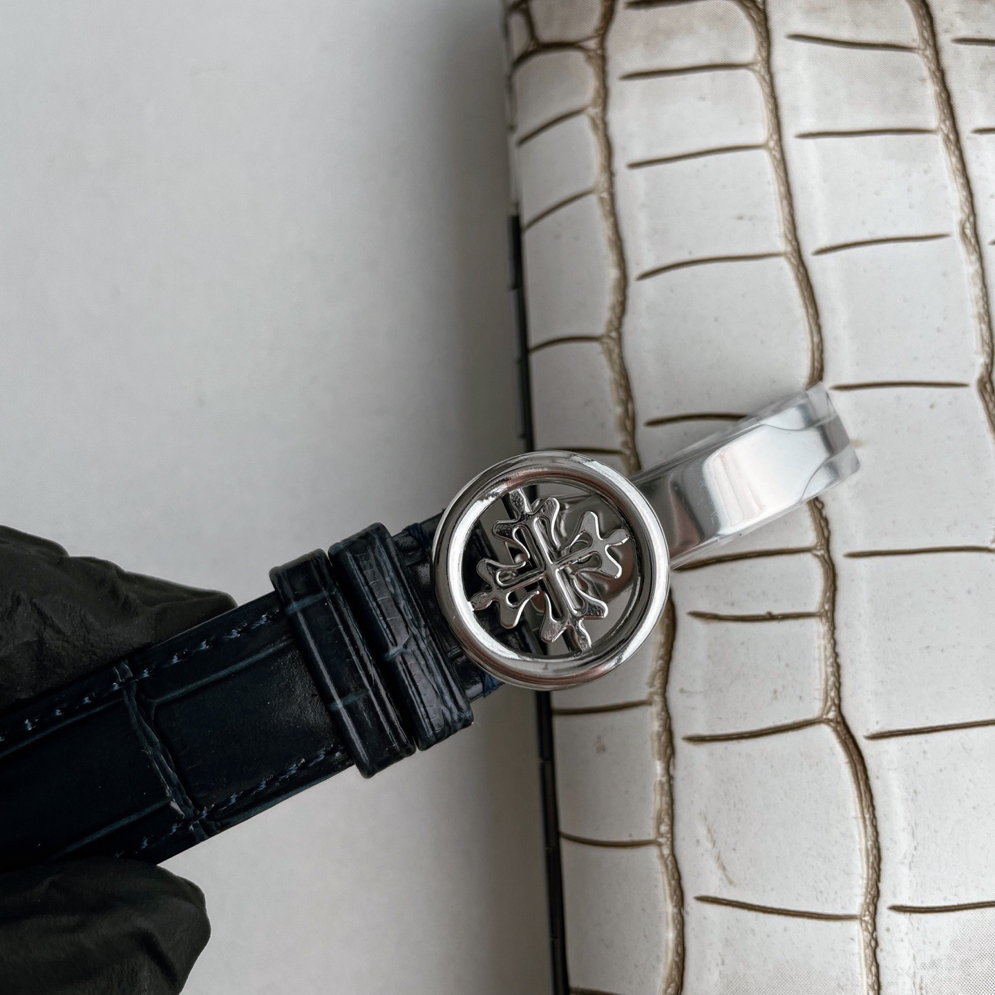 盘面整体布局,宽阔不紧凑,温文典雅,搭配意大利牛皮表带,PP标志镂空灯笼表扣,复古儒雅的感觉拉满。