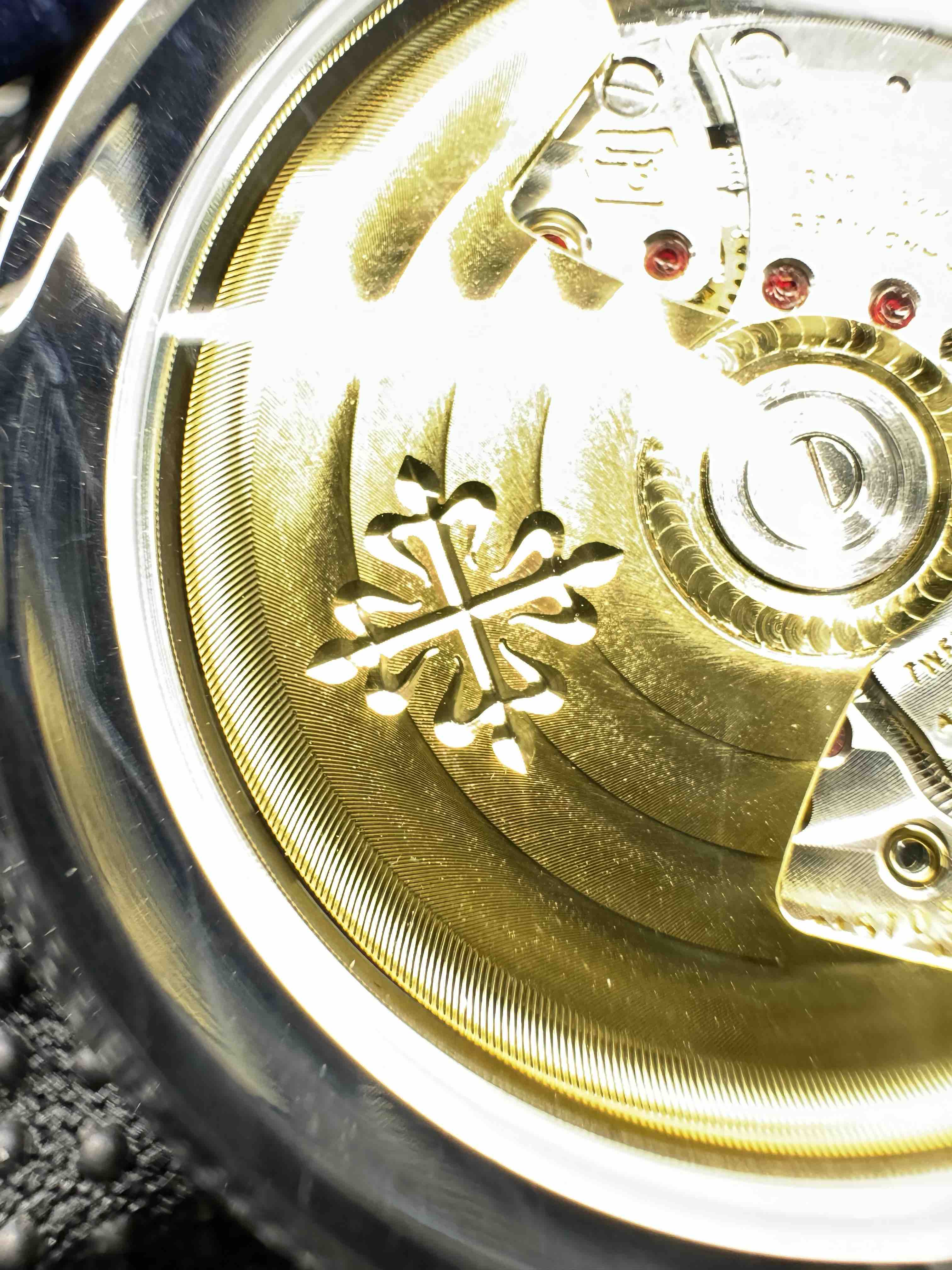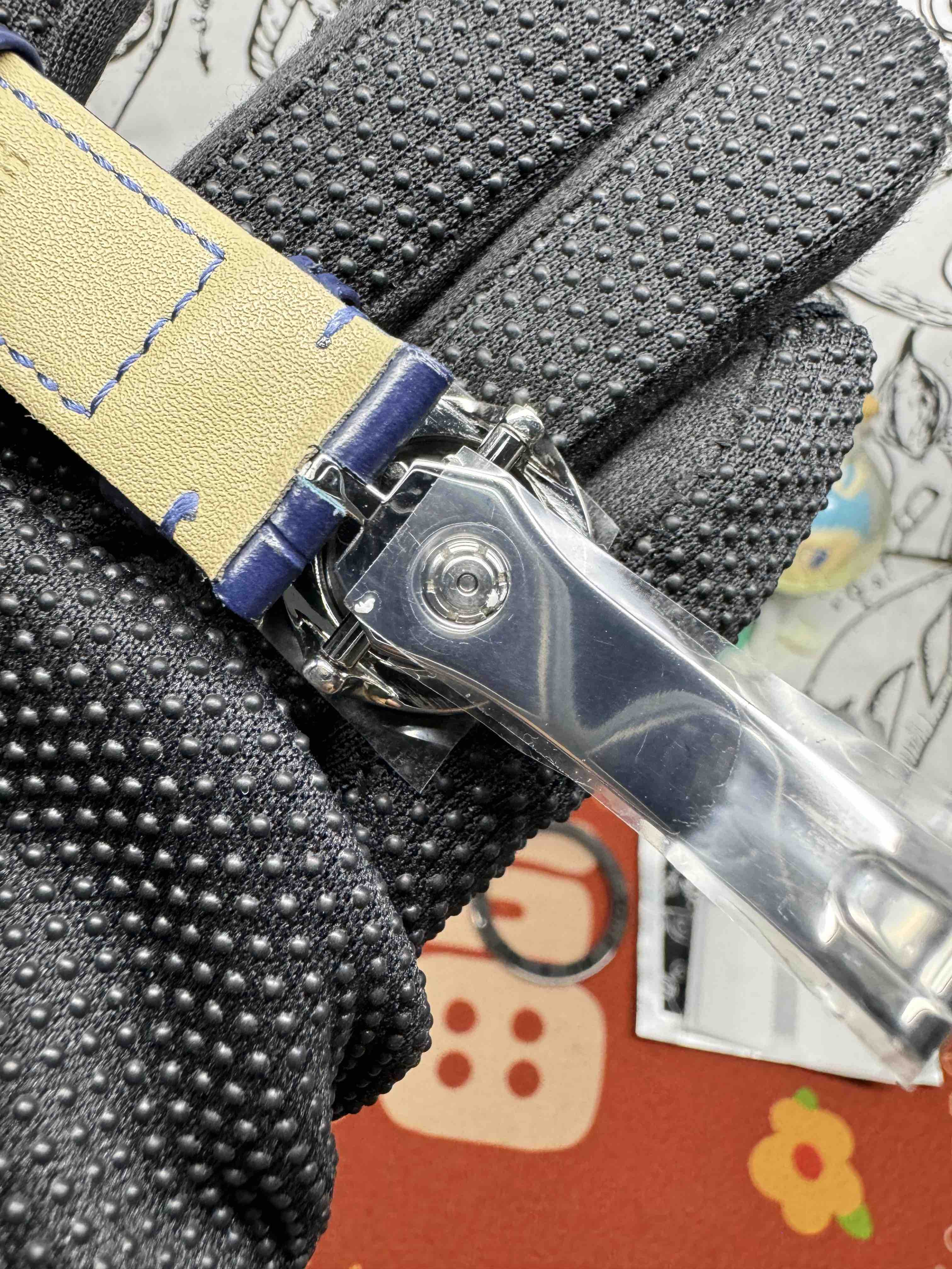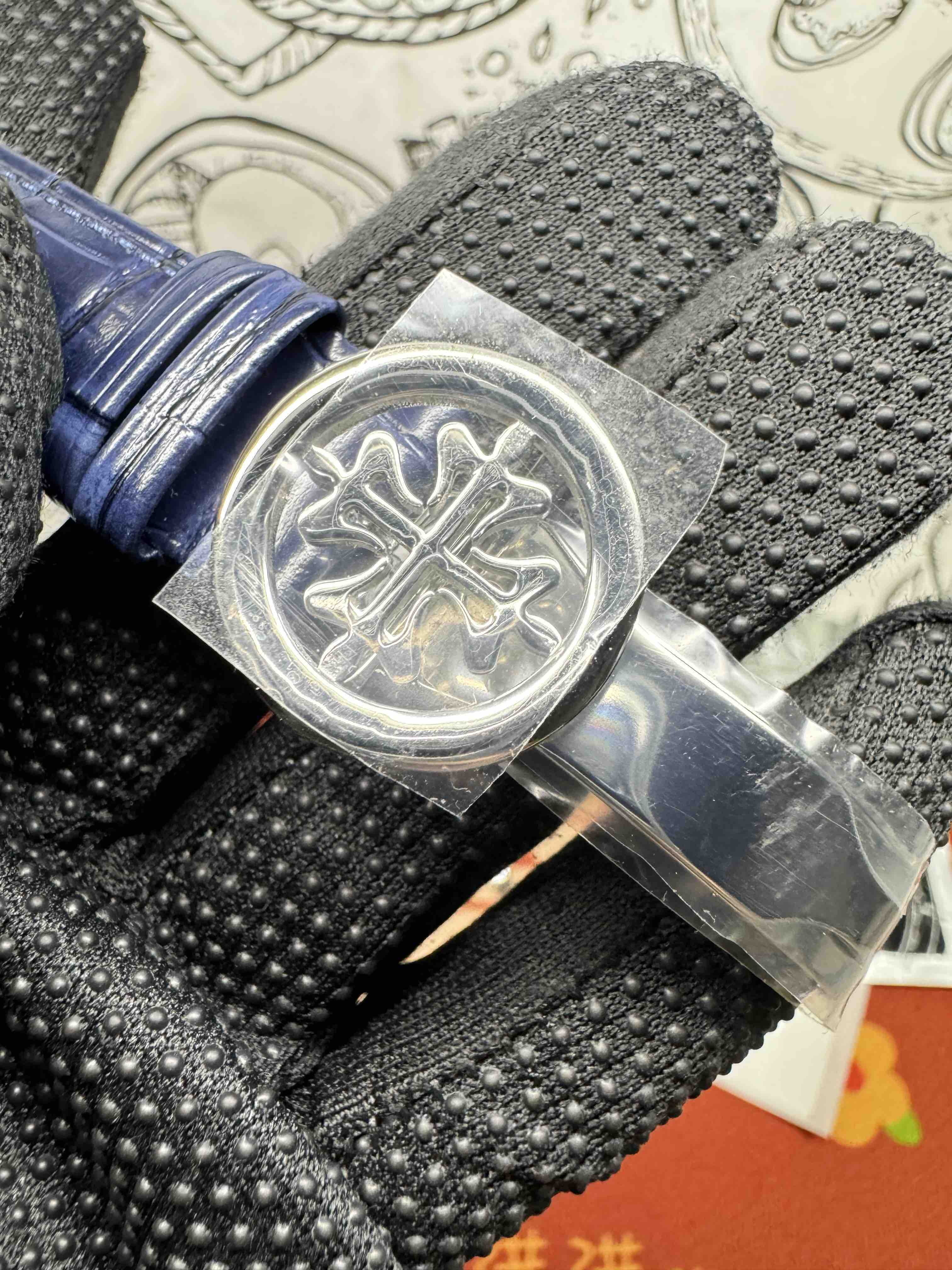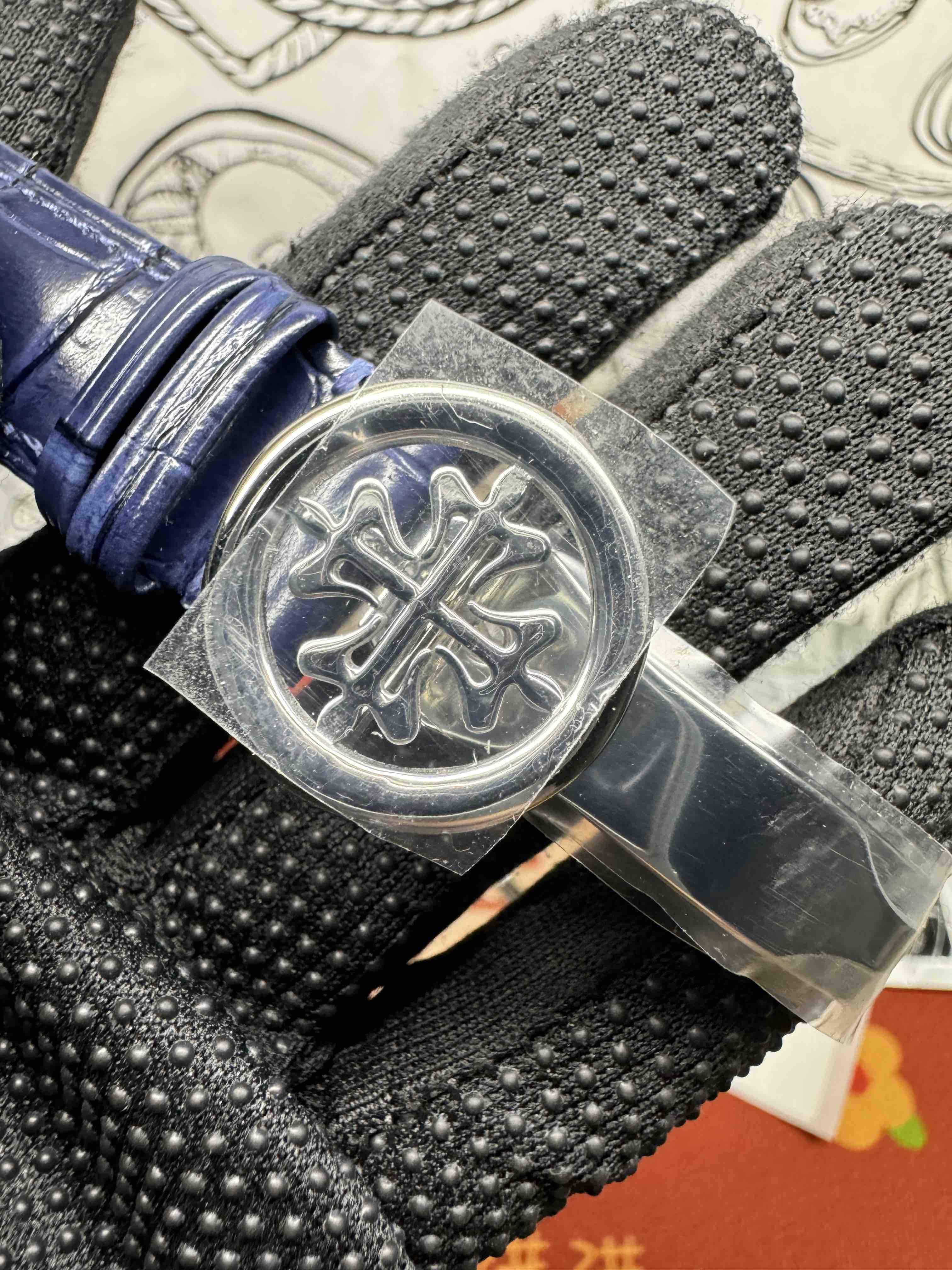 盘面整体布局,宽阔不紧凑,温文典雅,搭配意大利牛皮表带,PP标志镂空灯笼表扣,复古儒雅的感觉拉满。