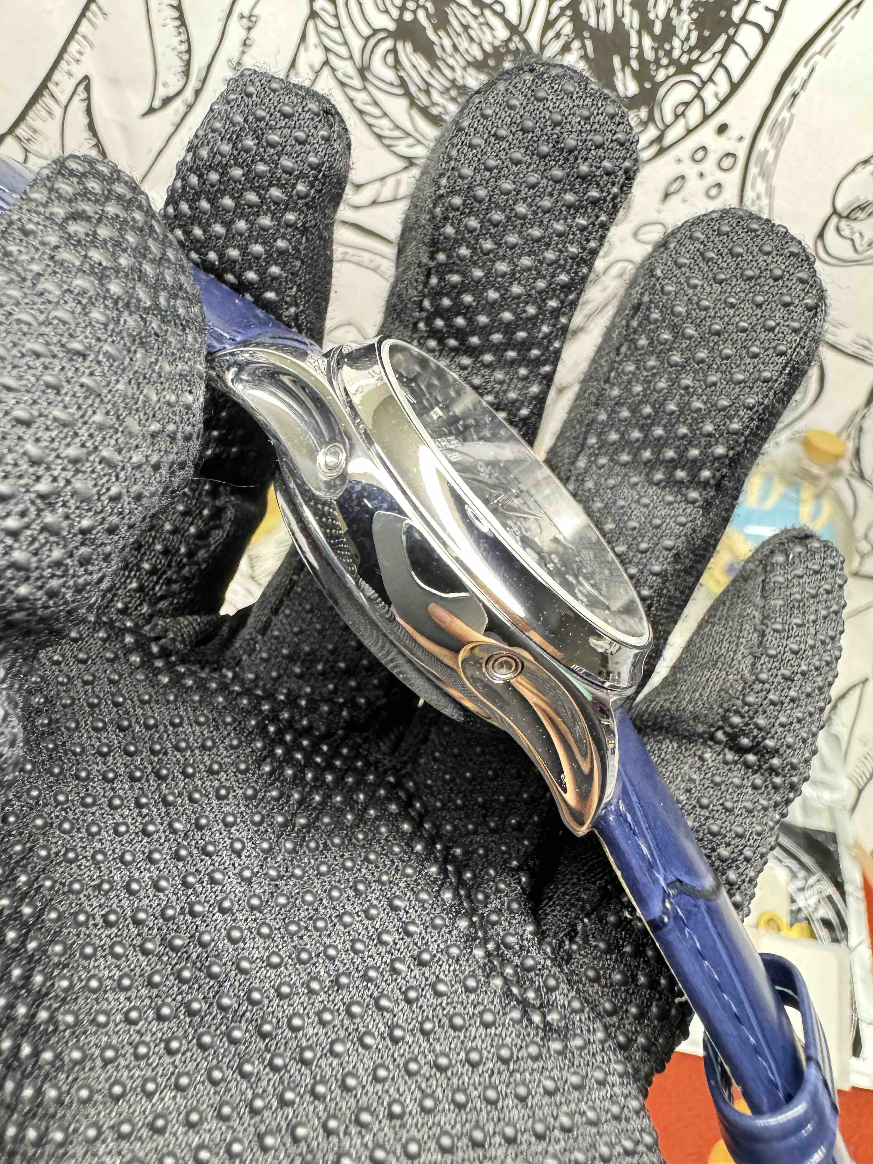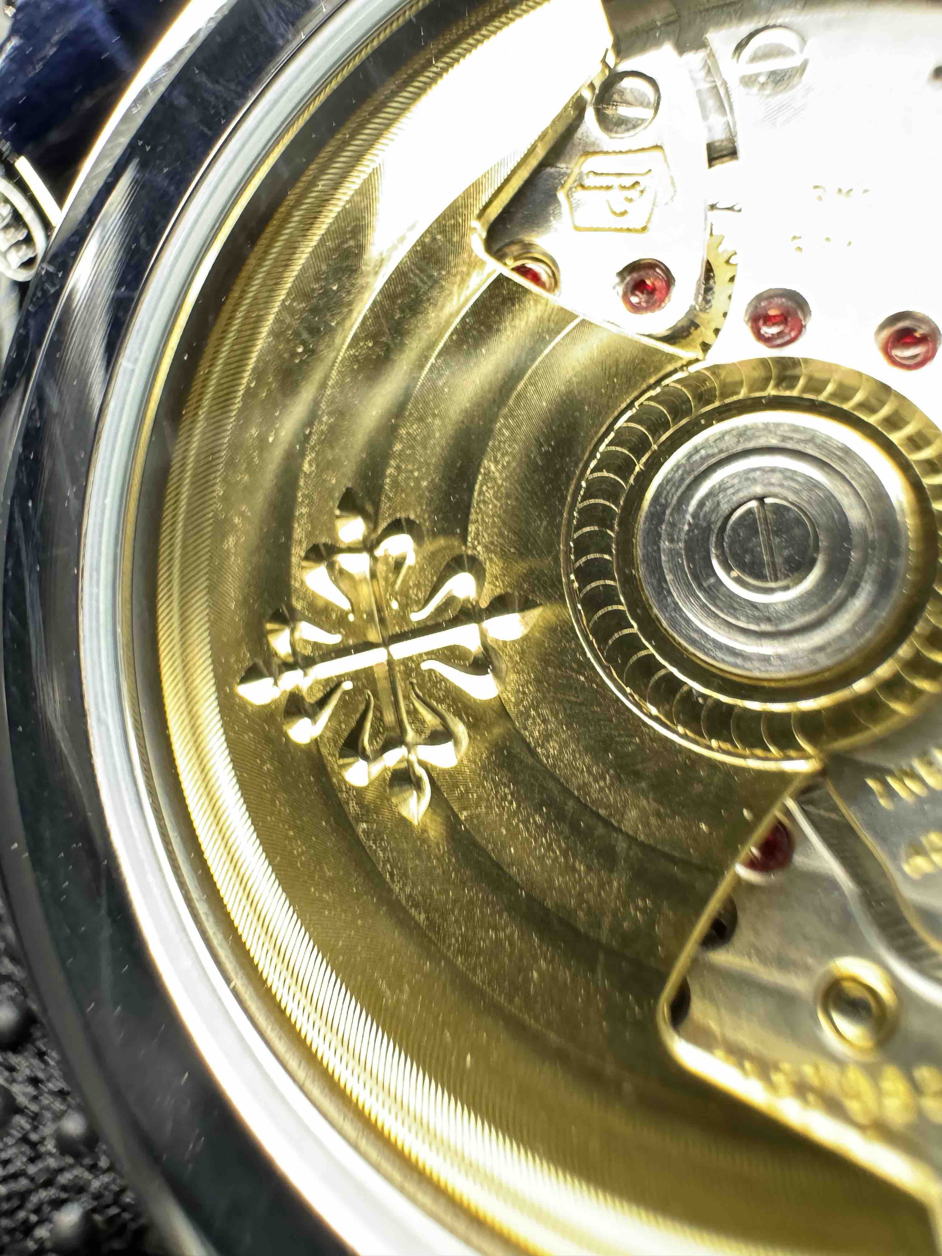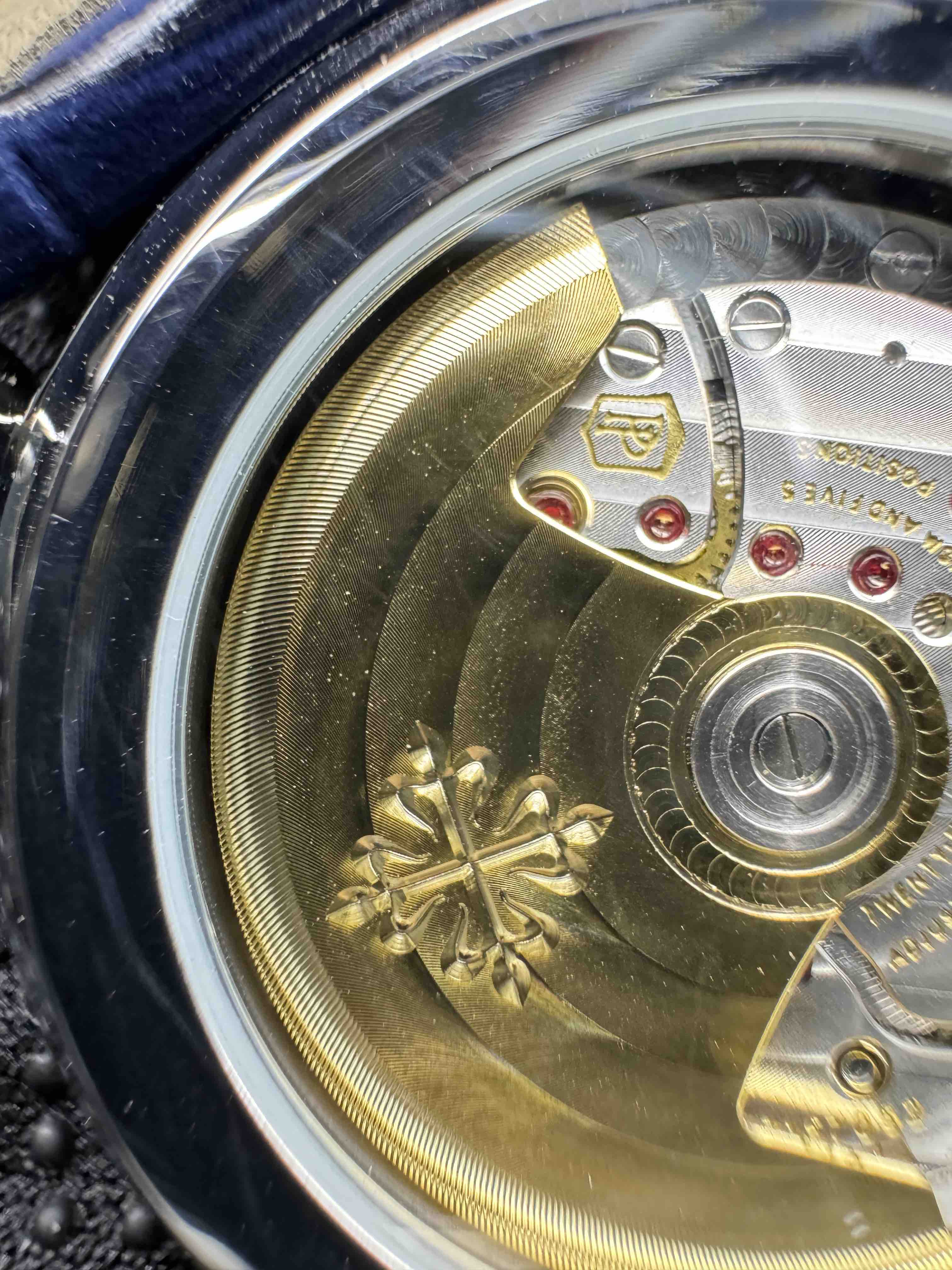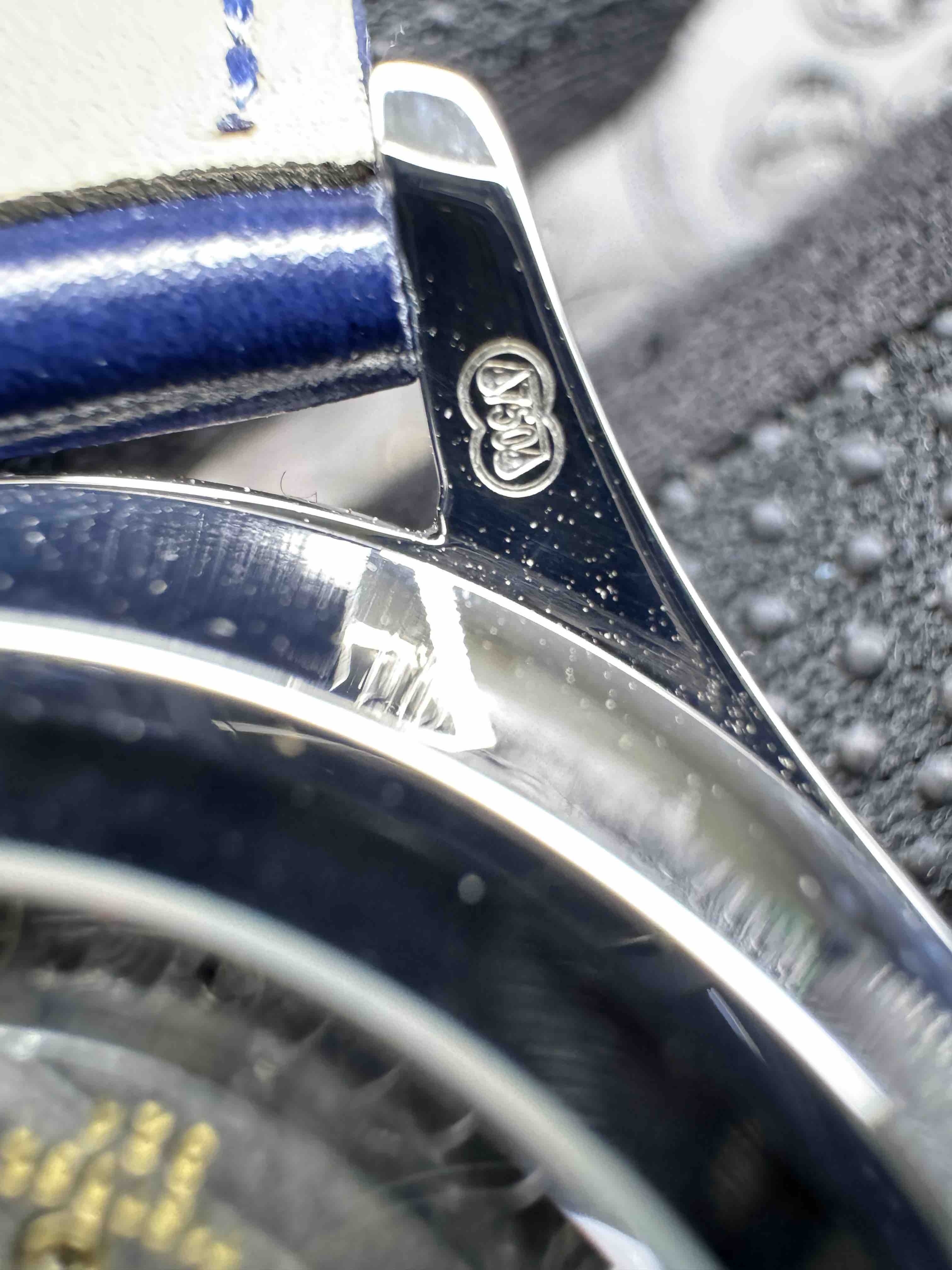 盘面整体布局,宽阔不紧凑,温文典雅,搭配意大利牛皮表带,PP标志镂空灯笼表扣,复古儒雅的感觉拉满。